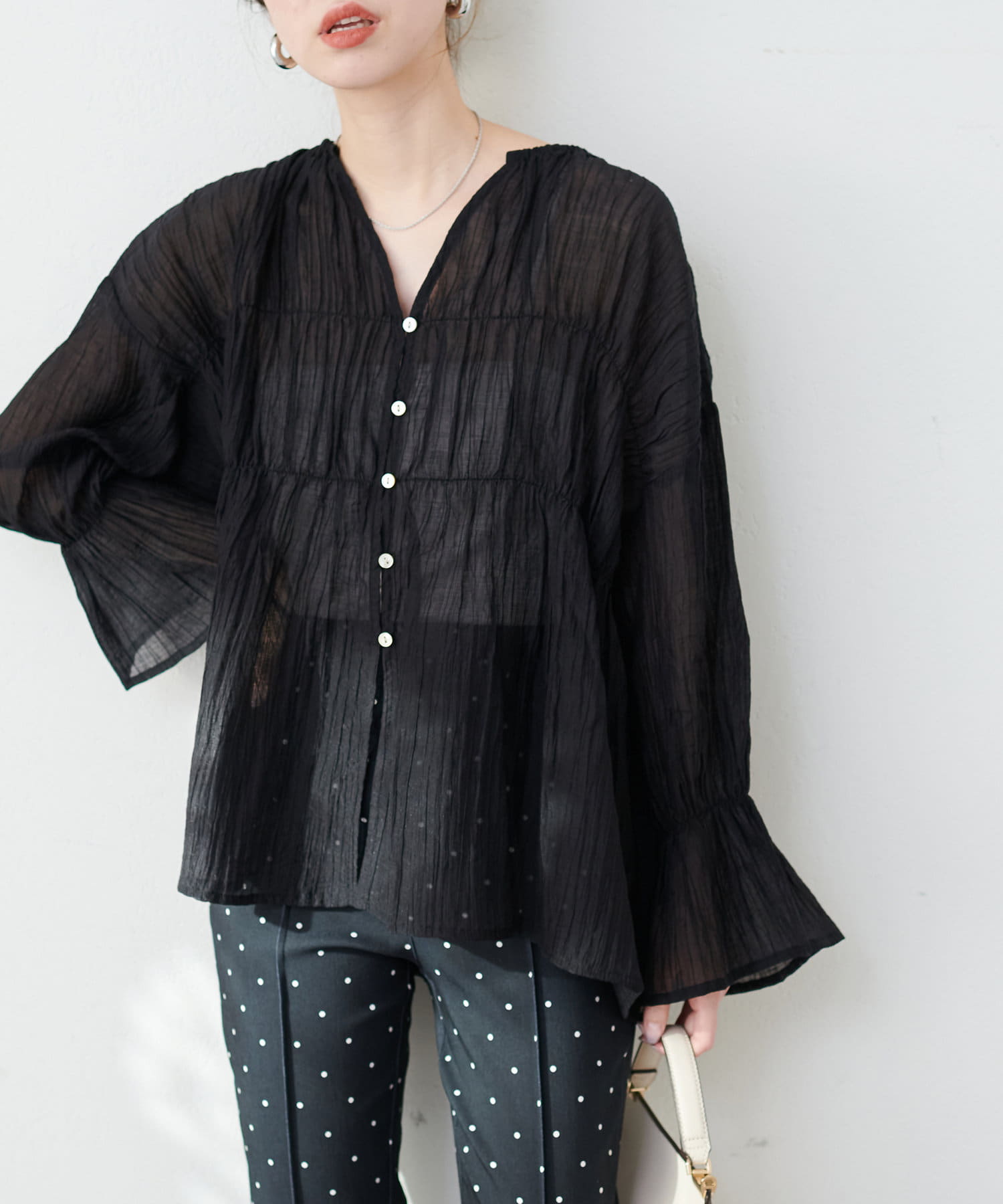 軽やかな生地感が一気に春の気分を高めるブラウス