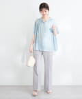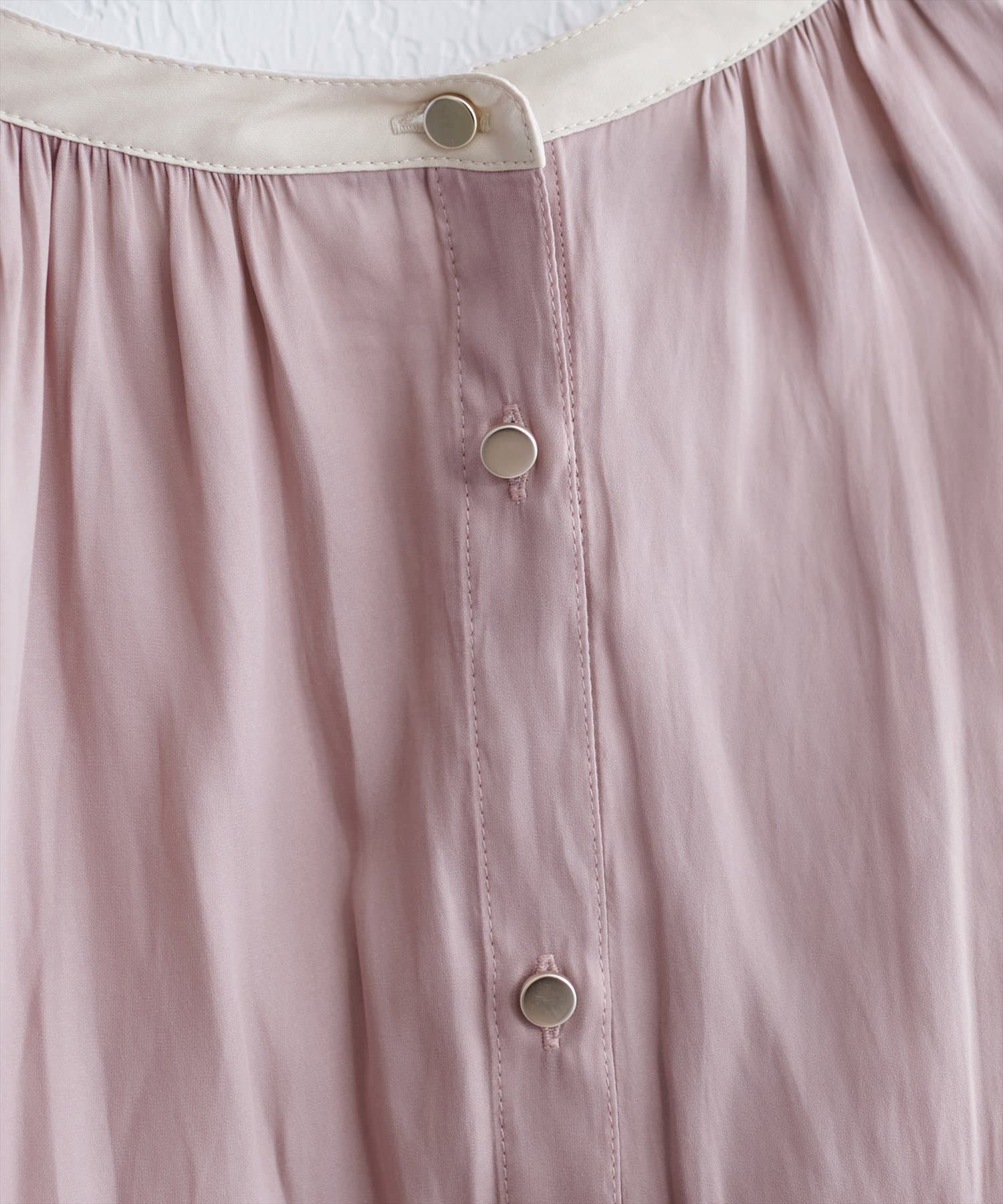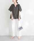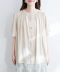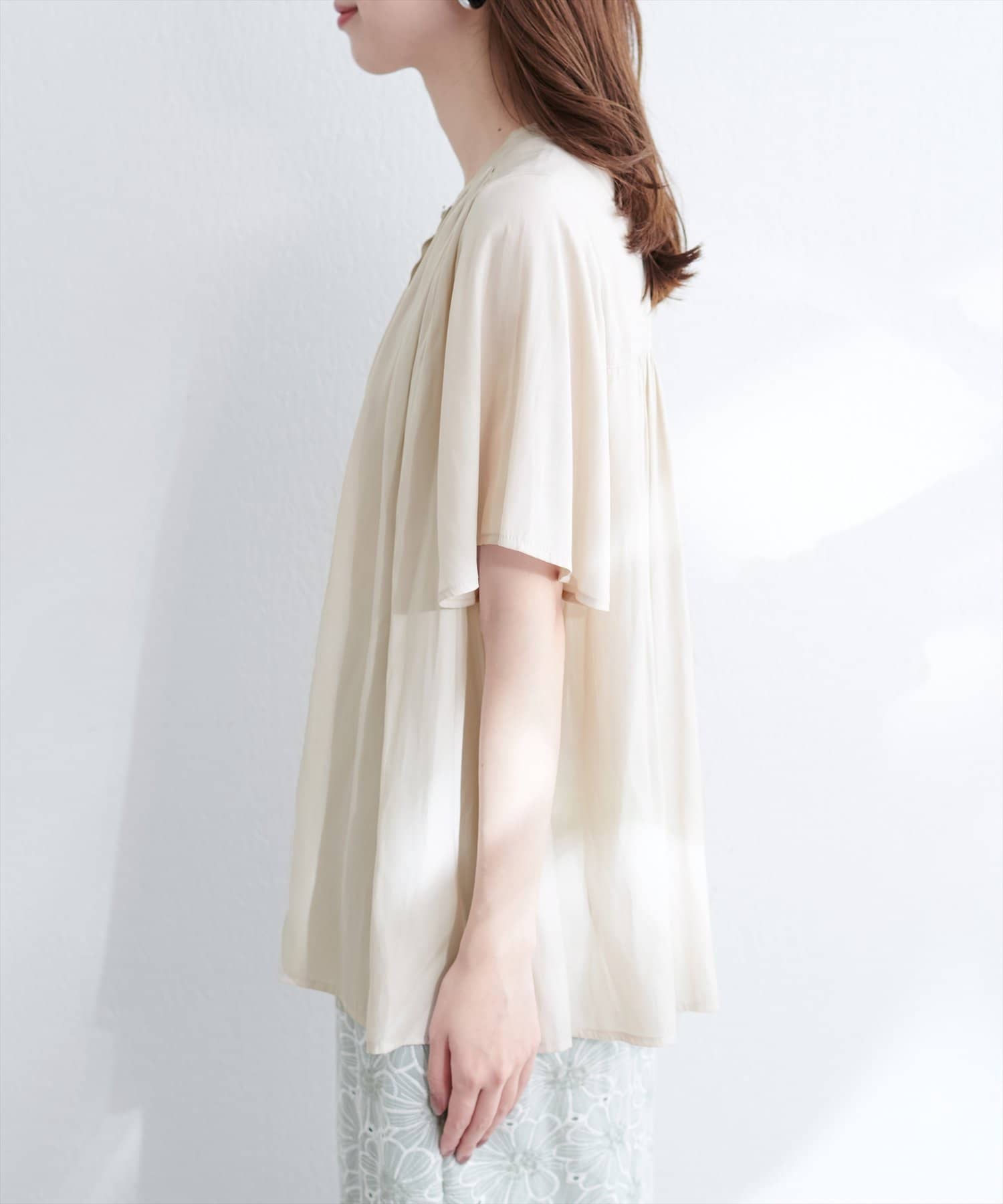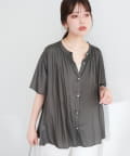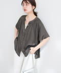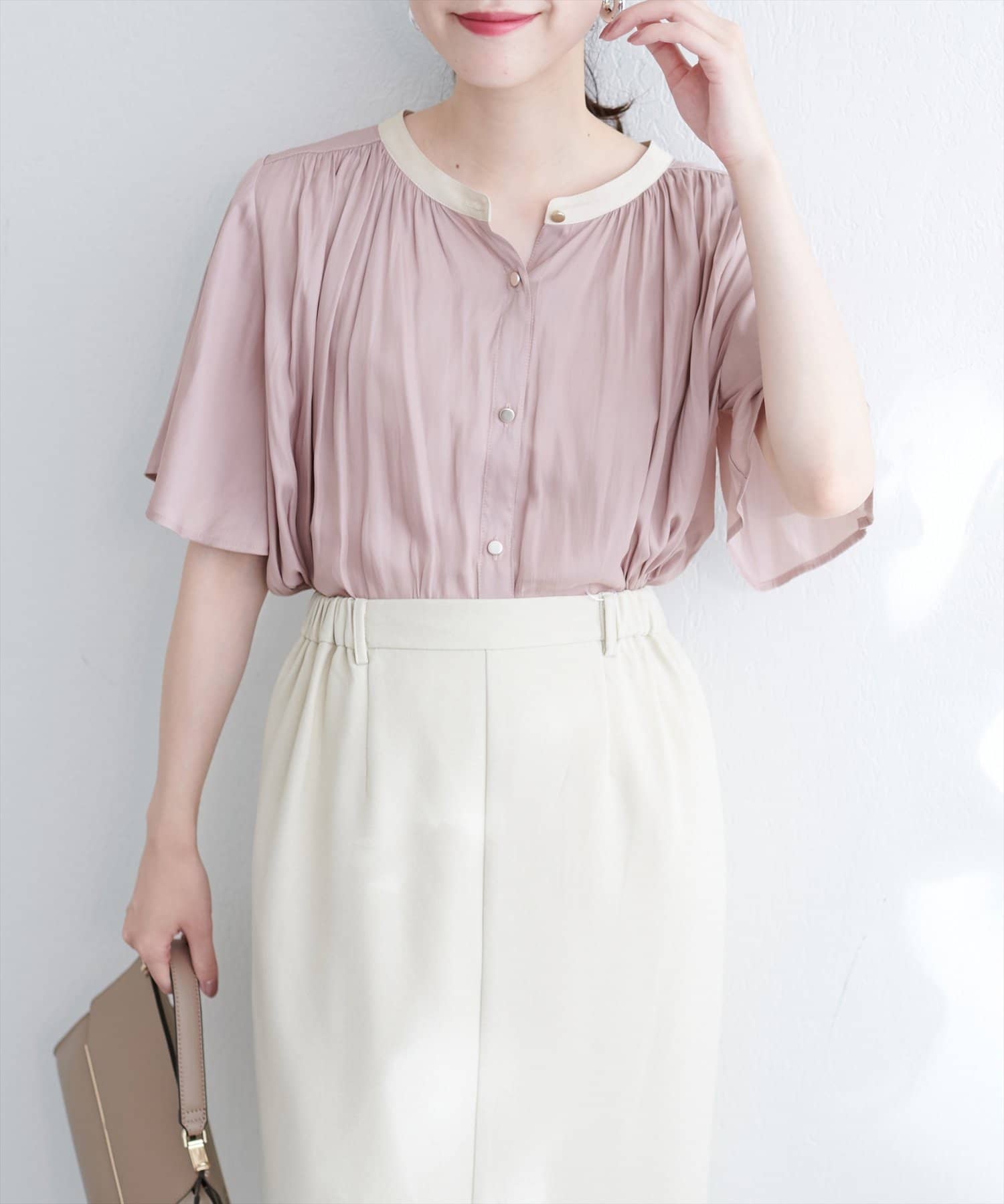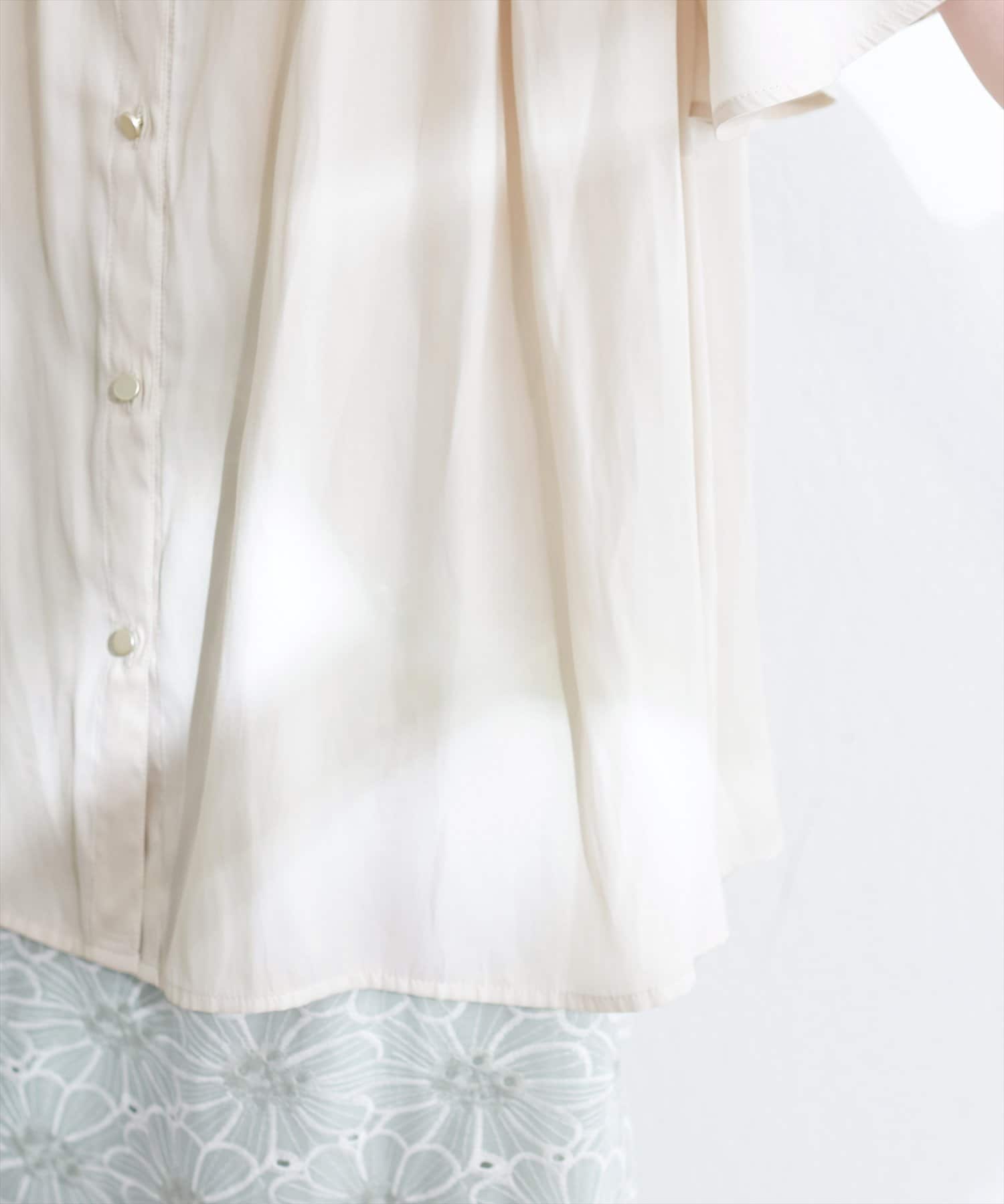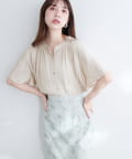 落ち感のあるとろみ素材と、たっぷりと施したギャザーが魅力のブラウス。