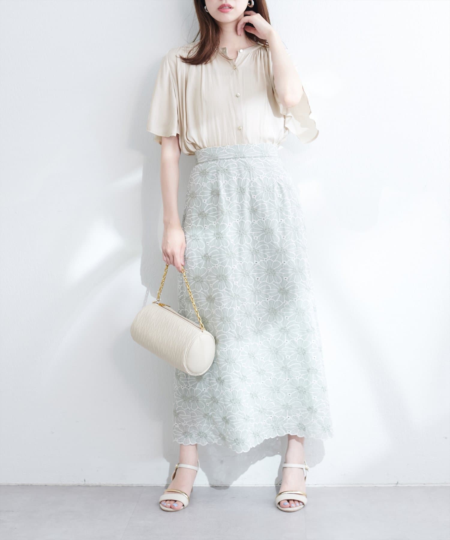 マーメイドシルエットやフレアライン、Iラインのスカートにウエストインして、