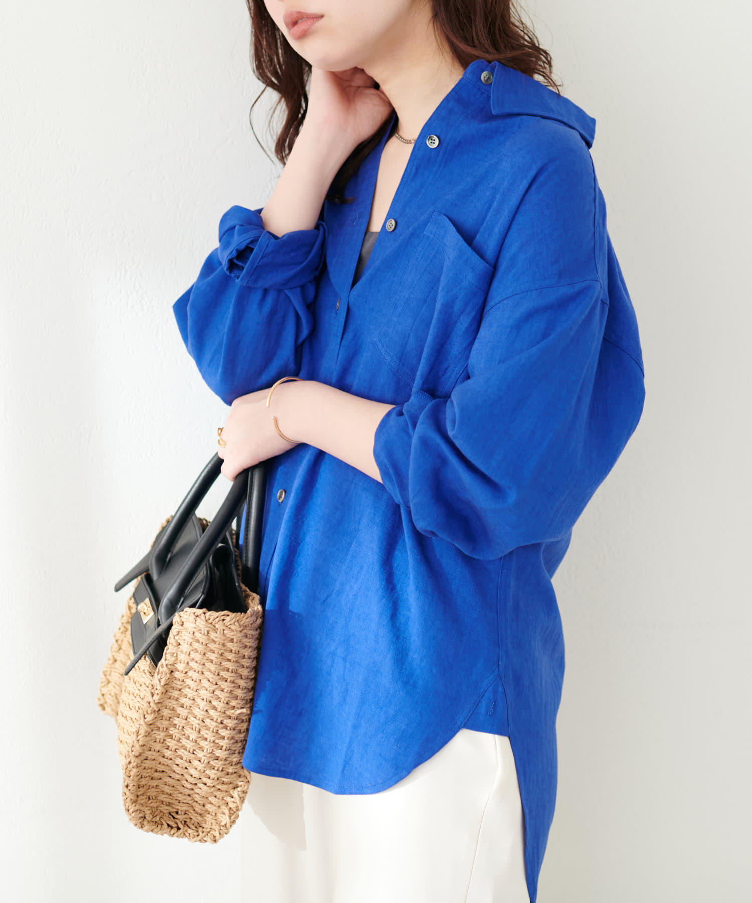 素材感を活かし、抜け感たっぷりに着られるワイドなシルエットで仕上げた1枚。