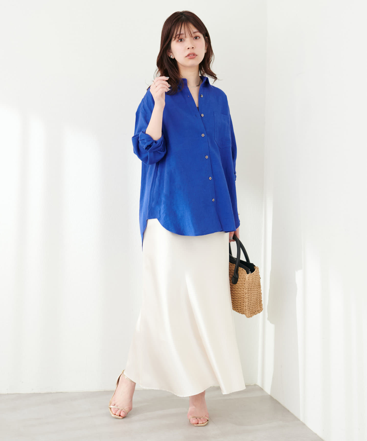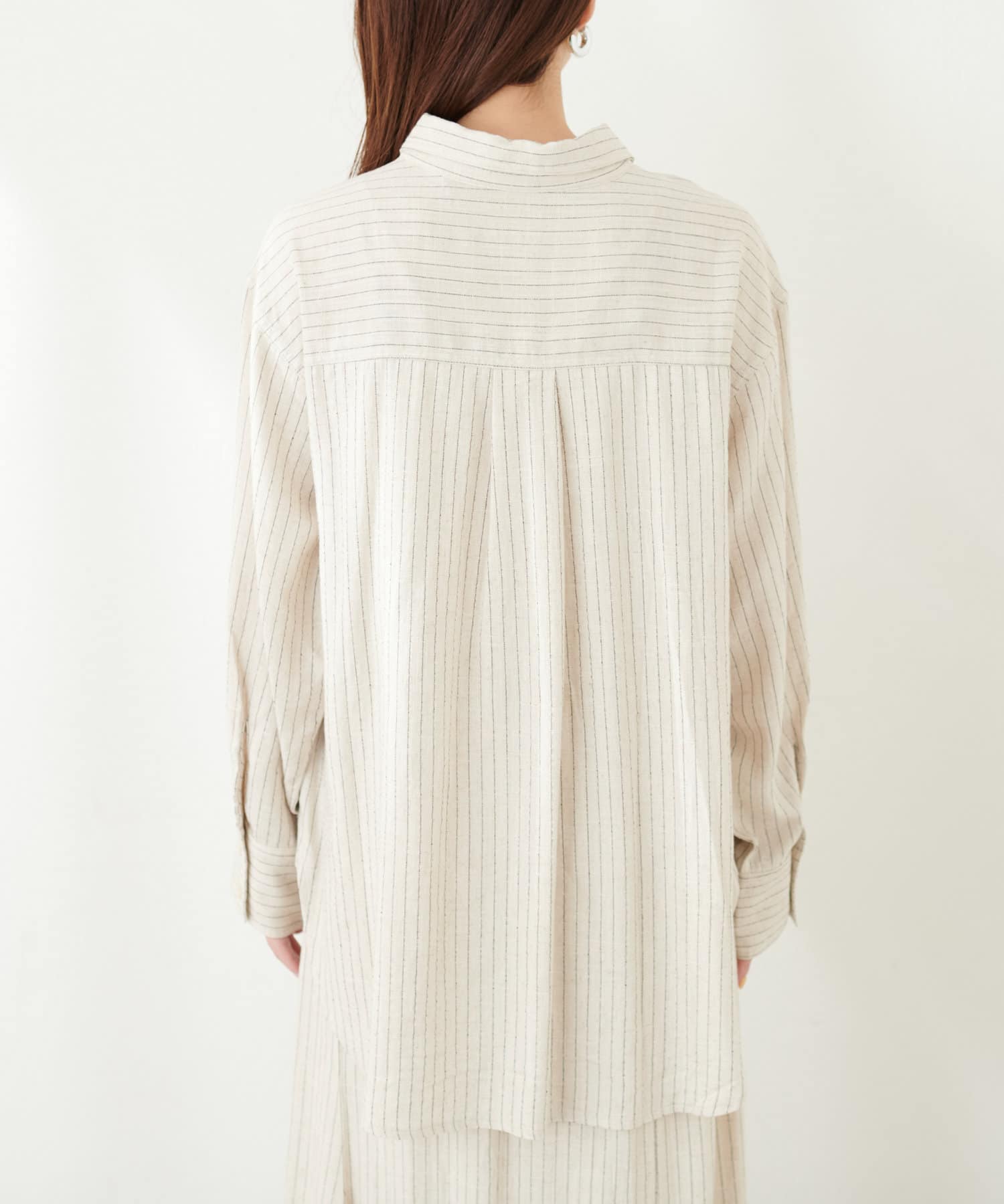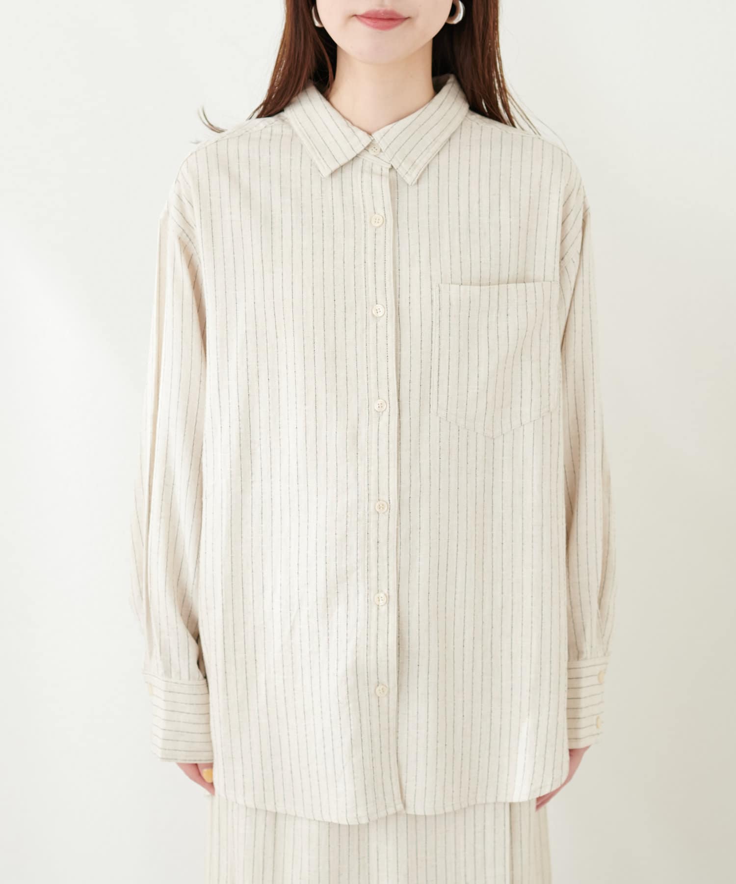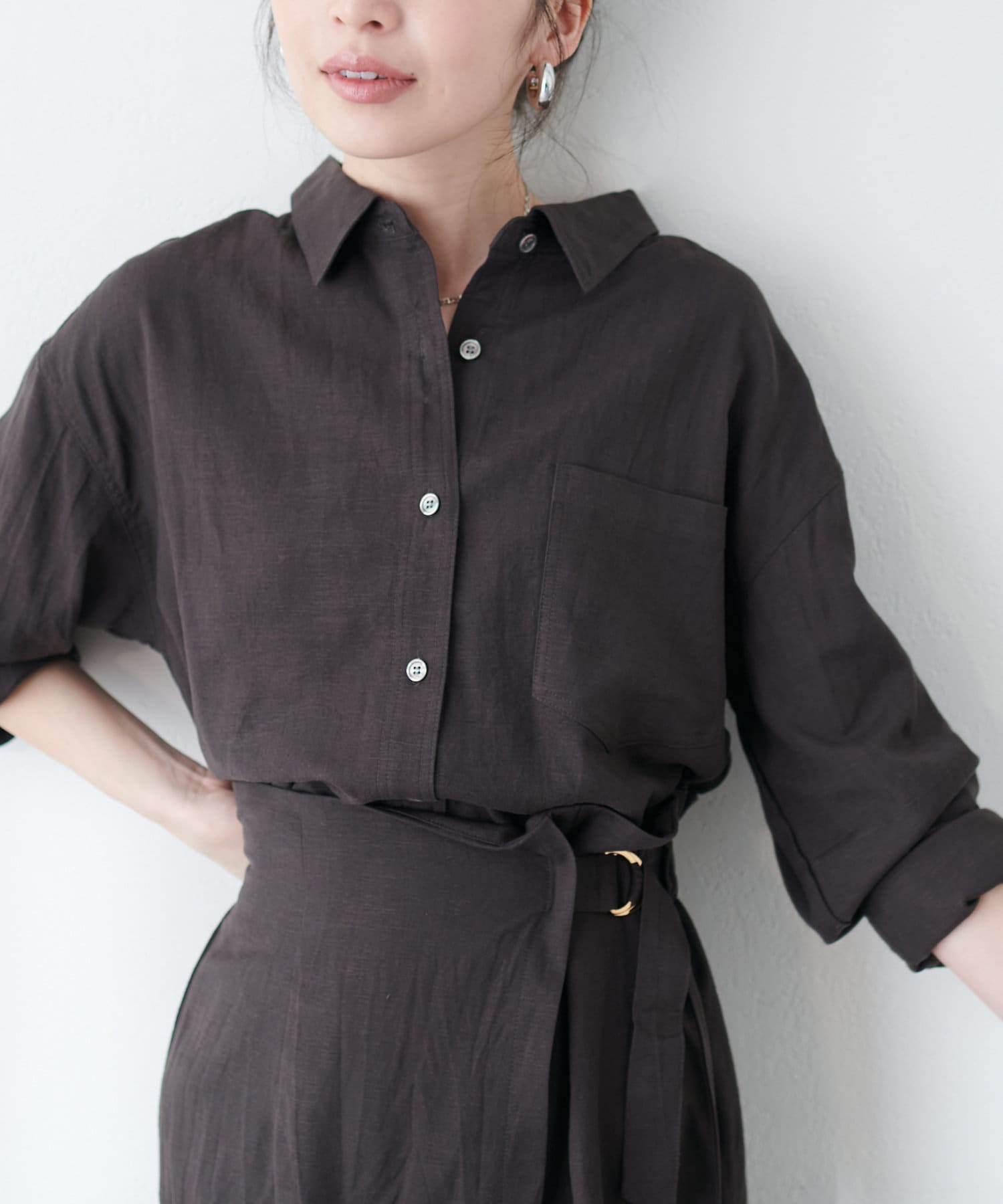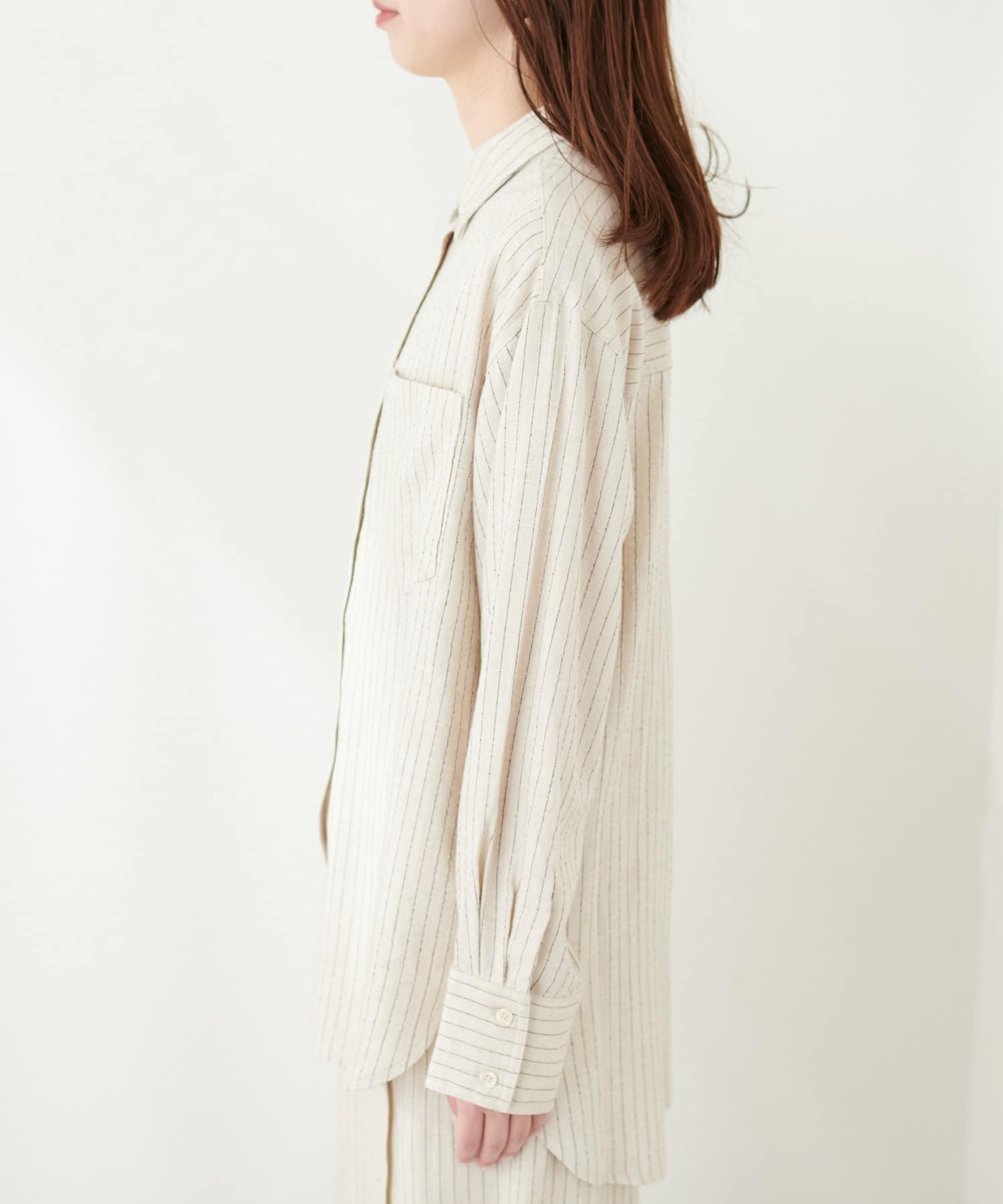 ハリ感のあるさらりとした麻調合繊のロングシャツ。
