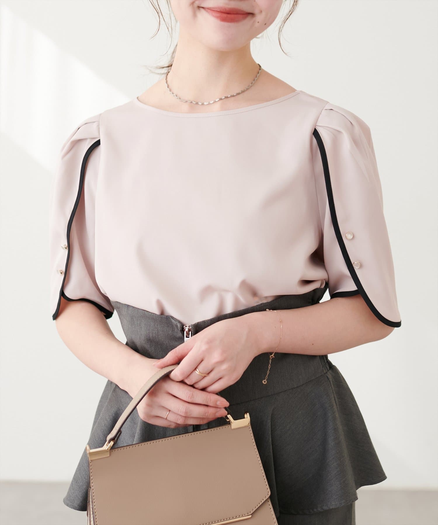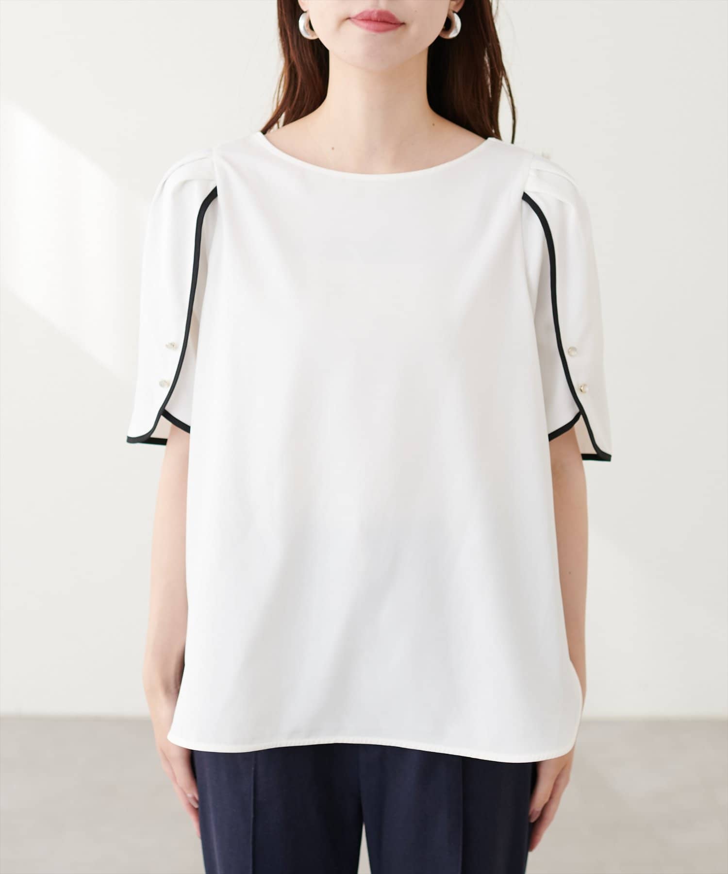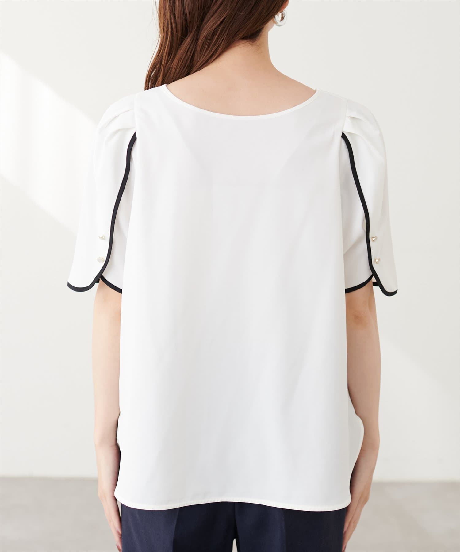 【mizumami】金ぶち釦チューリップ袖ブラウス