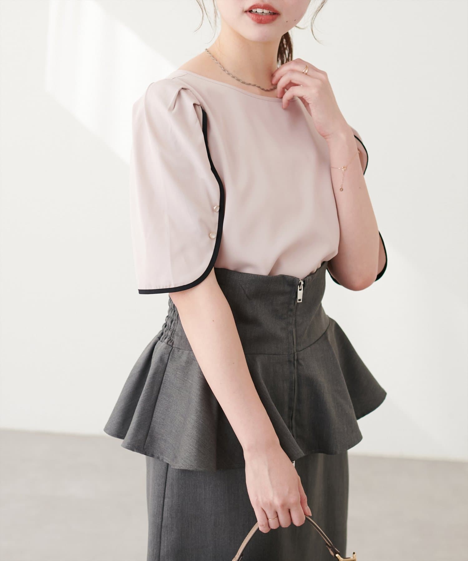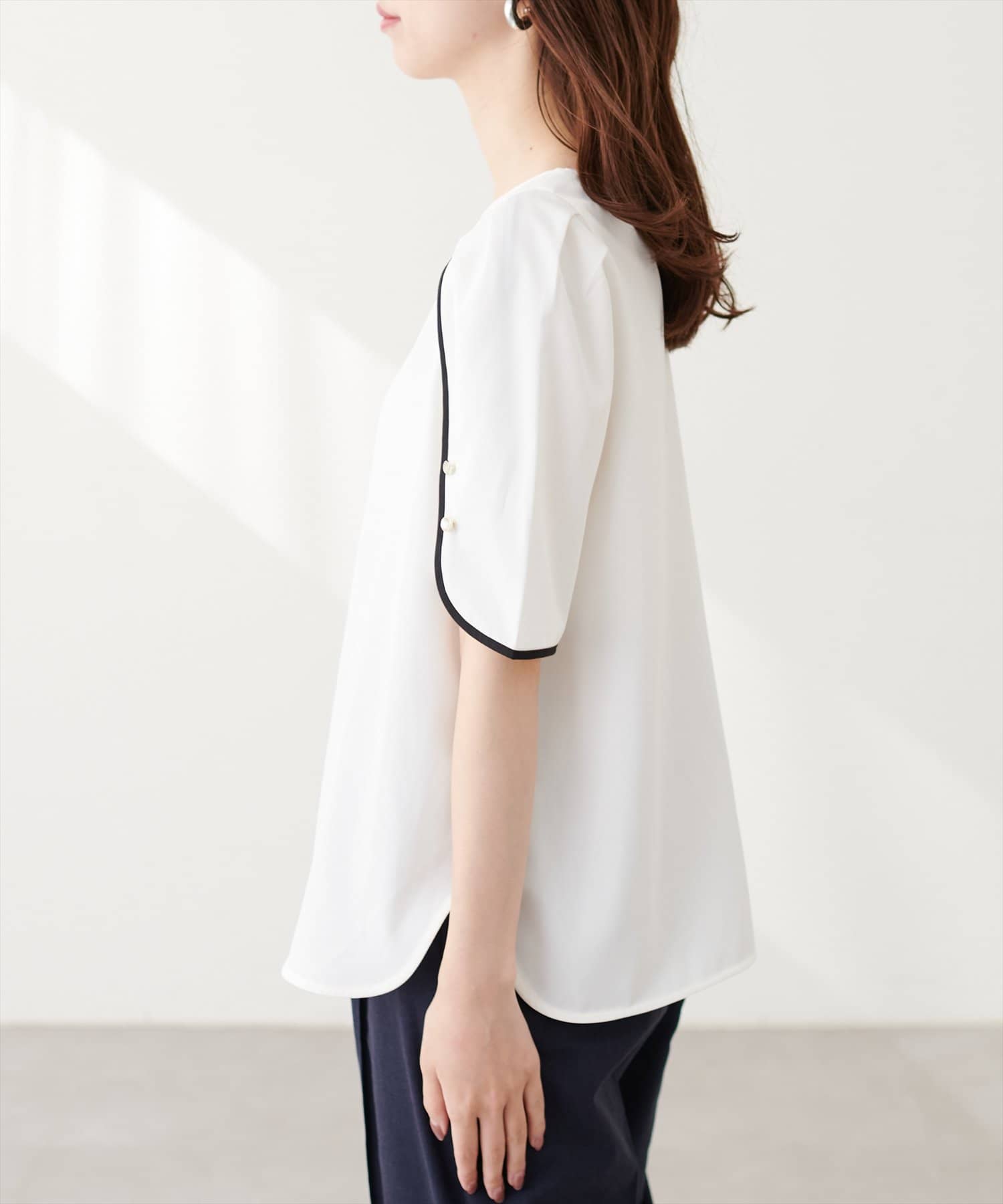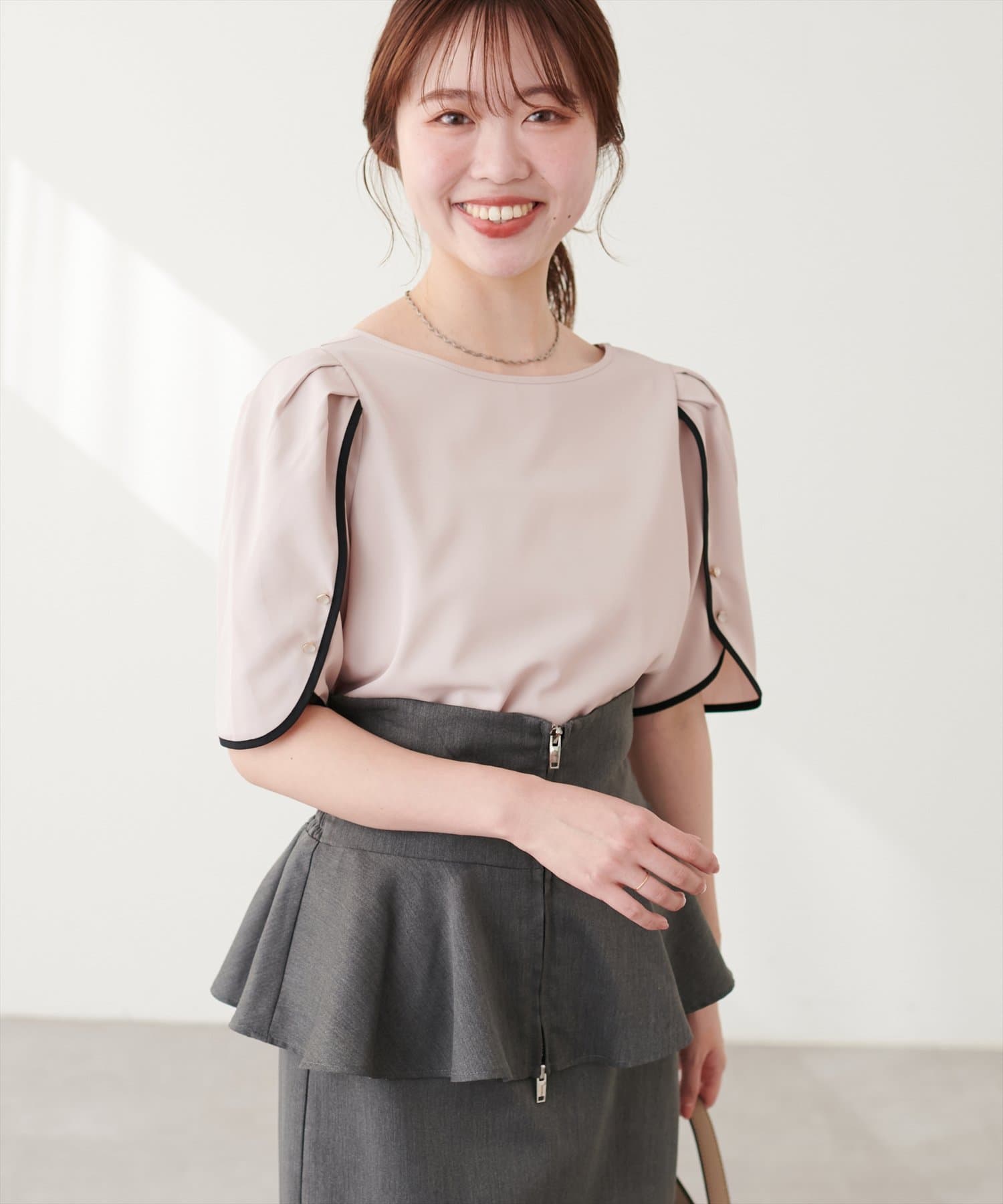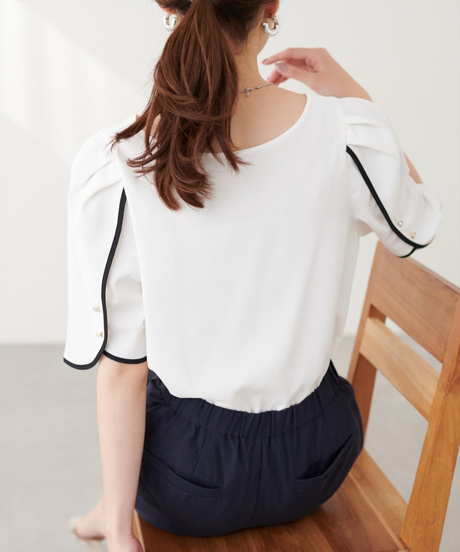 【mizumami】金ぶち釦チューリップ袖ブラウス
