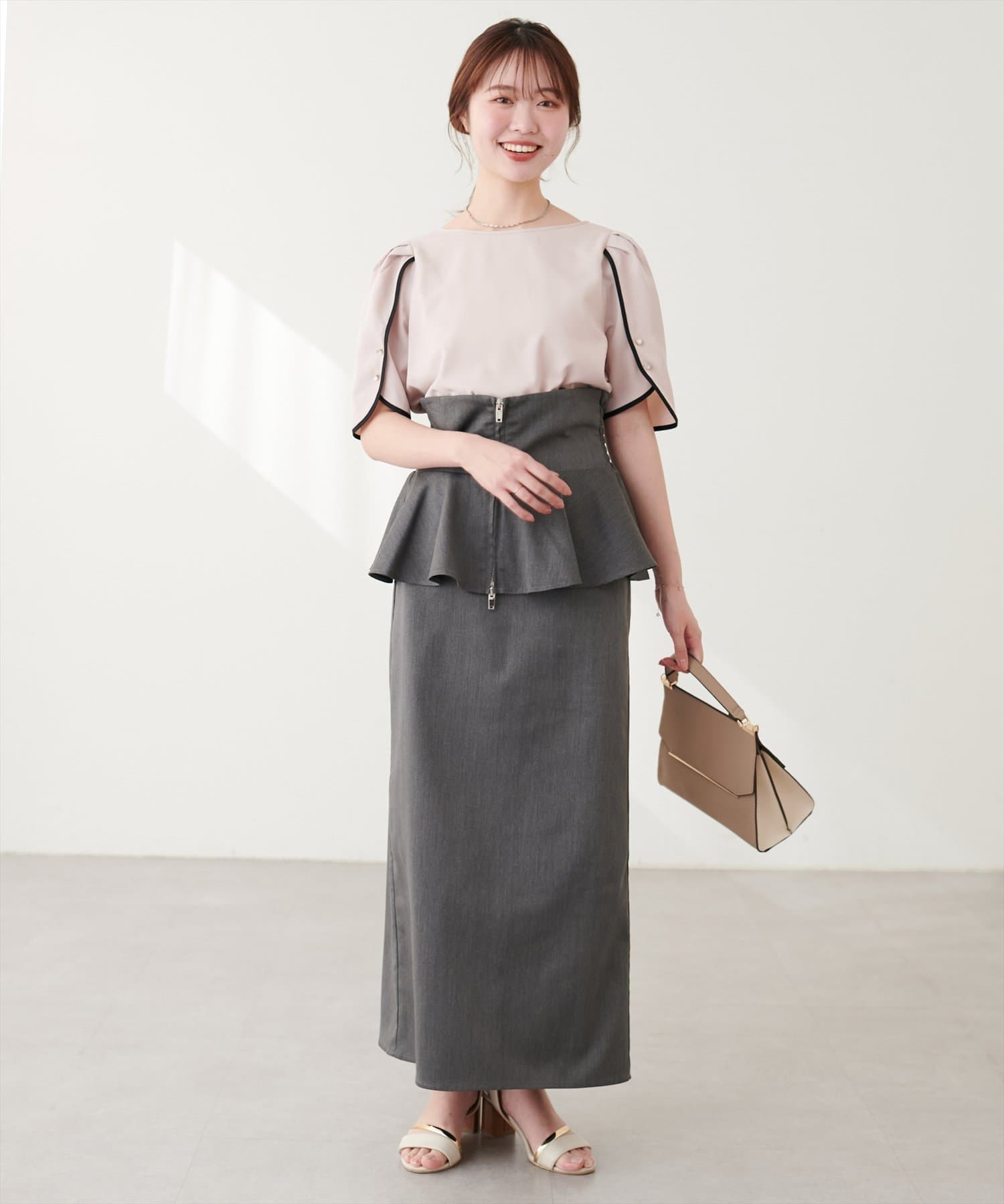 ハイウエストボトムスや、フレアライン、Iラインシルエットのスカートにウエストインして、