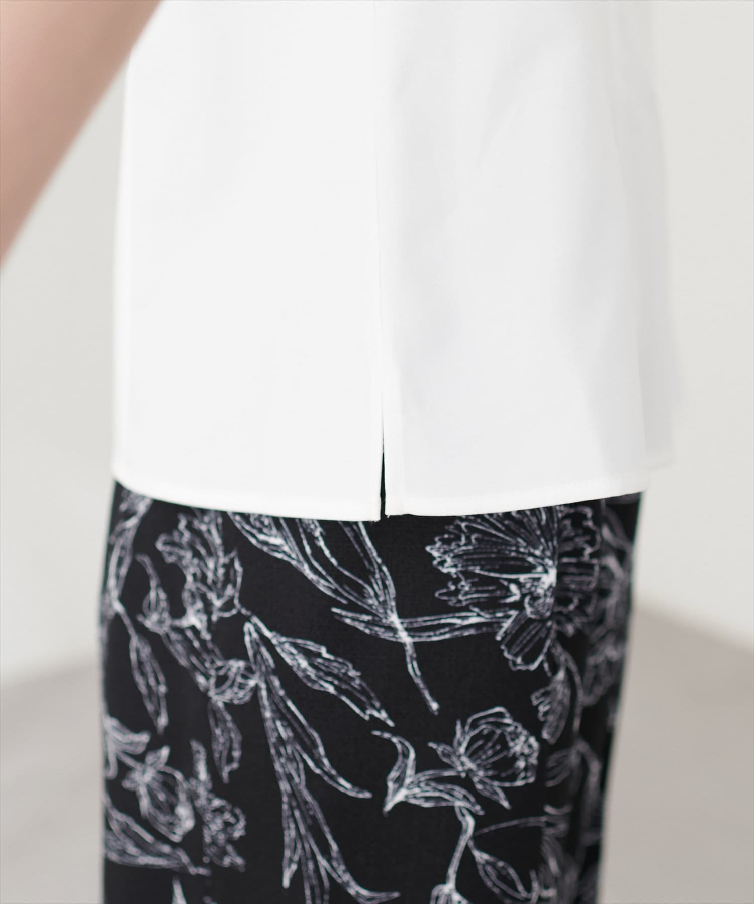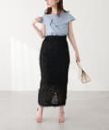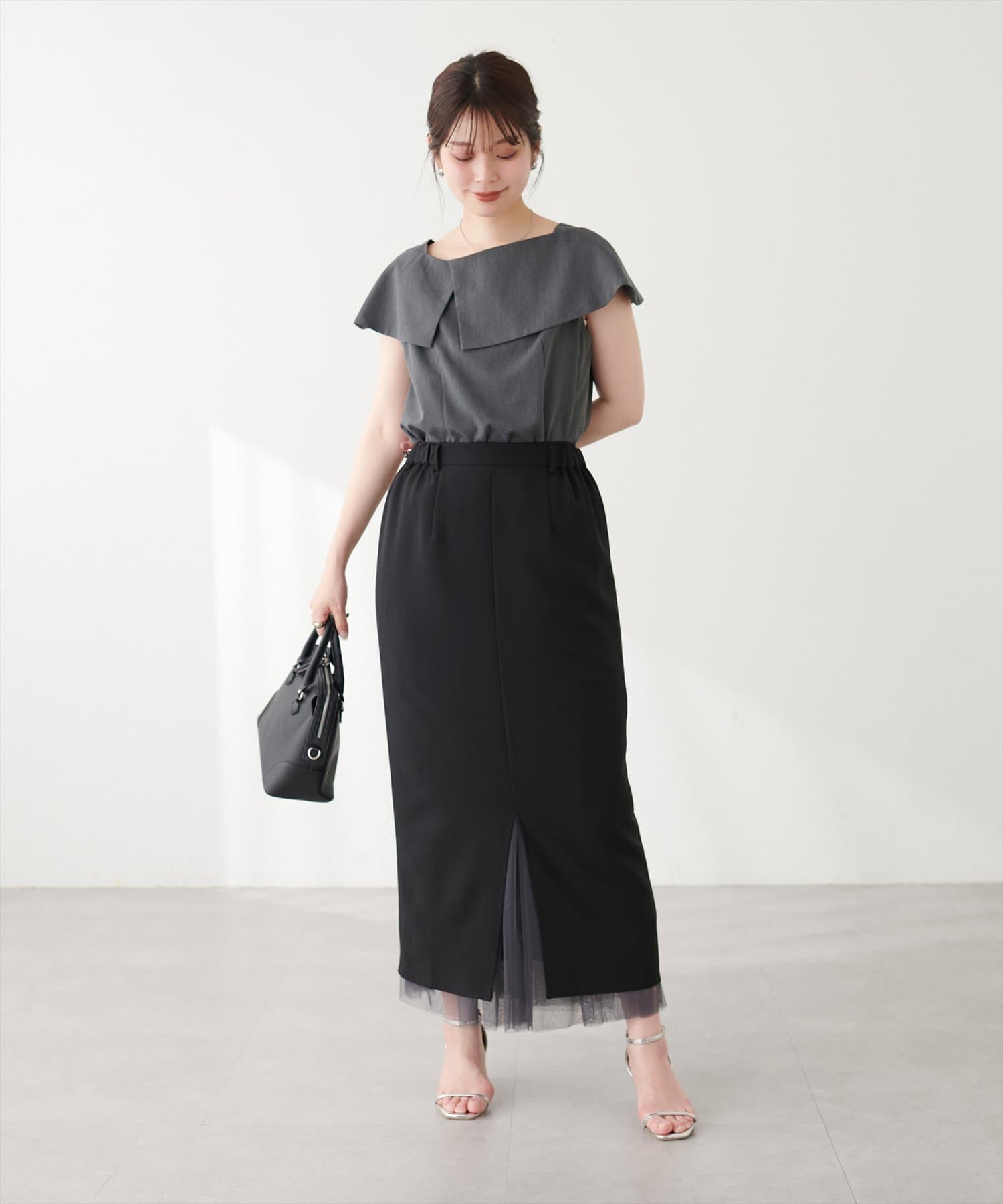 落ち感のあるナロースカートやマーメイドシルエットのスカートを合わせると、落ち着いた大人の雰囲気に。
