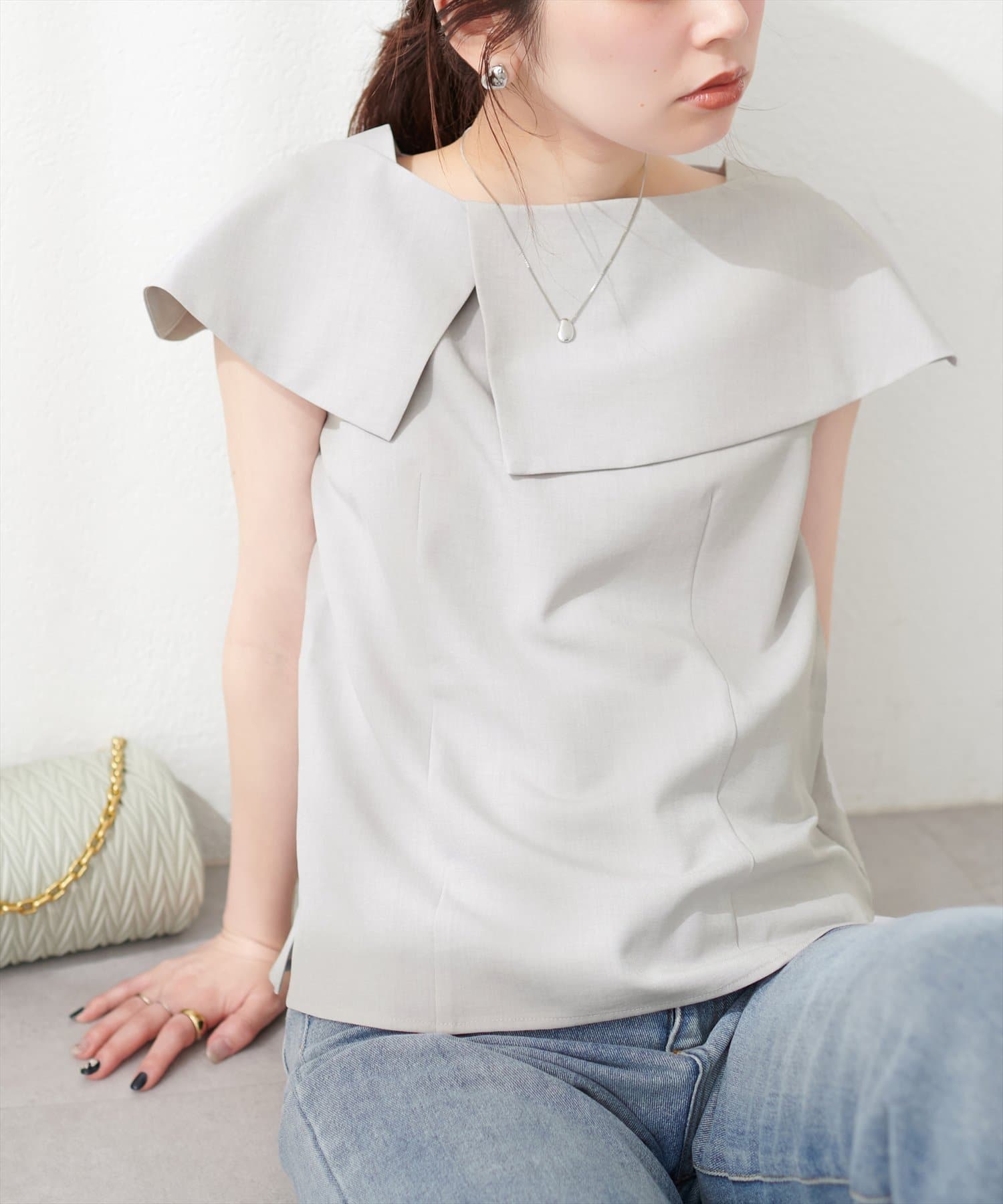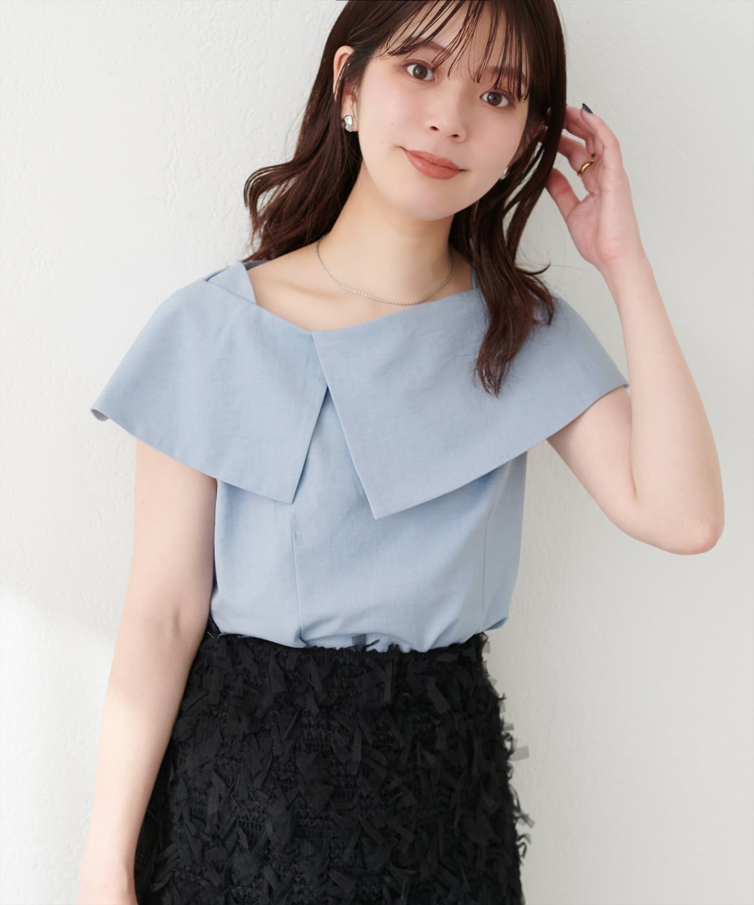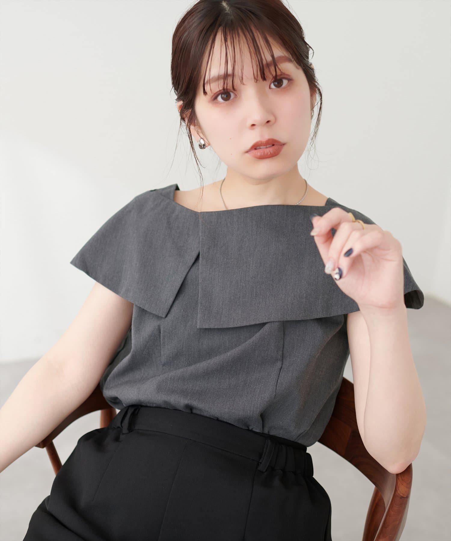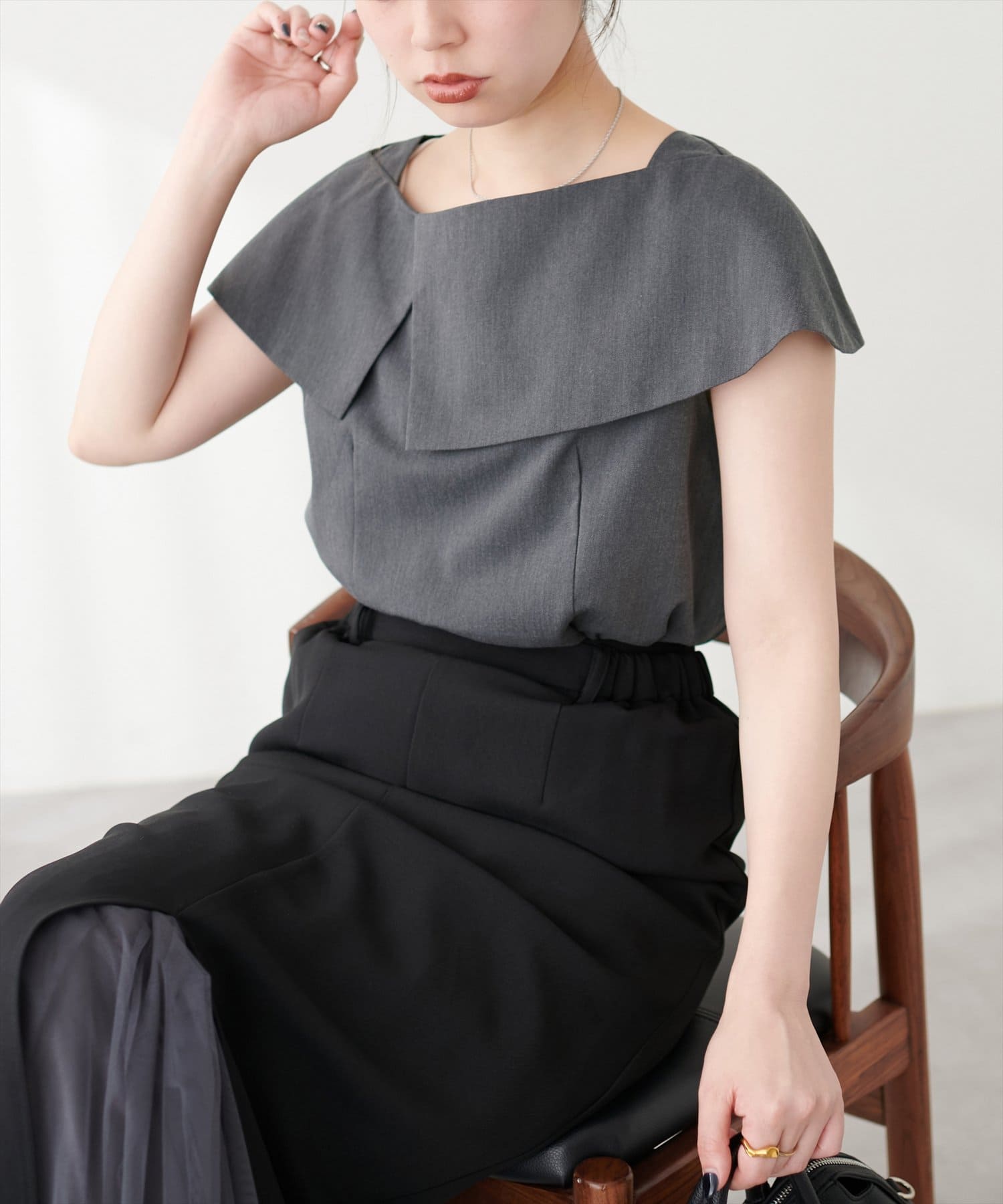大きなアシメ衿が肩を覆ってくれて肩周りが気にならない優秀アイテムです。