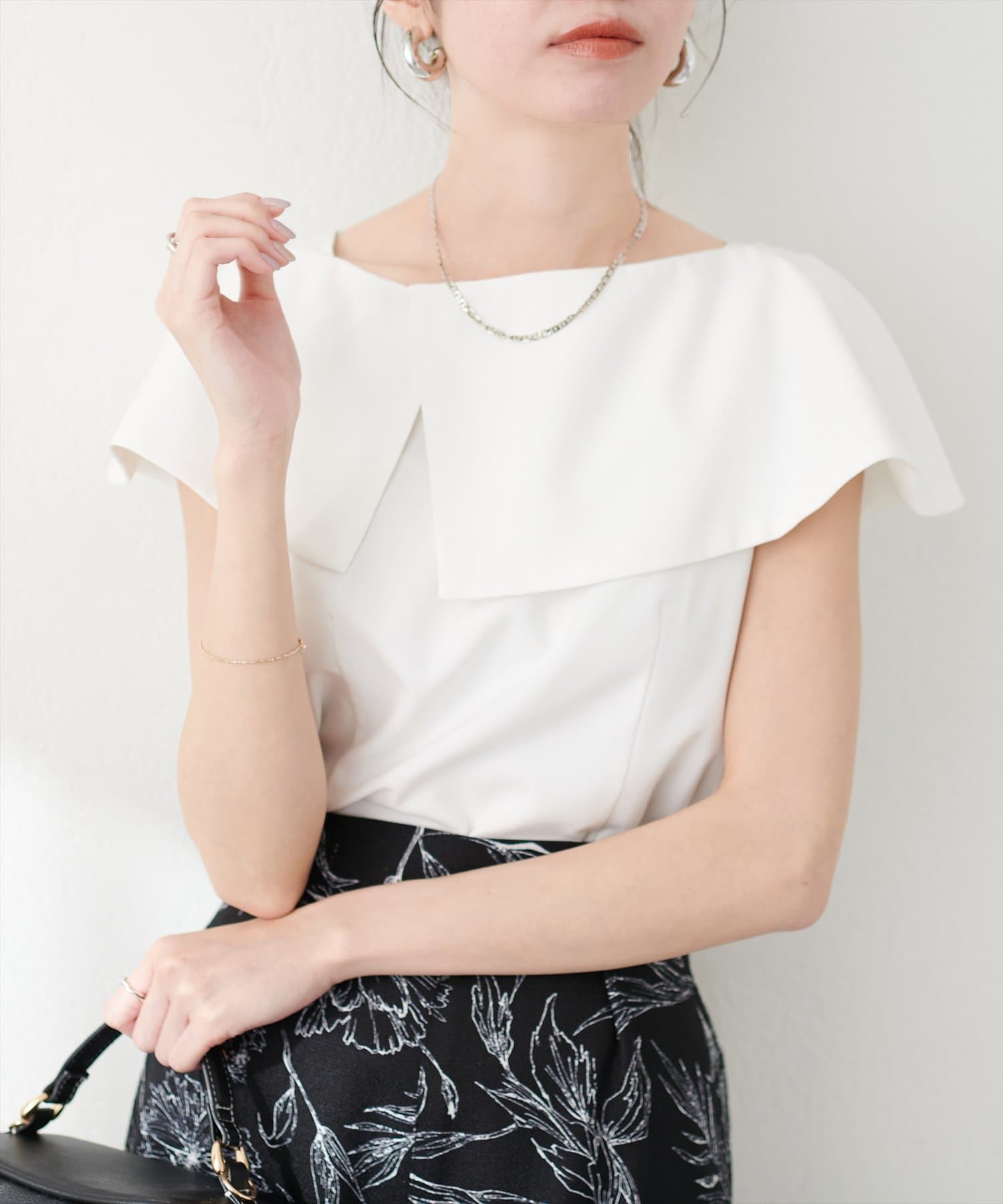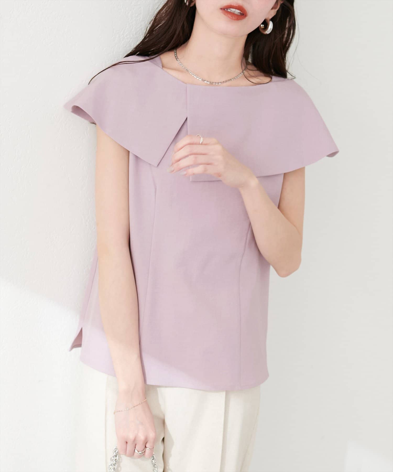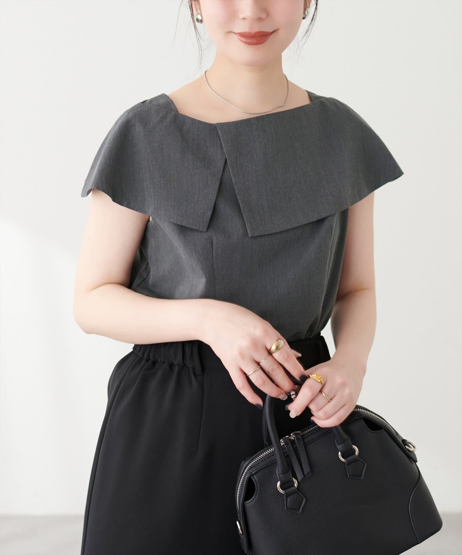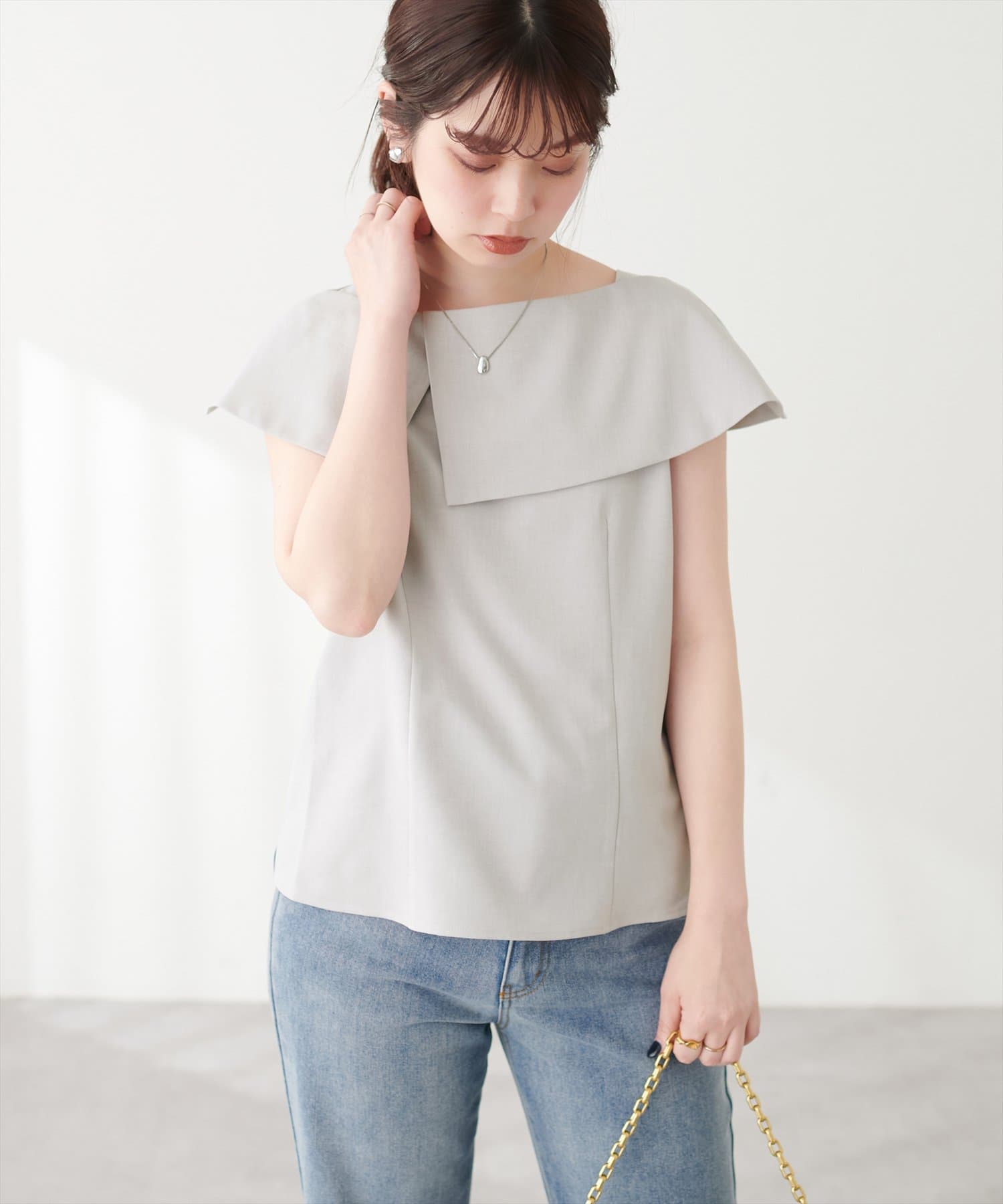 大きなアシメ衿が肩を覆ってくれて肩周りが気にならない優秀アイテムです。
