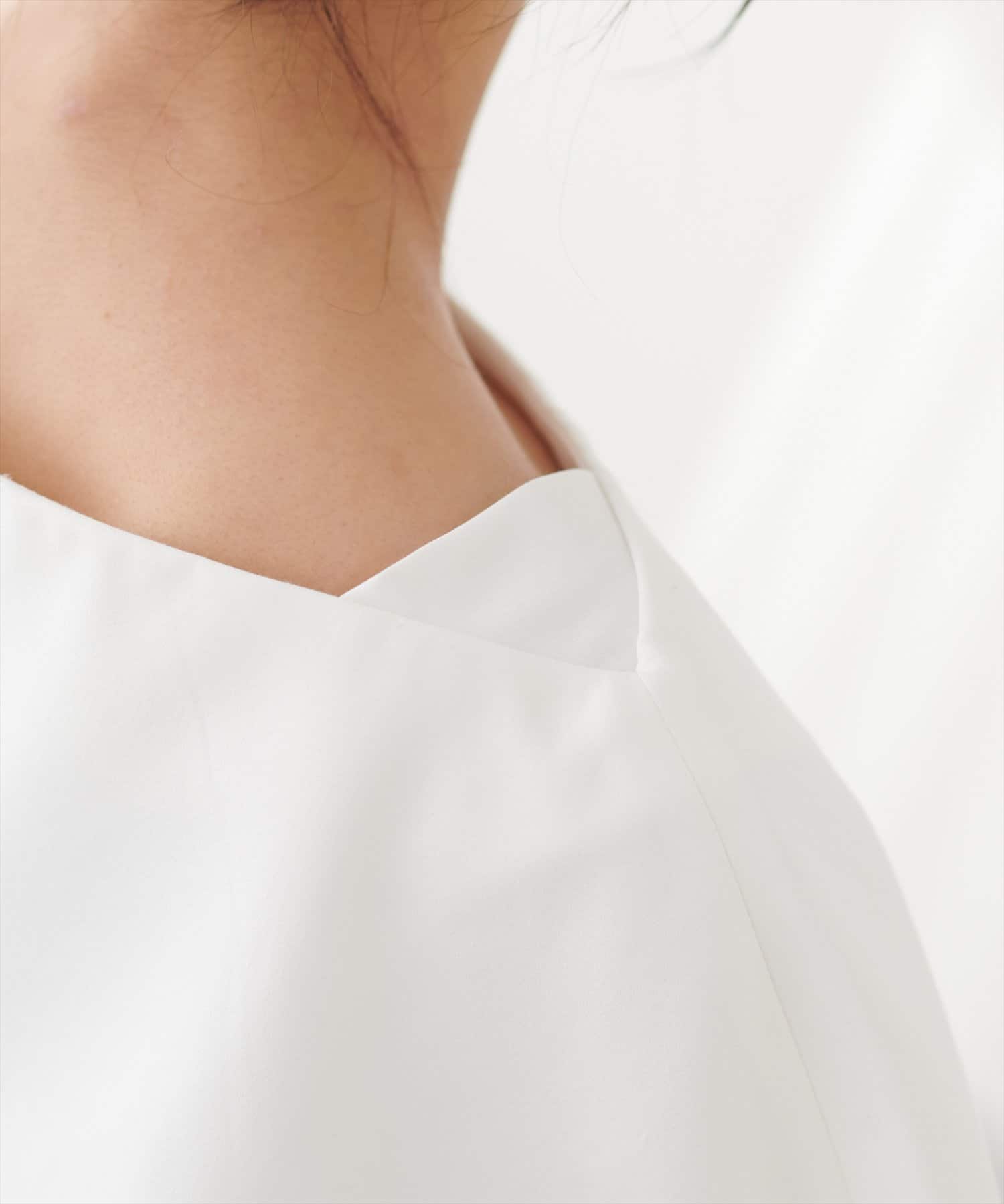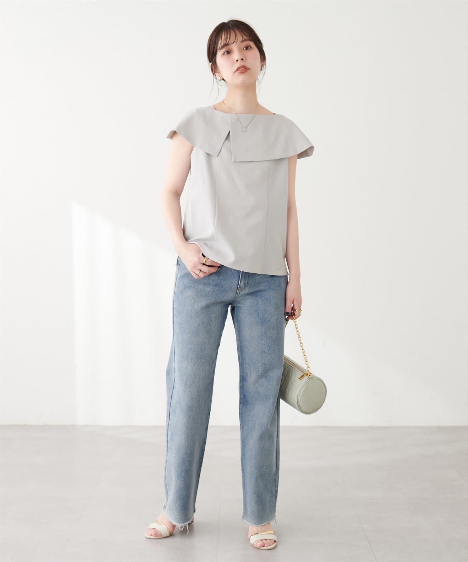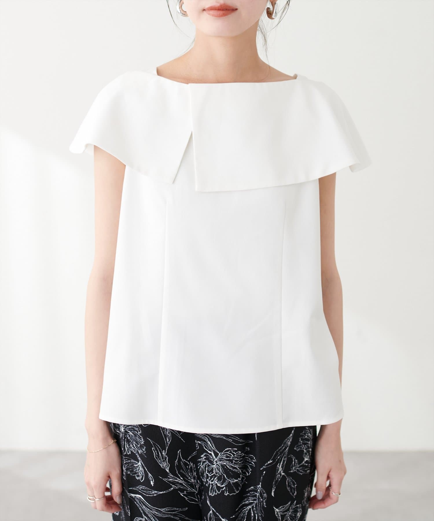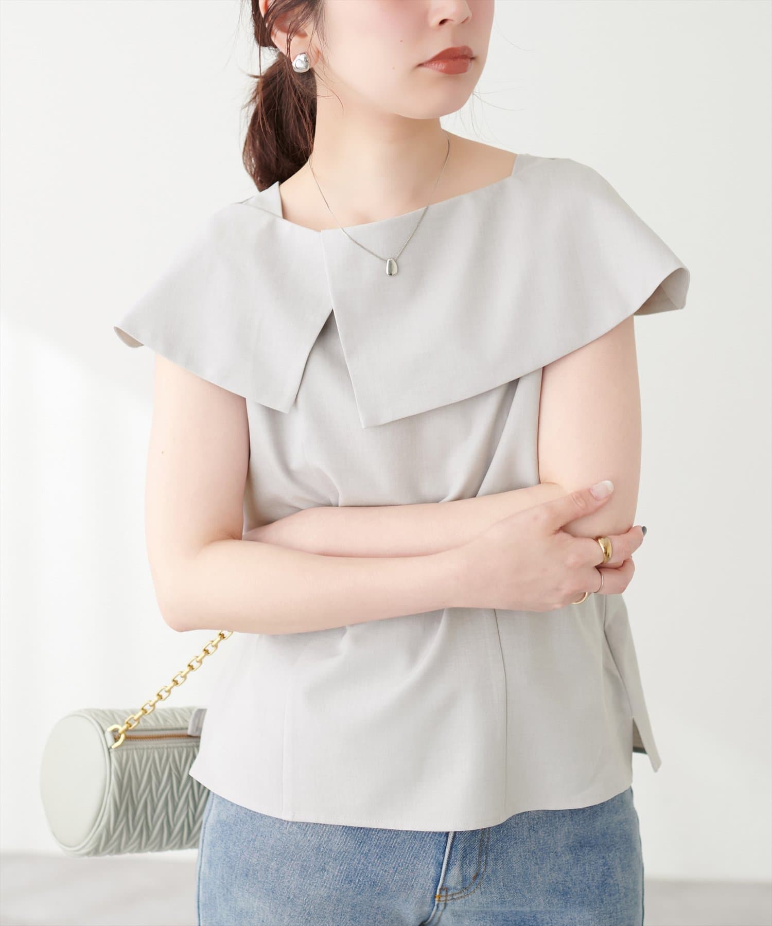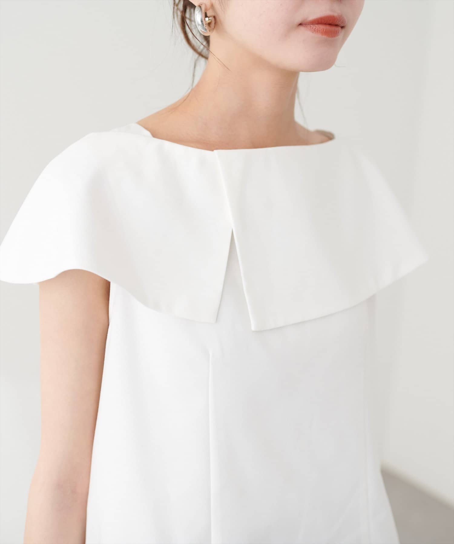 大きなアシメ衿が肩を覆ってくれて肩周りが気にならない優秀アイテムです。