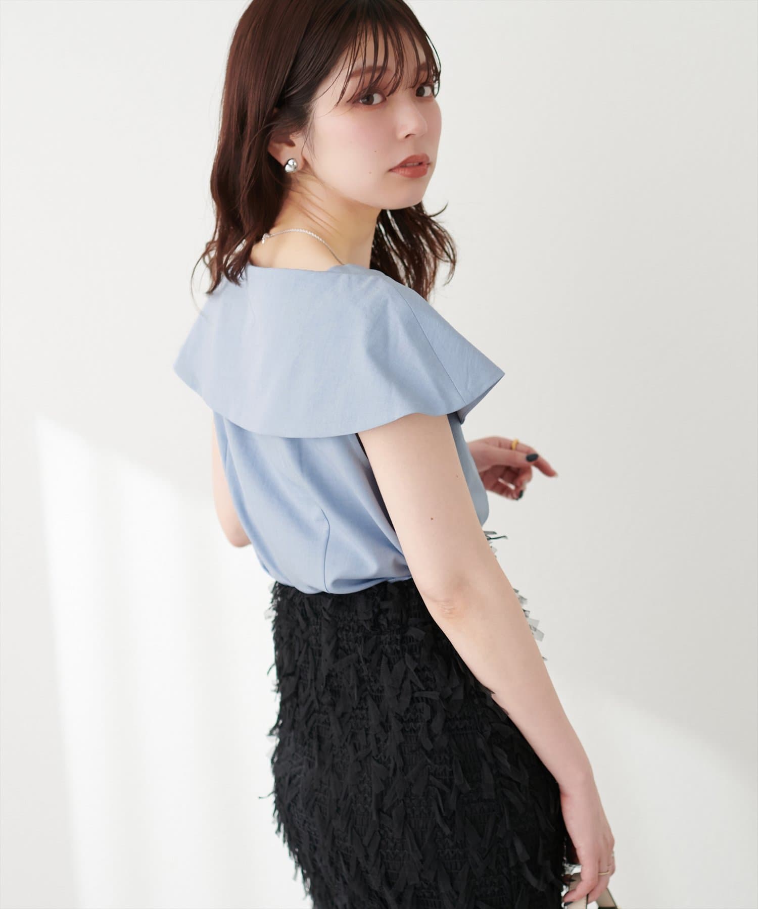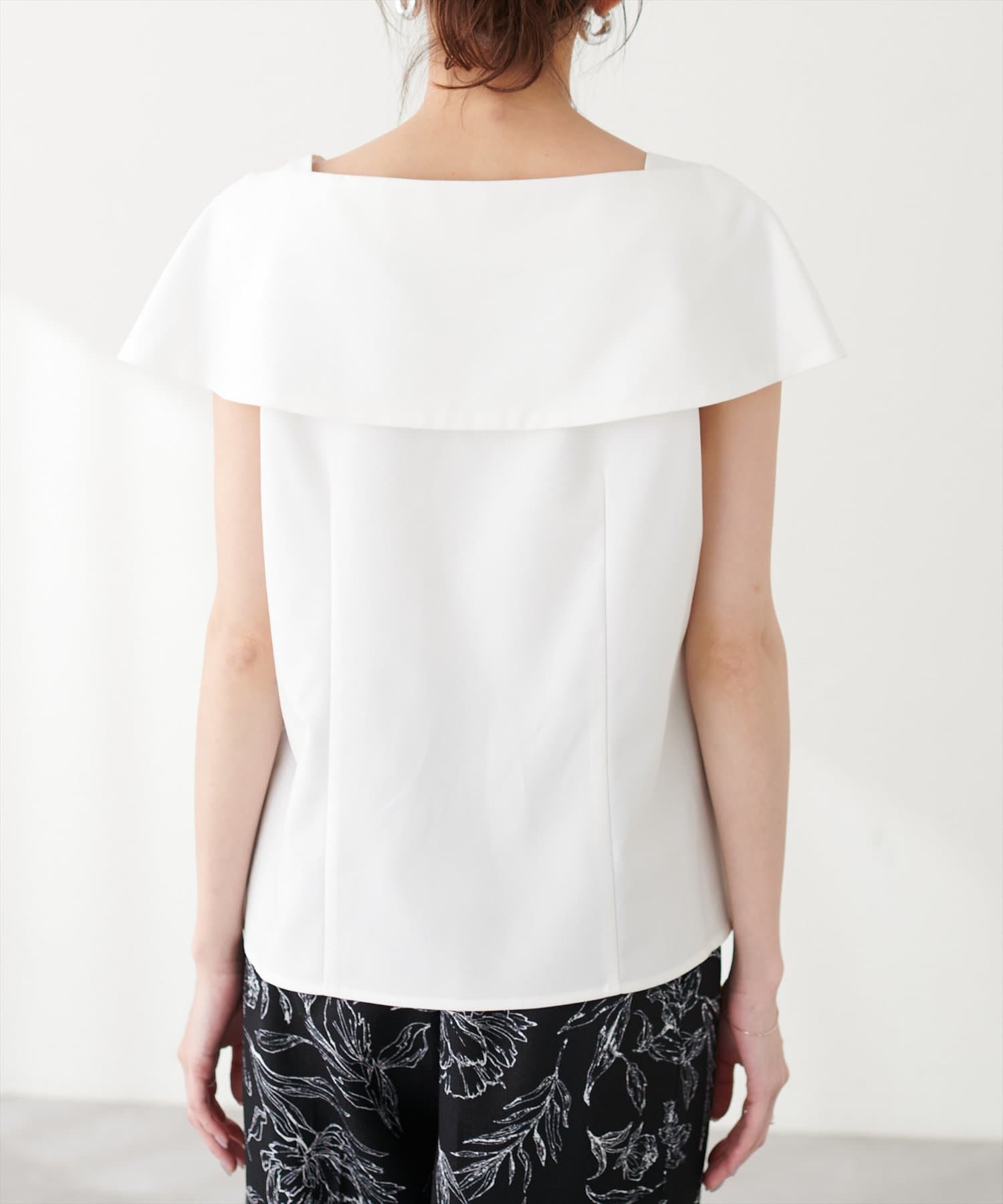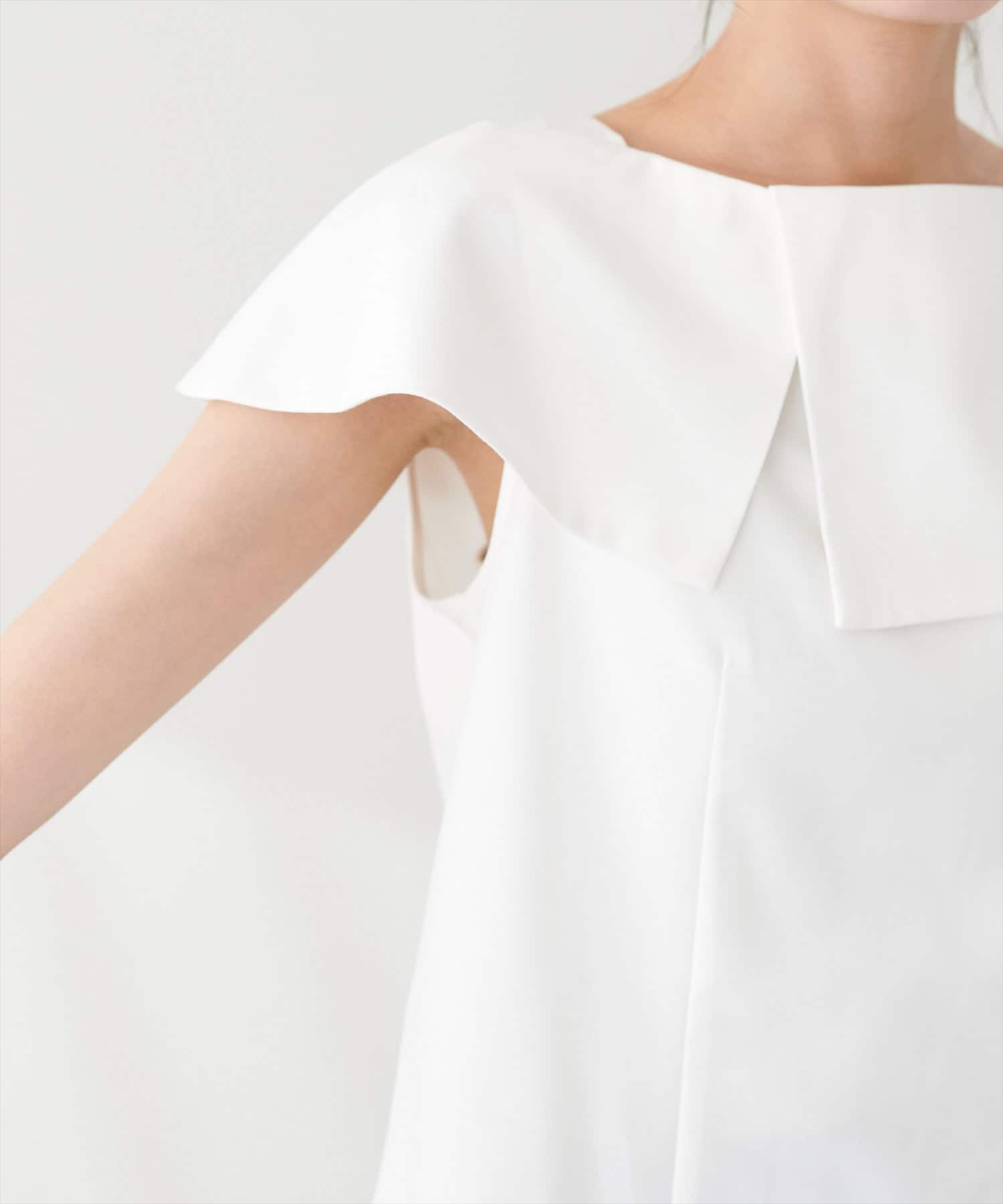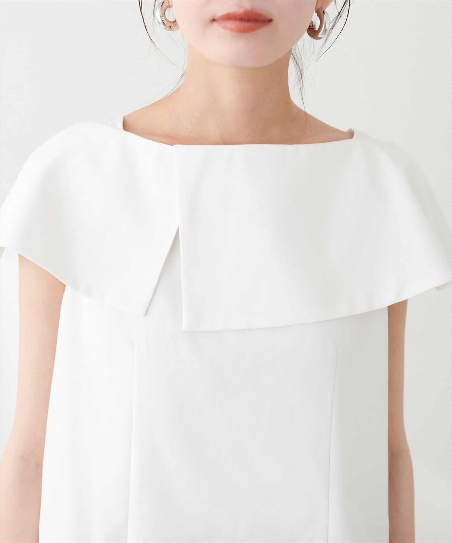 大きなアシメ衿が肩を覆ってくれて肩周りが気にならない優秀アイテムです。