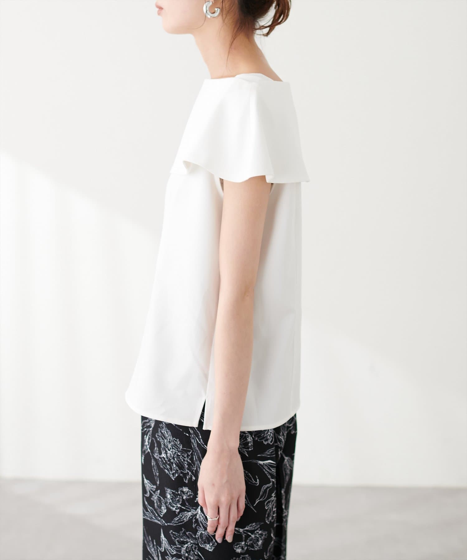 オフショルが苦手な人でも着やすいオフショル風ブラウス。