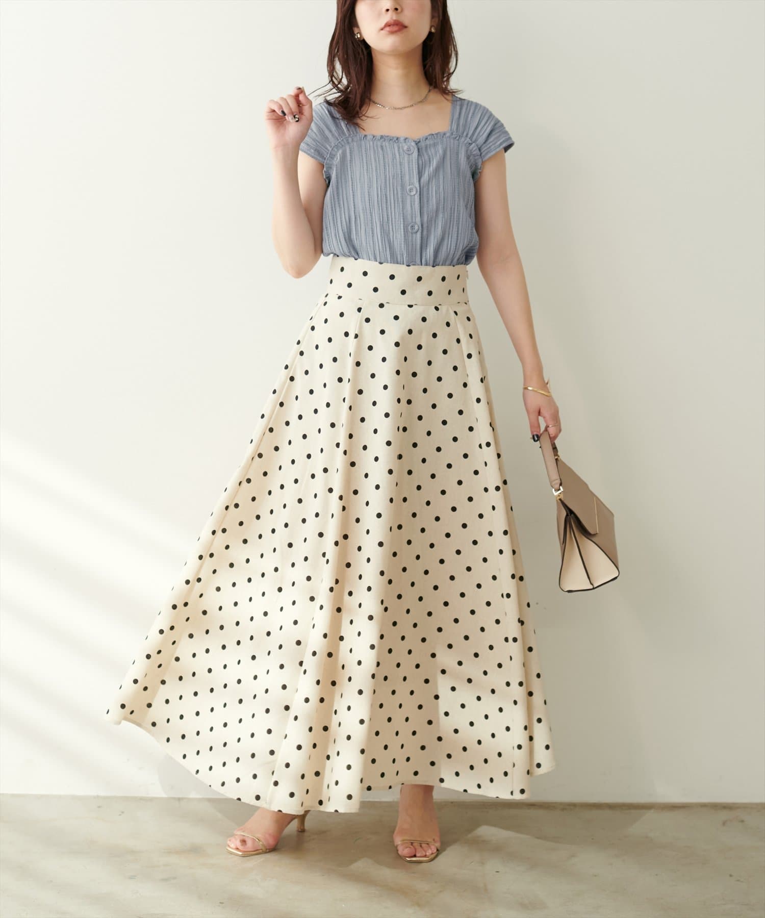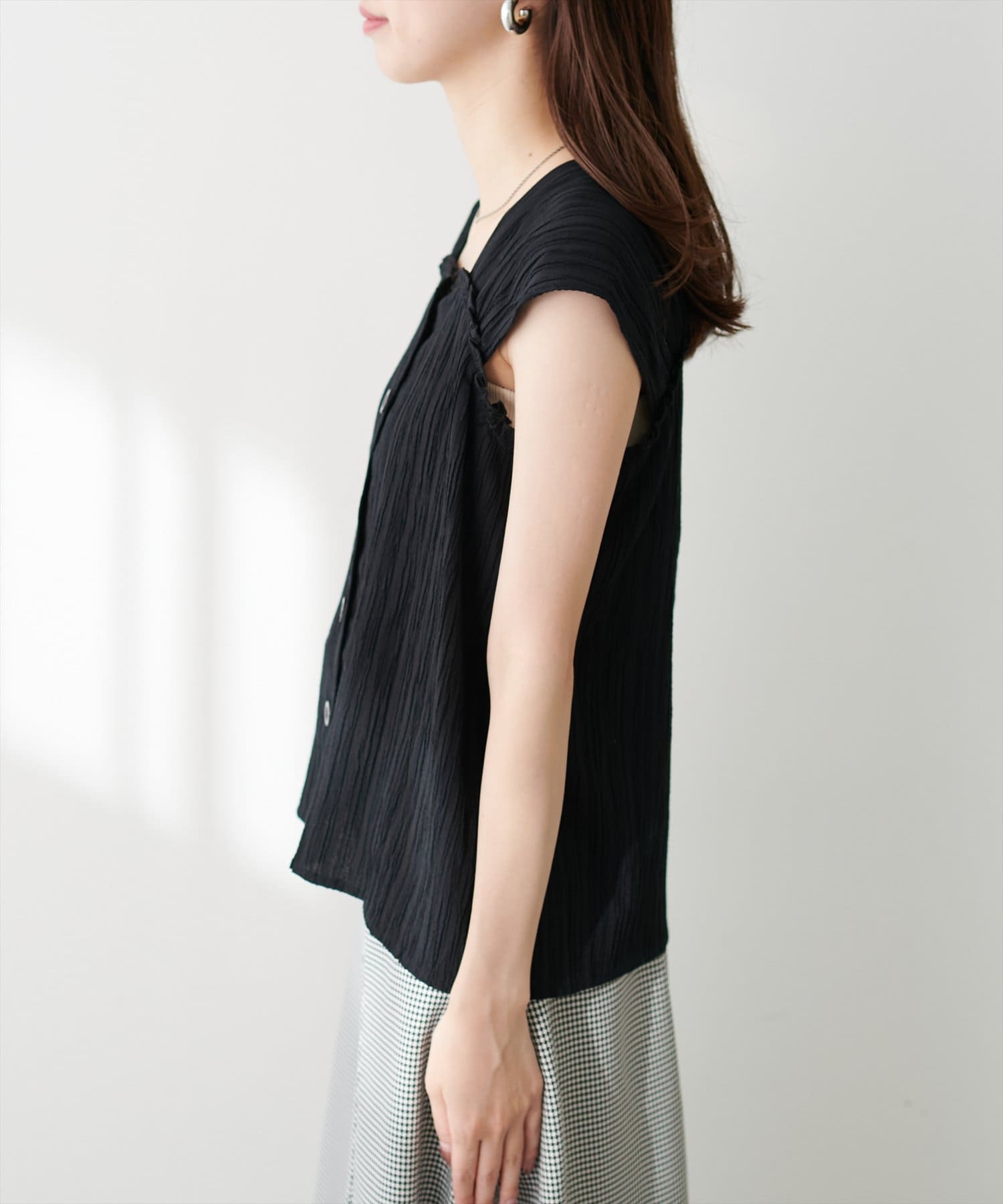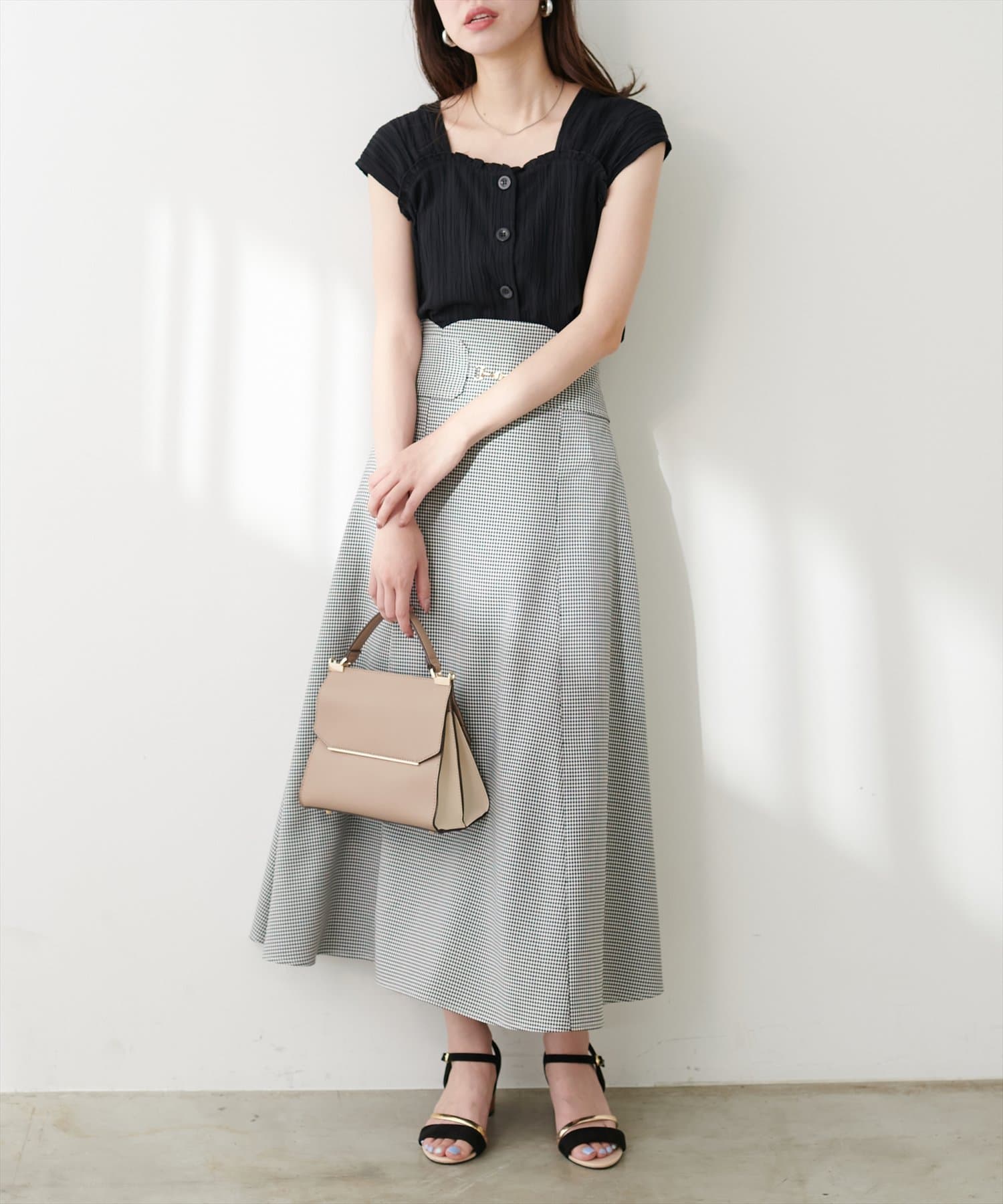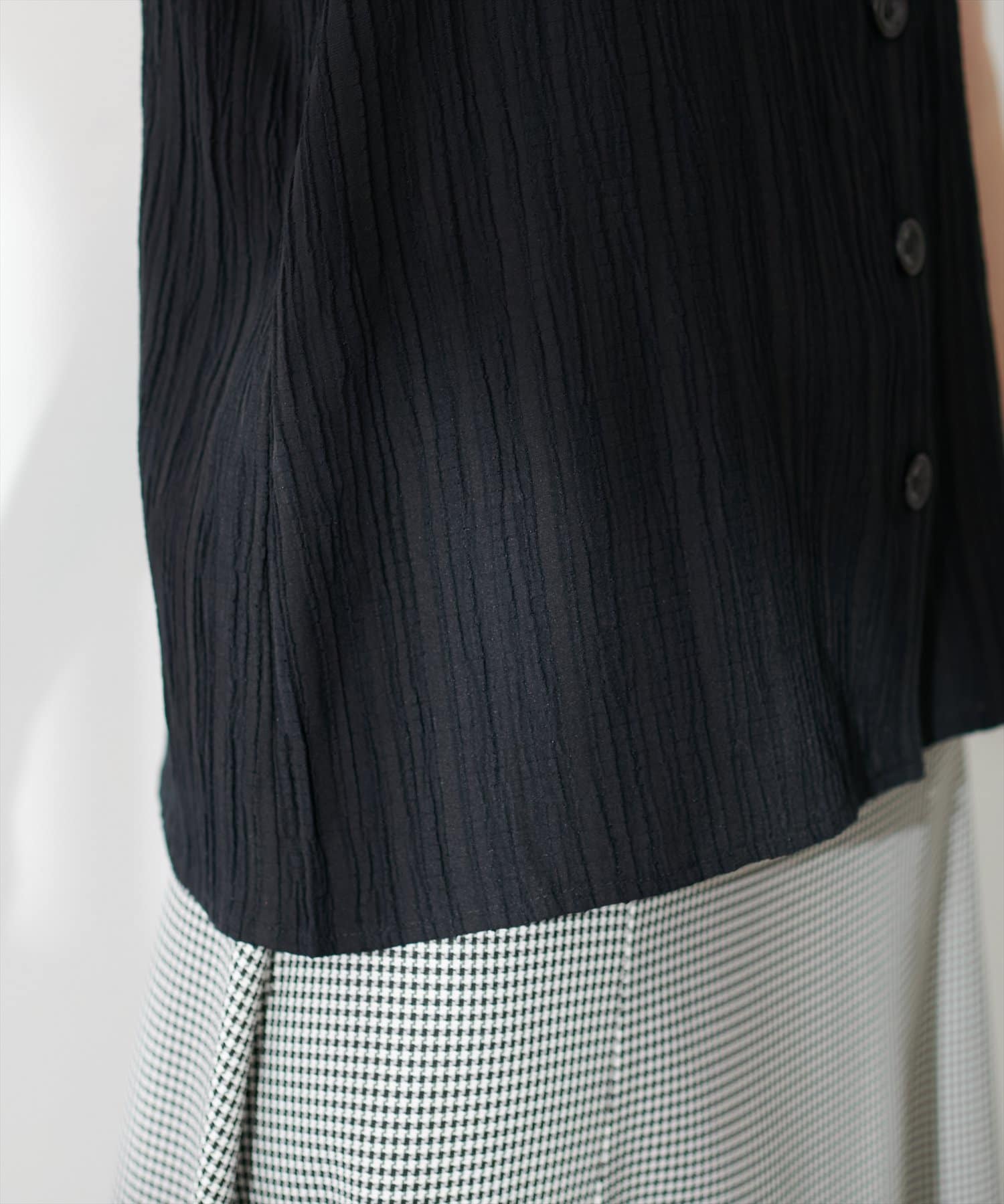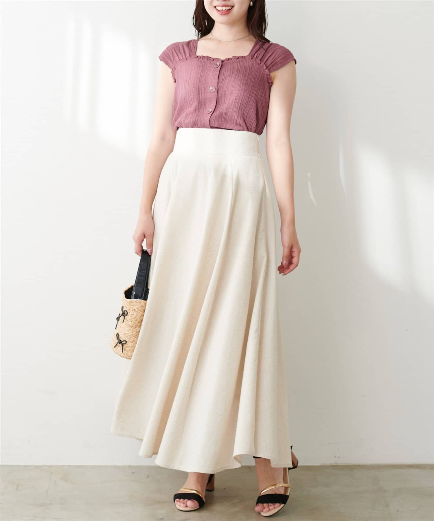 真夏は1枚で涼しく。フェミニンにスカート合わせはもちろん、パンツと合わせるとカジュアルスタイルの中にも