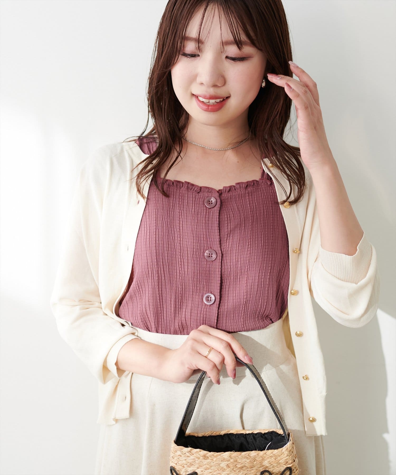 カーディガンやジャケットのインナーとしても活躍するので、夏から秋まで着回ししていただけます。