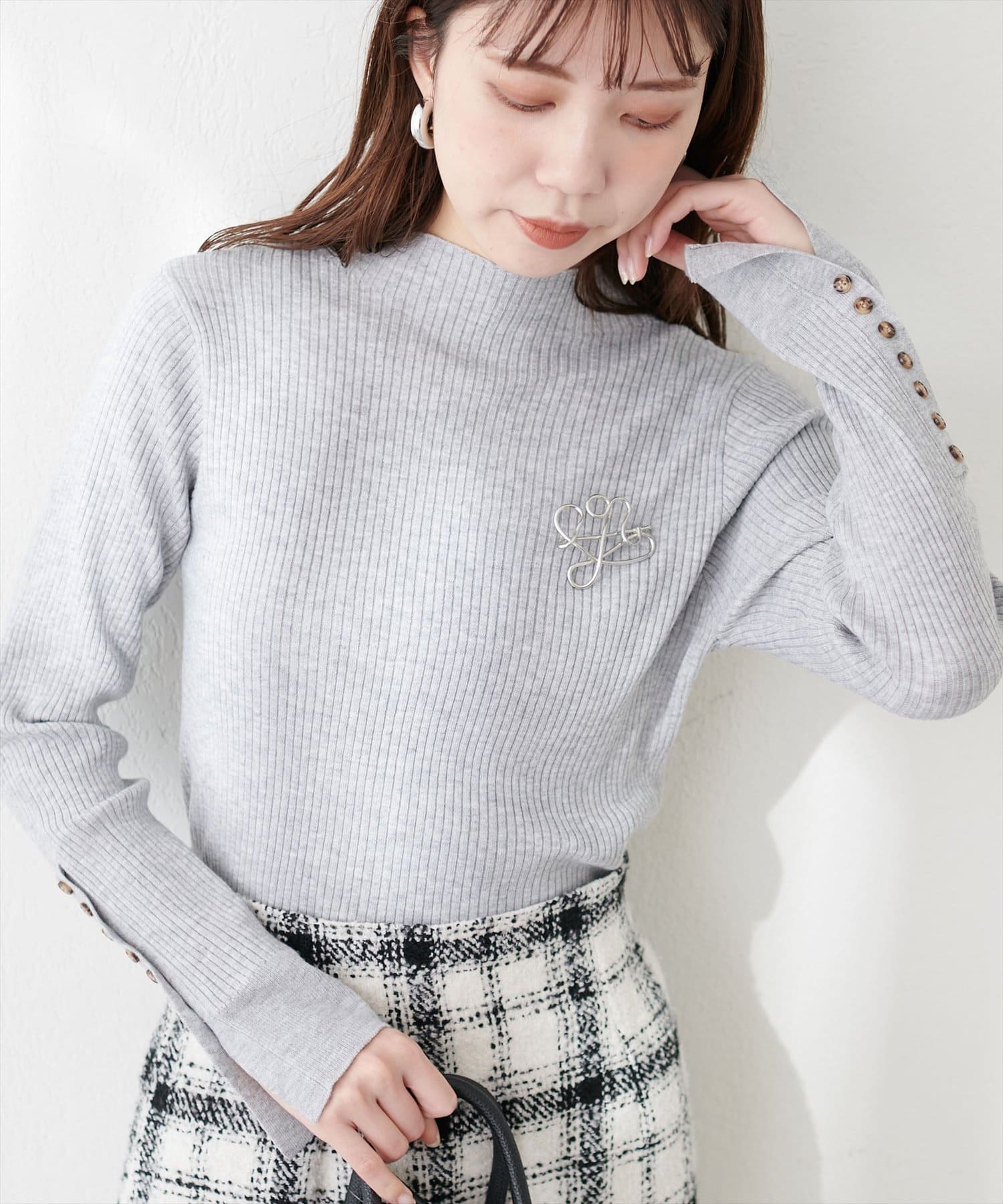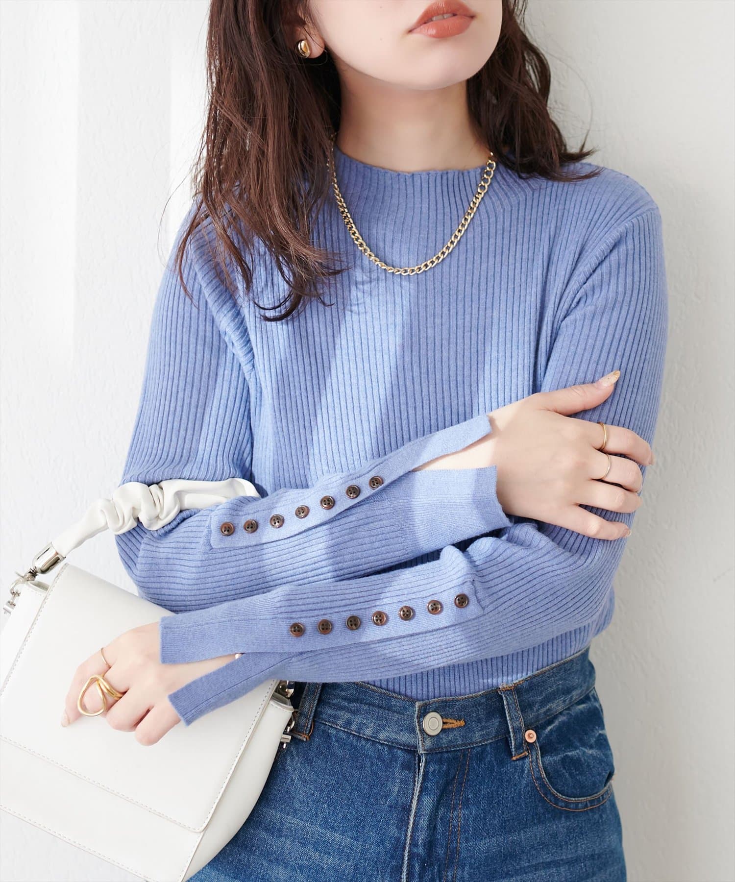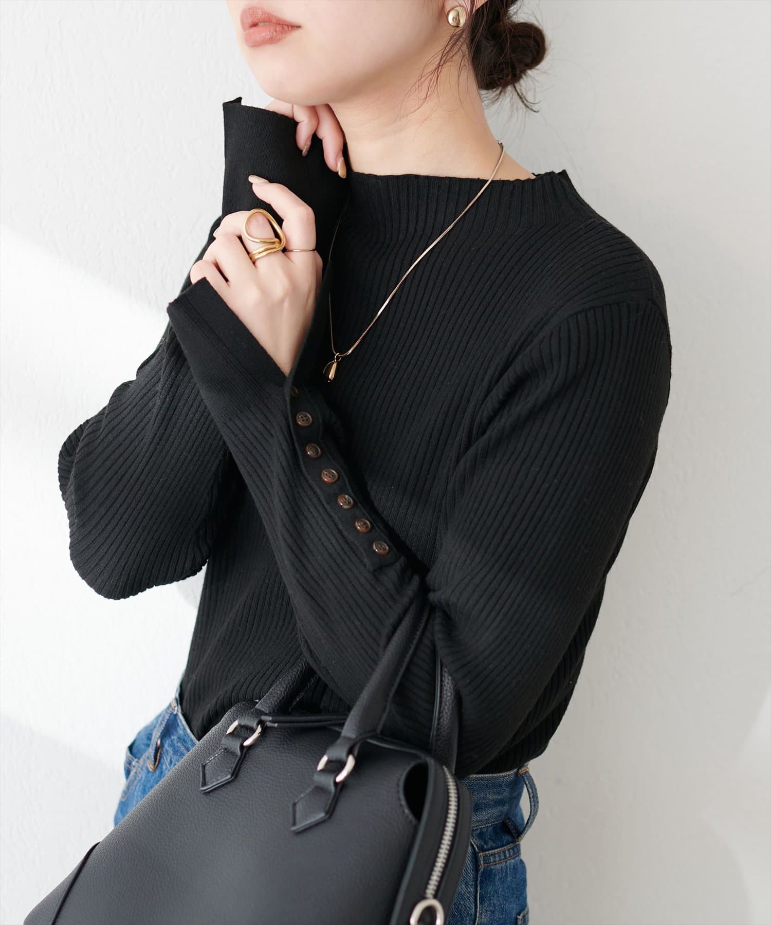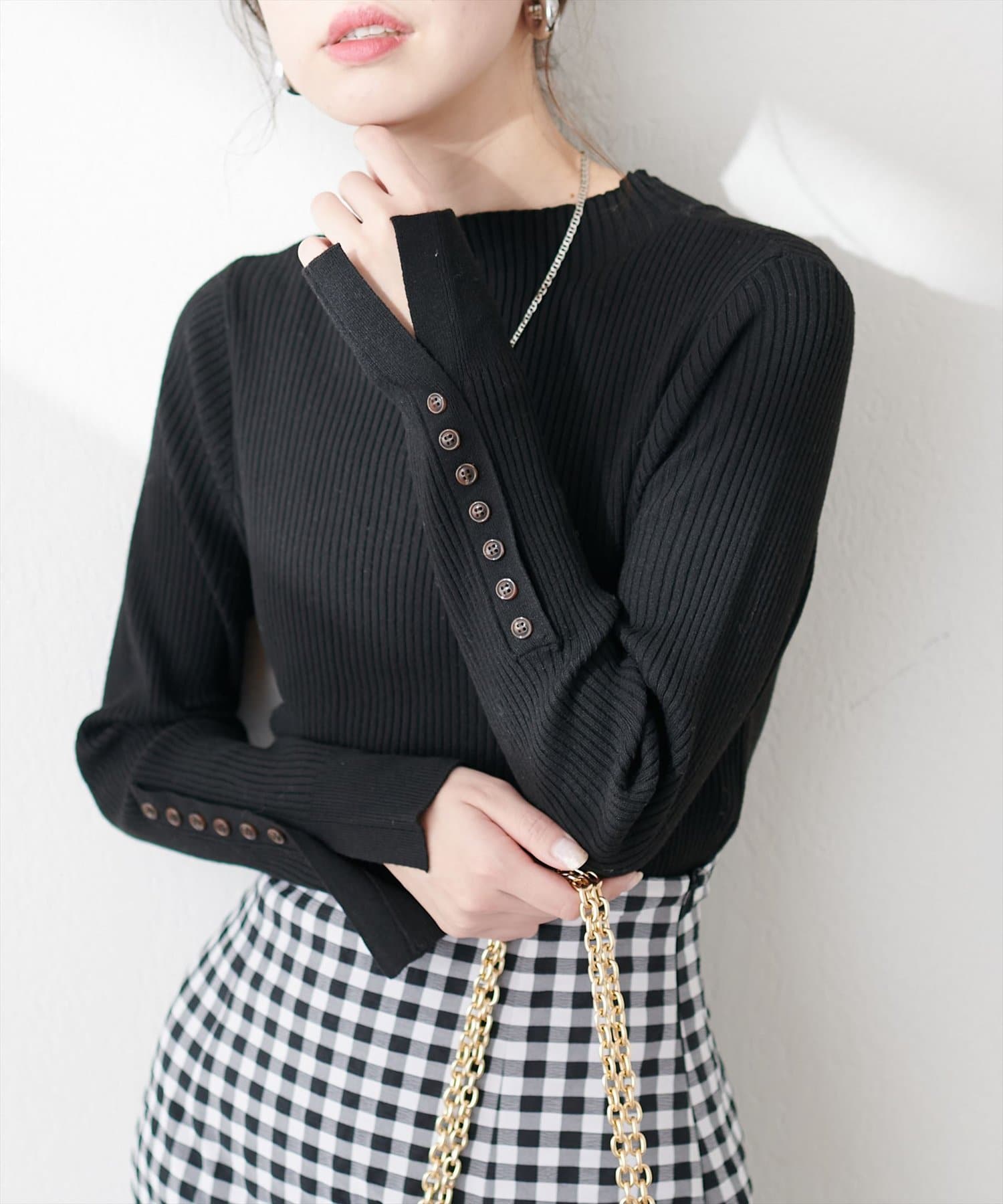 袖口ちび釦プチハイリブニット