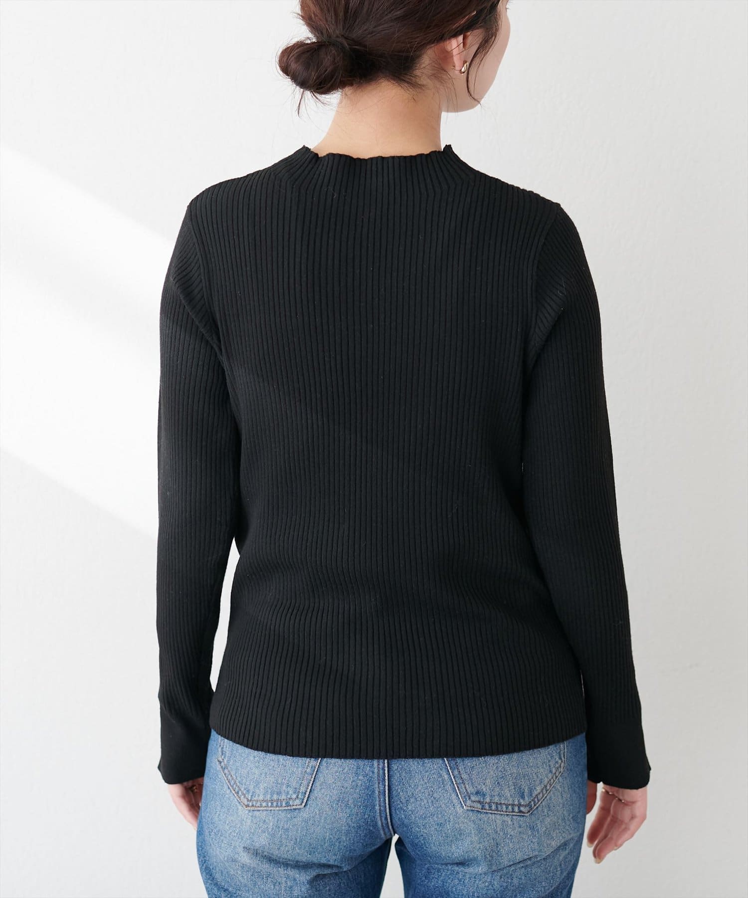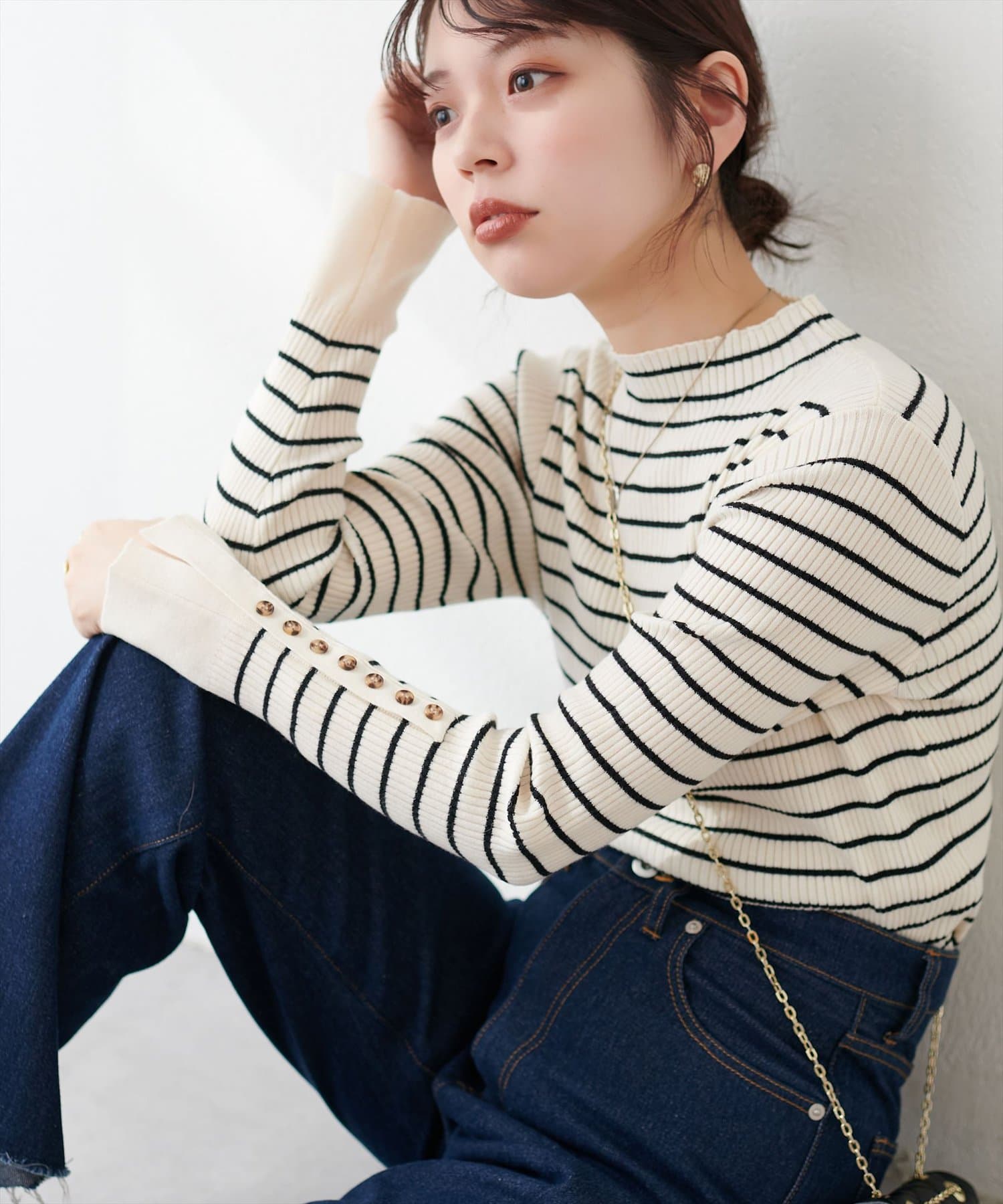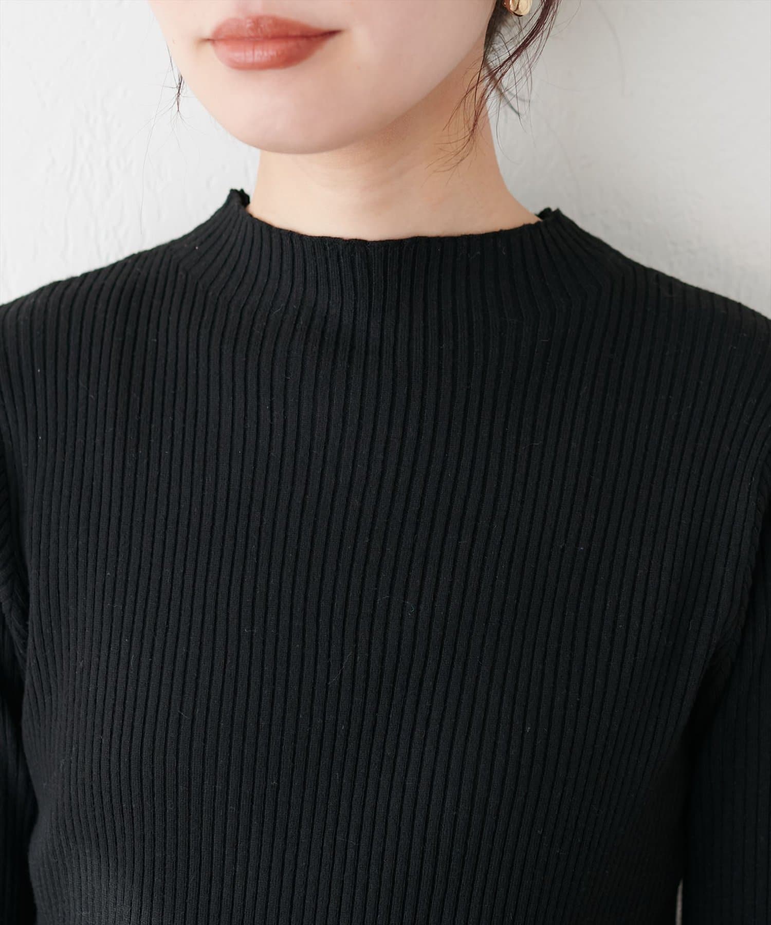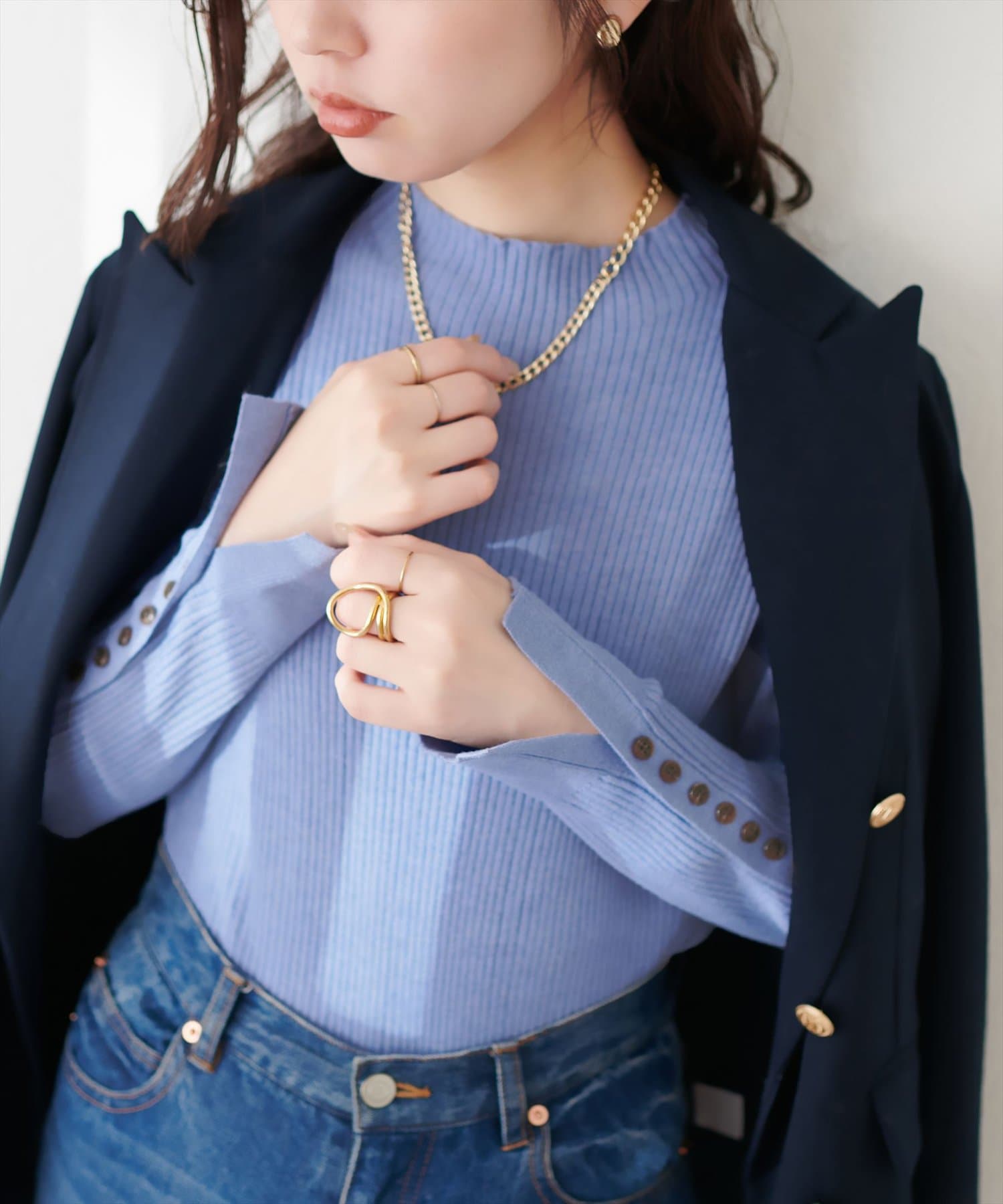 • natural couture(ナチュラルクチュール) 袖口ちび釦プチハイリブニット