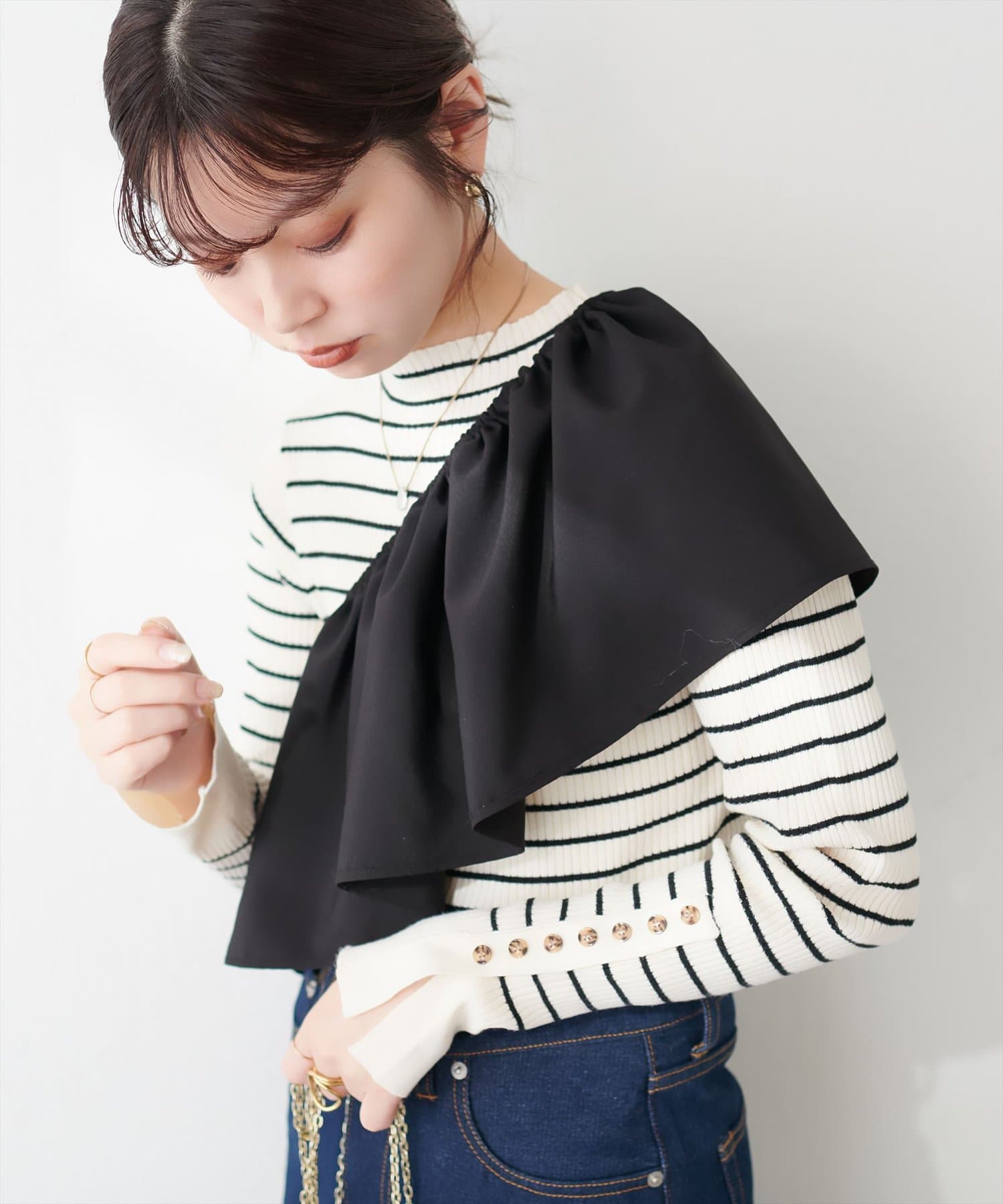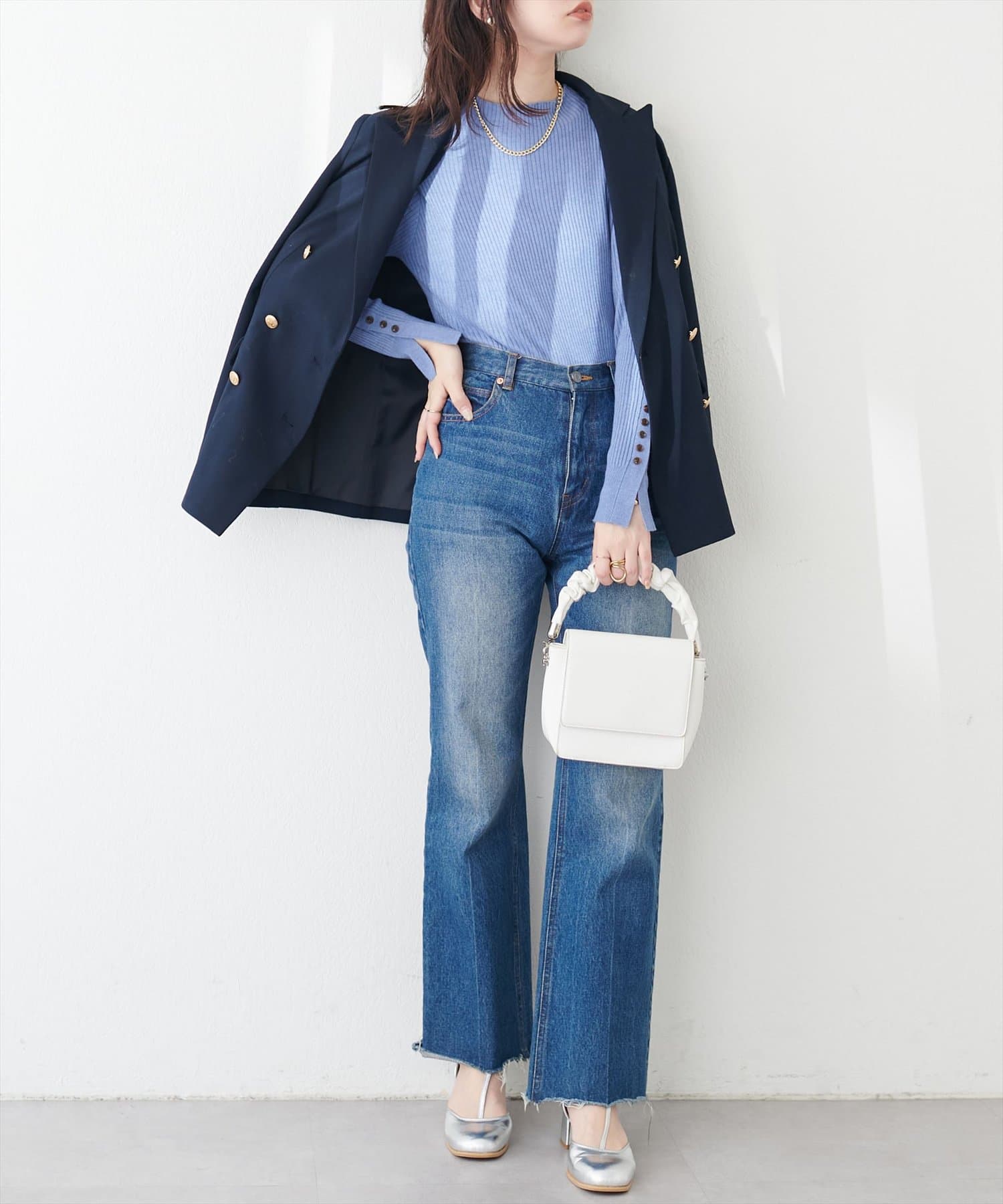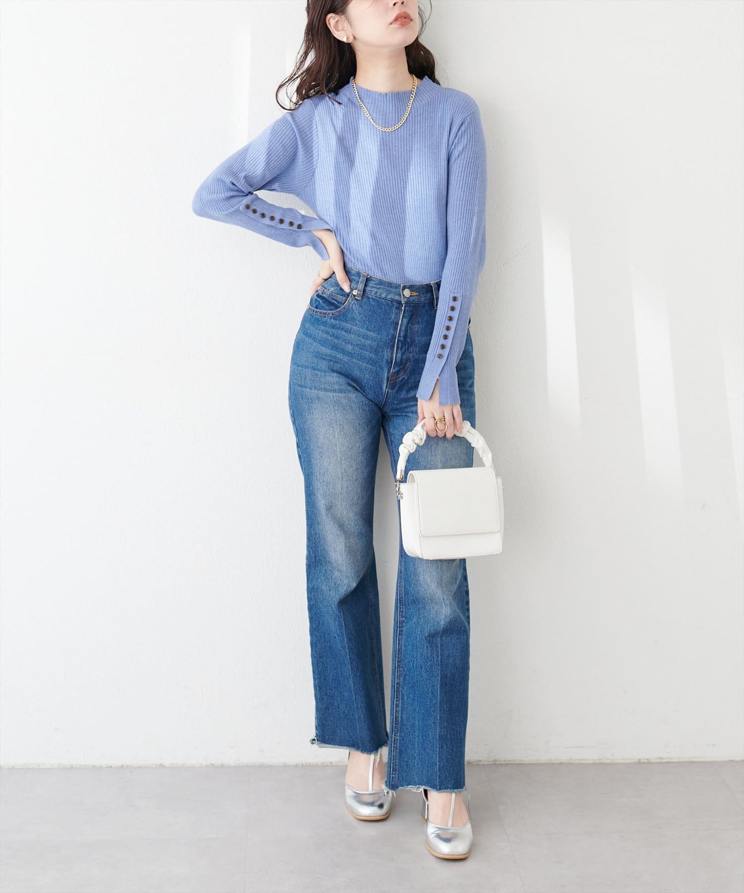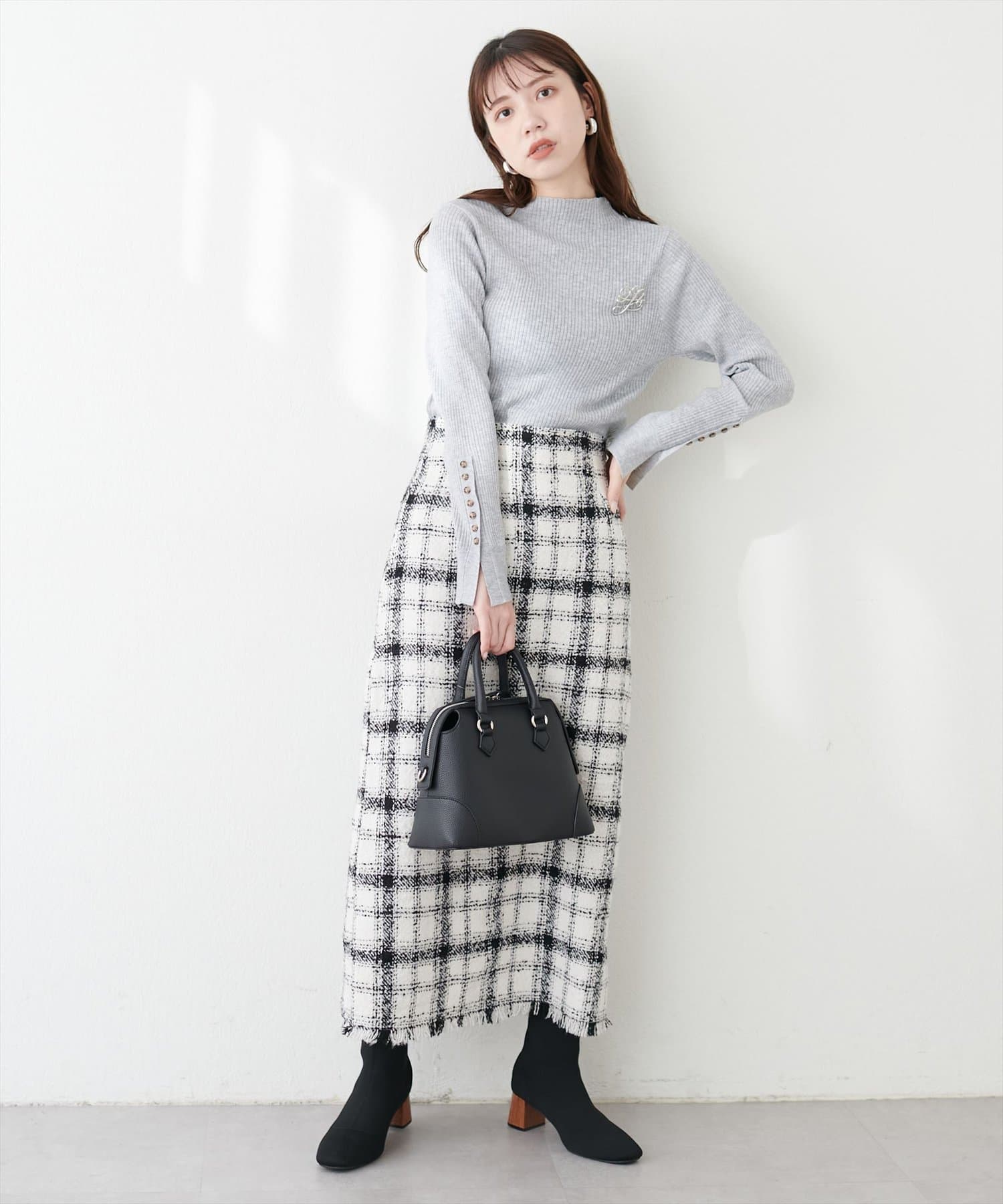 • natural couture(ナチュラルクチュール) 袖口ちび釦プチハイリブニット
