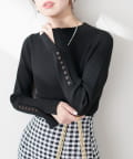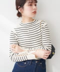ナチュラルに高見えするべっ甲釦を袖に施した、もちもち素材のハイネックリブニット。