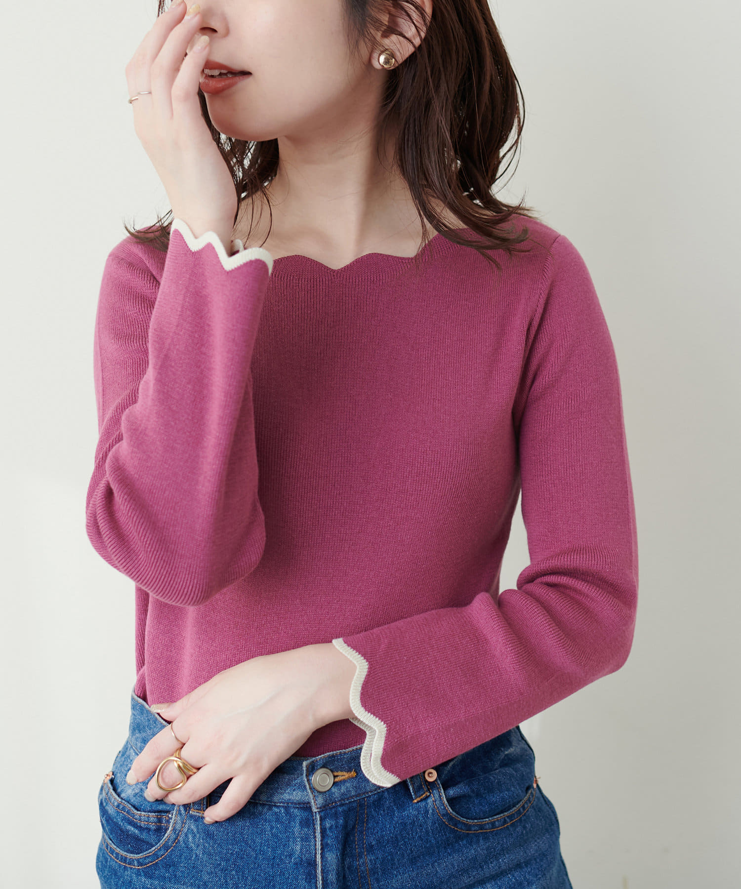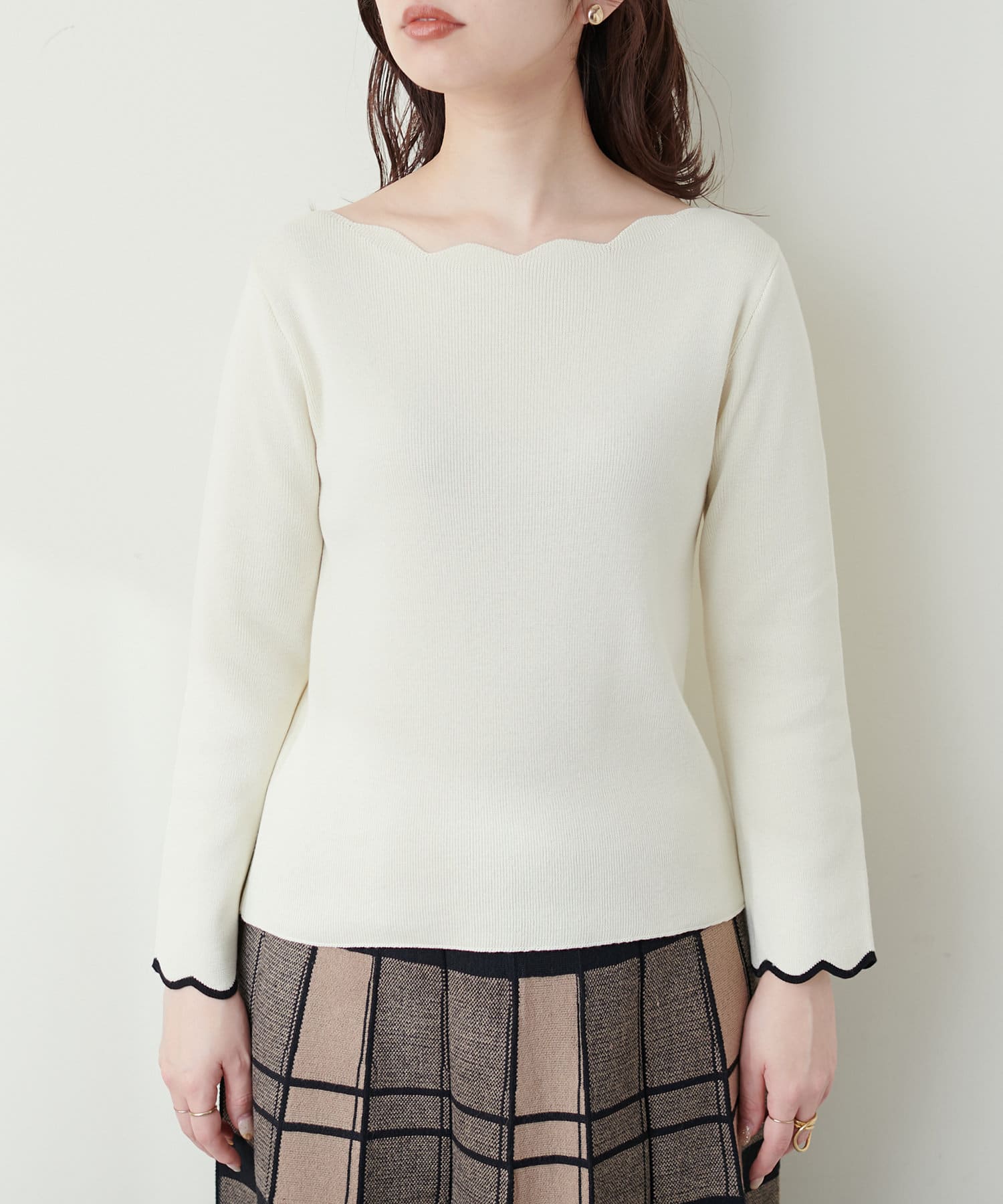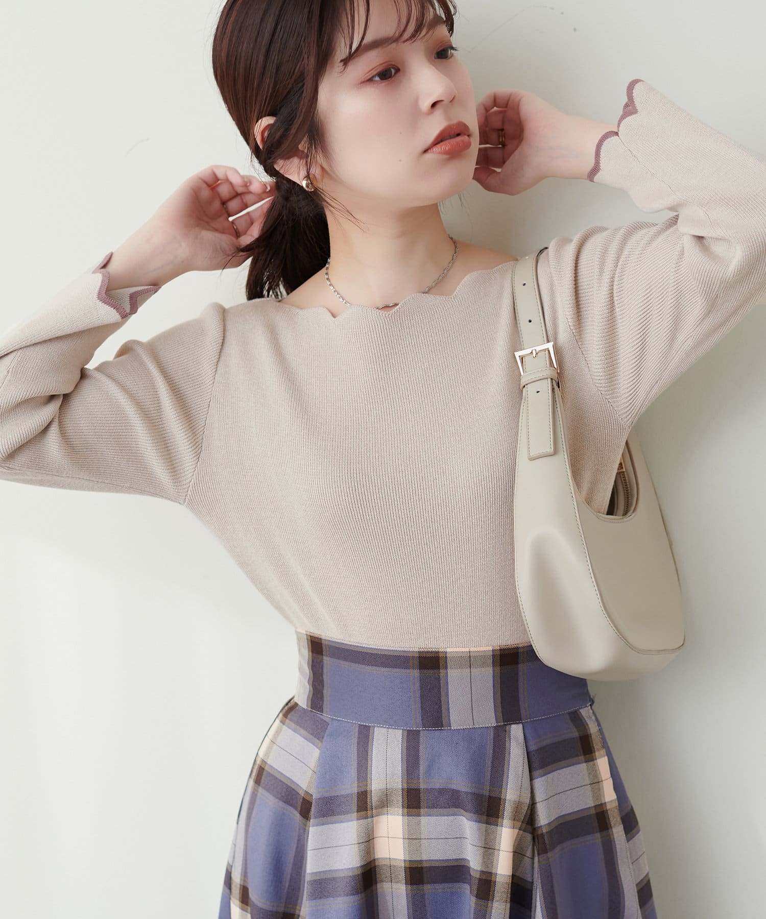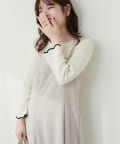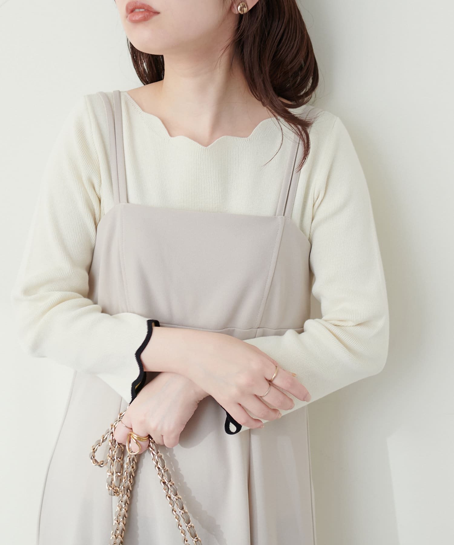 キャミワンピースやサロペットのインナーとしても、配色使いとスカラップデザインが