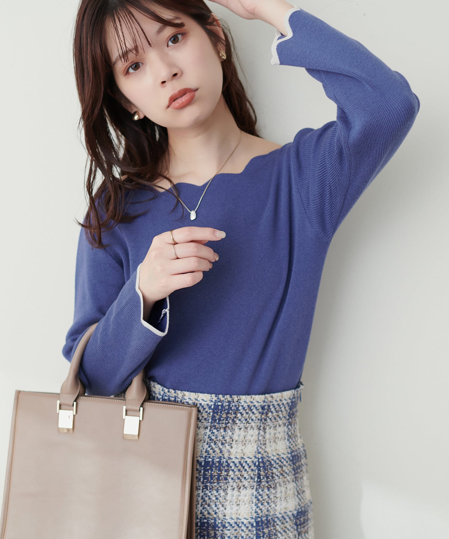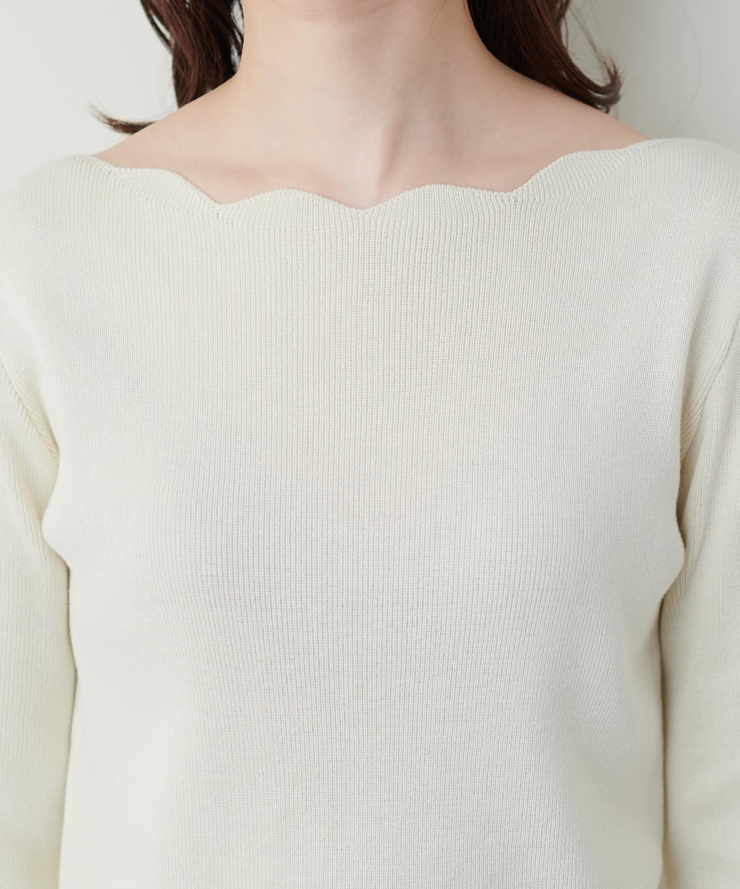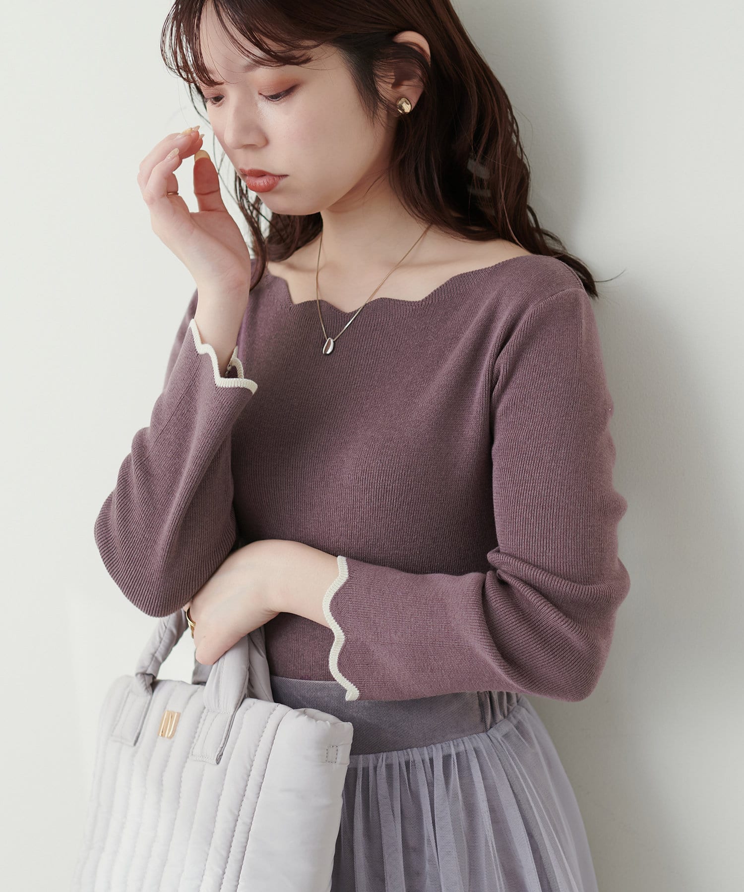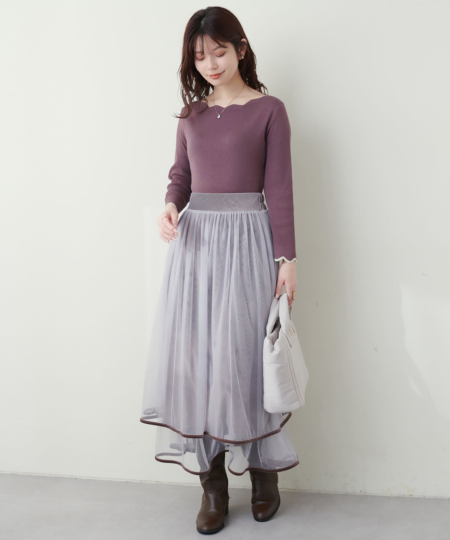 キャミワンピースやサロペットのインナーとしても、配色使いとスカラップデザインが