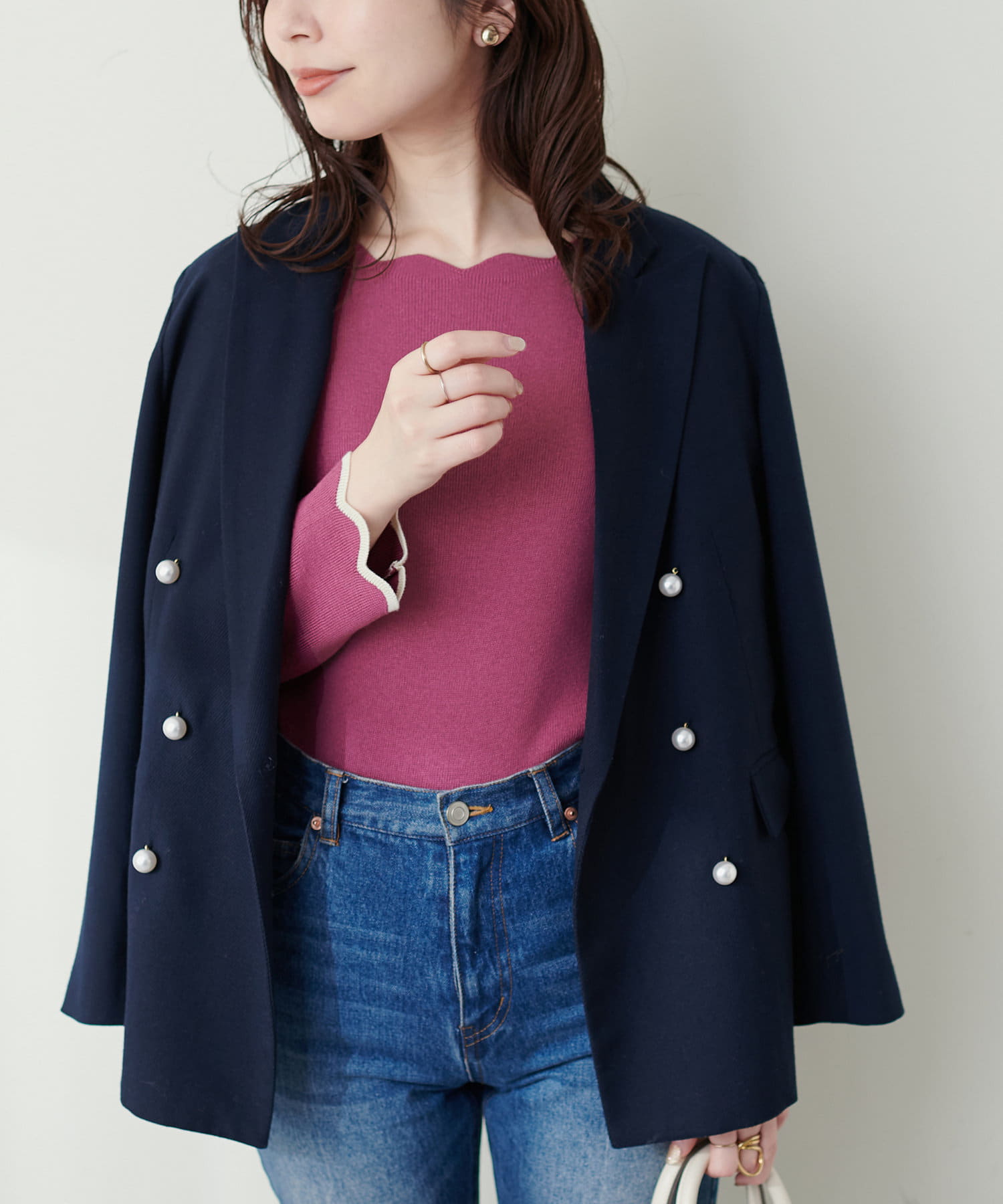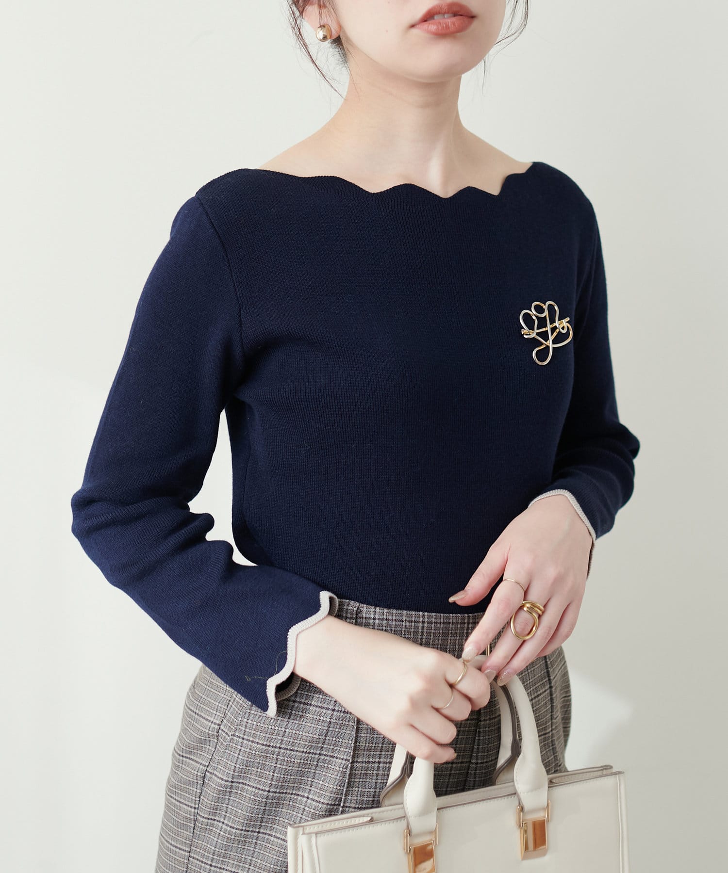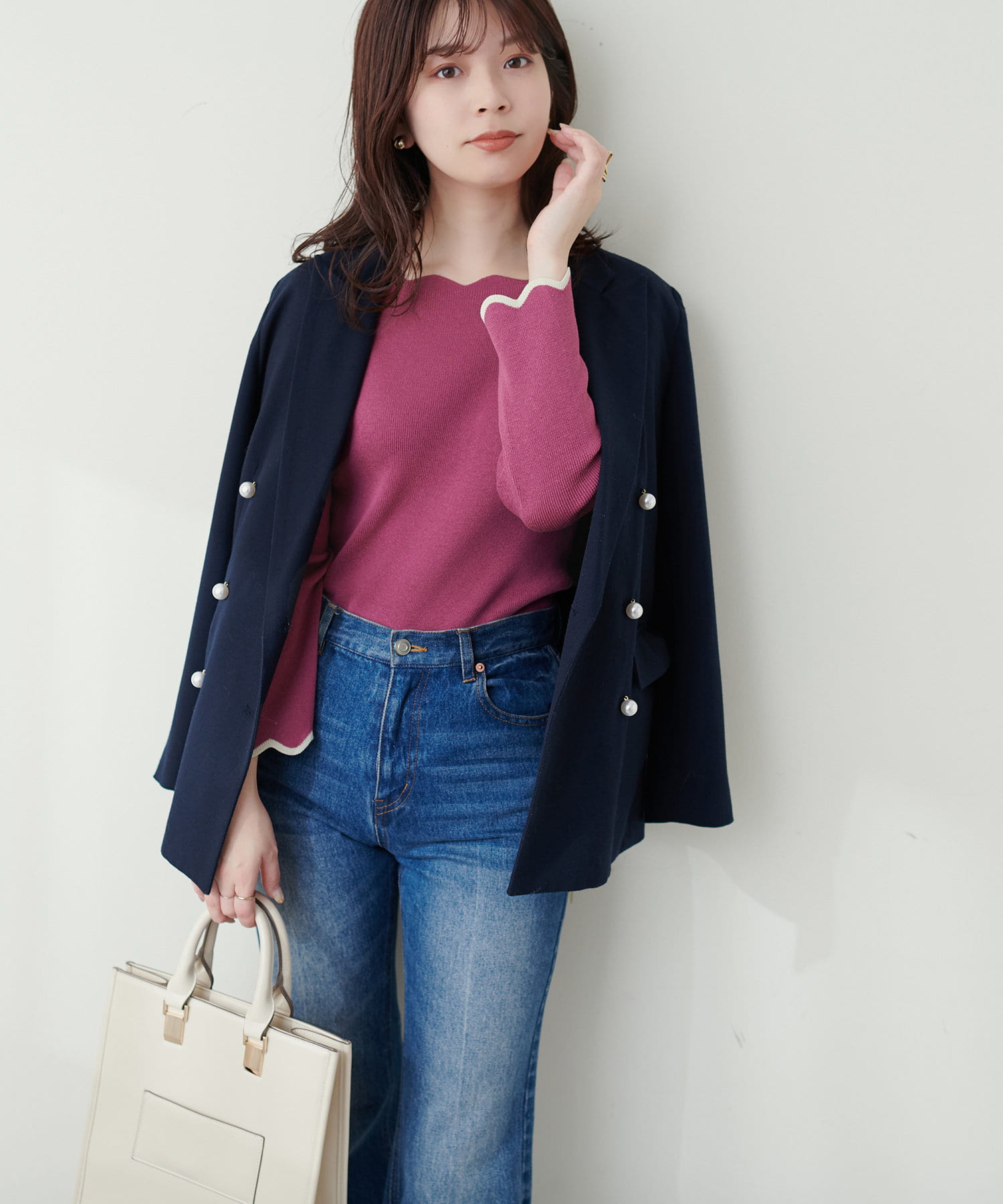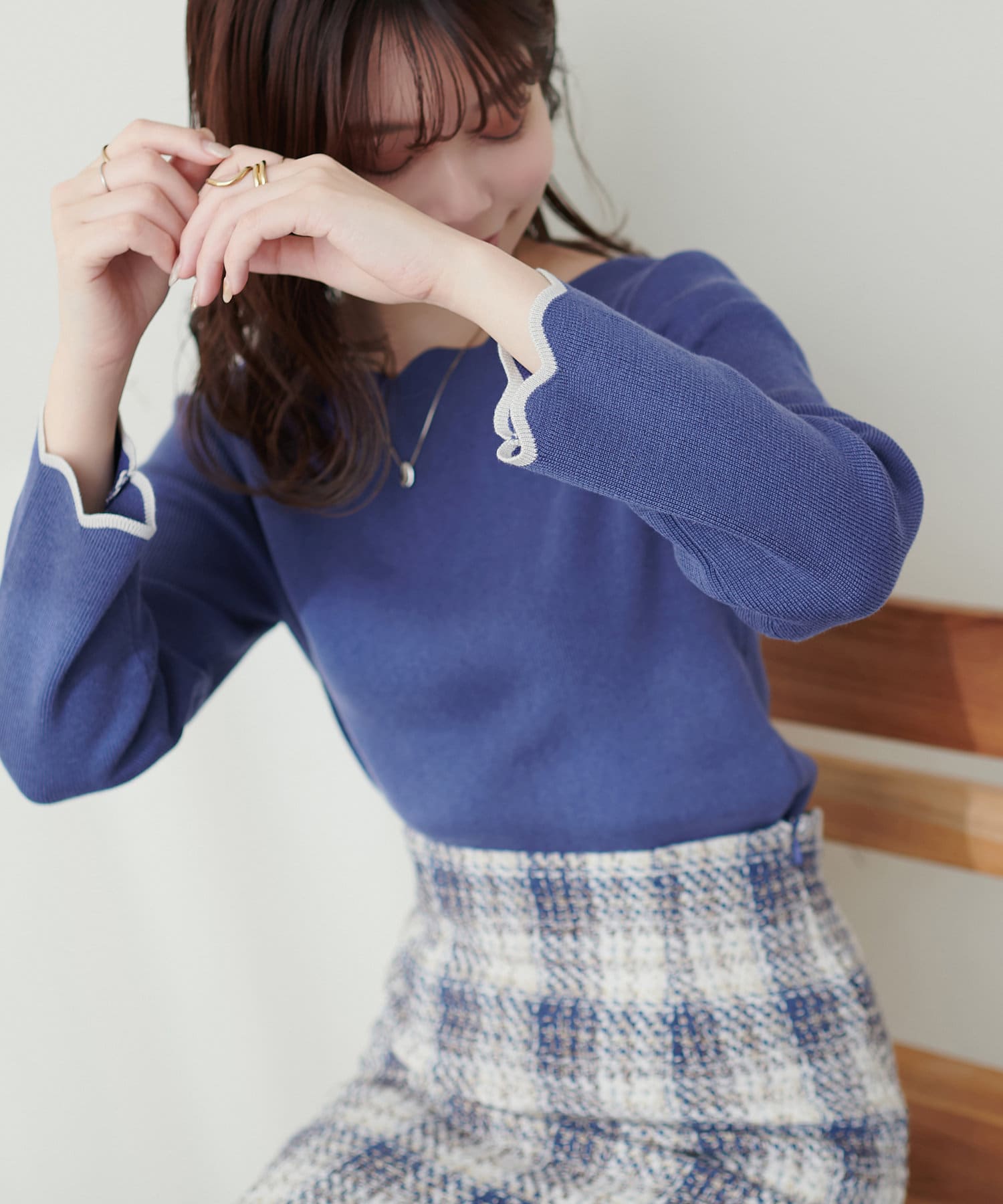 キャミワンピースやサロペットのインナーとしても、配色使いとスカラップデザインが