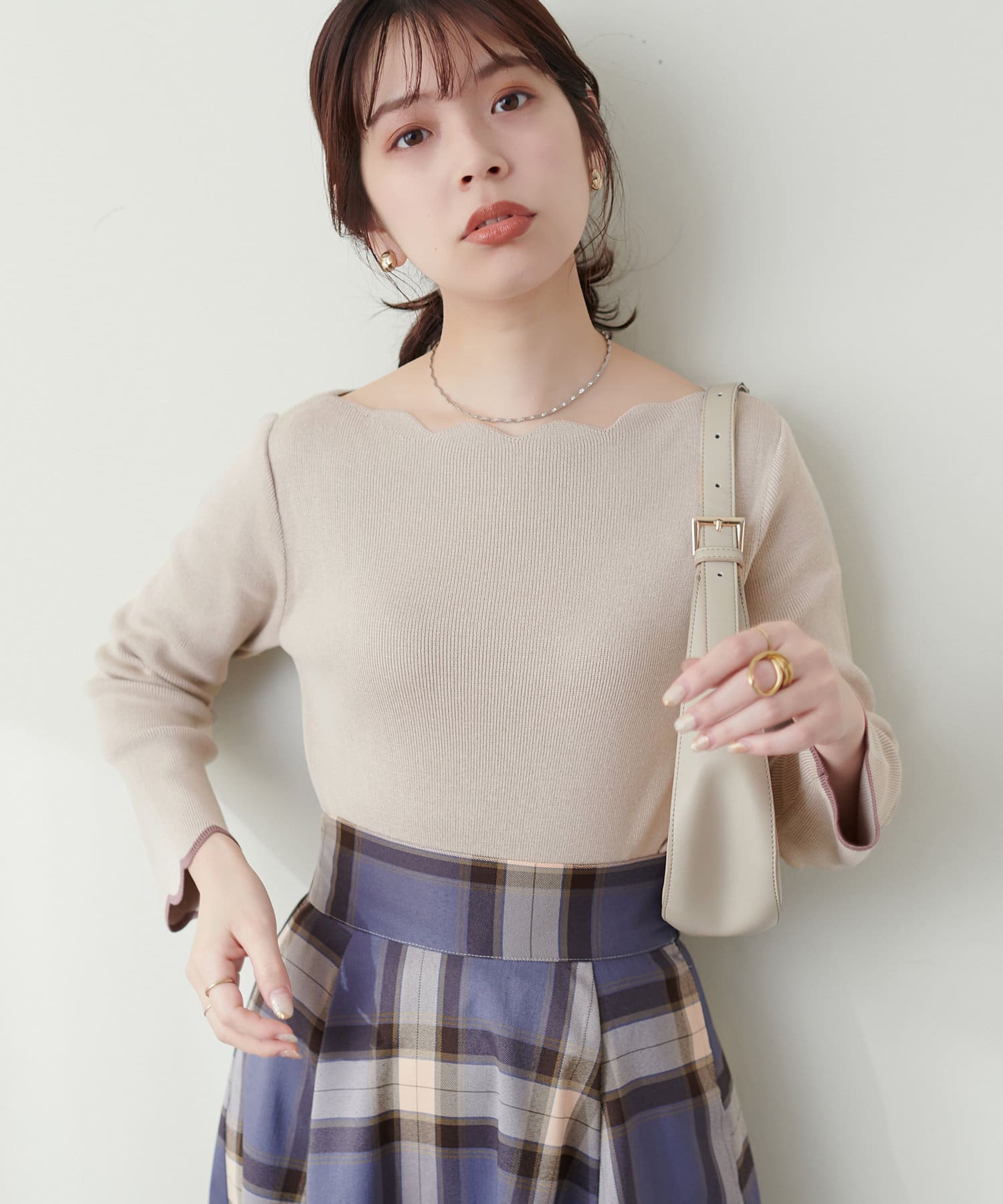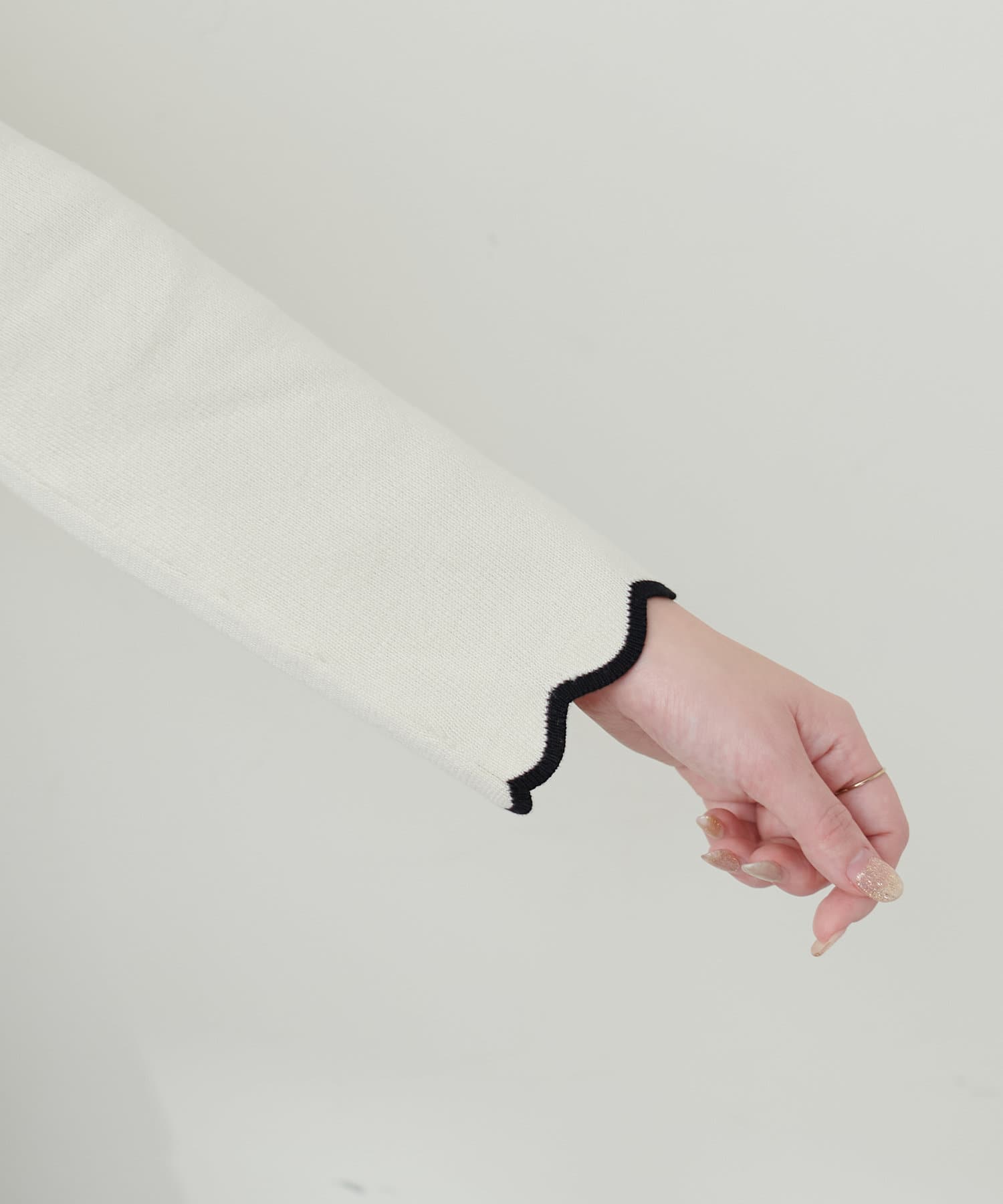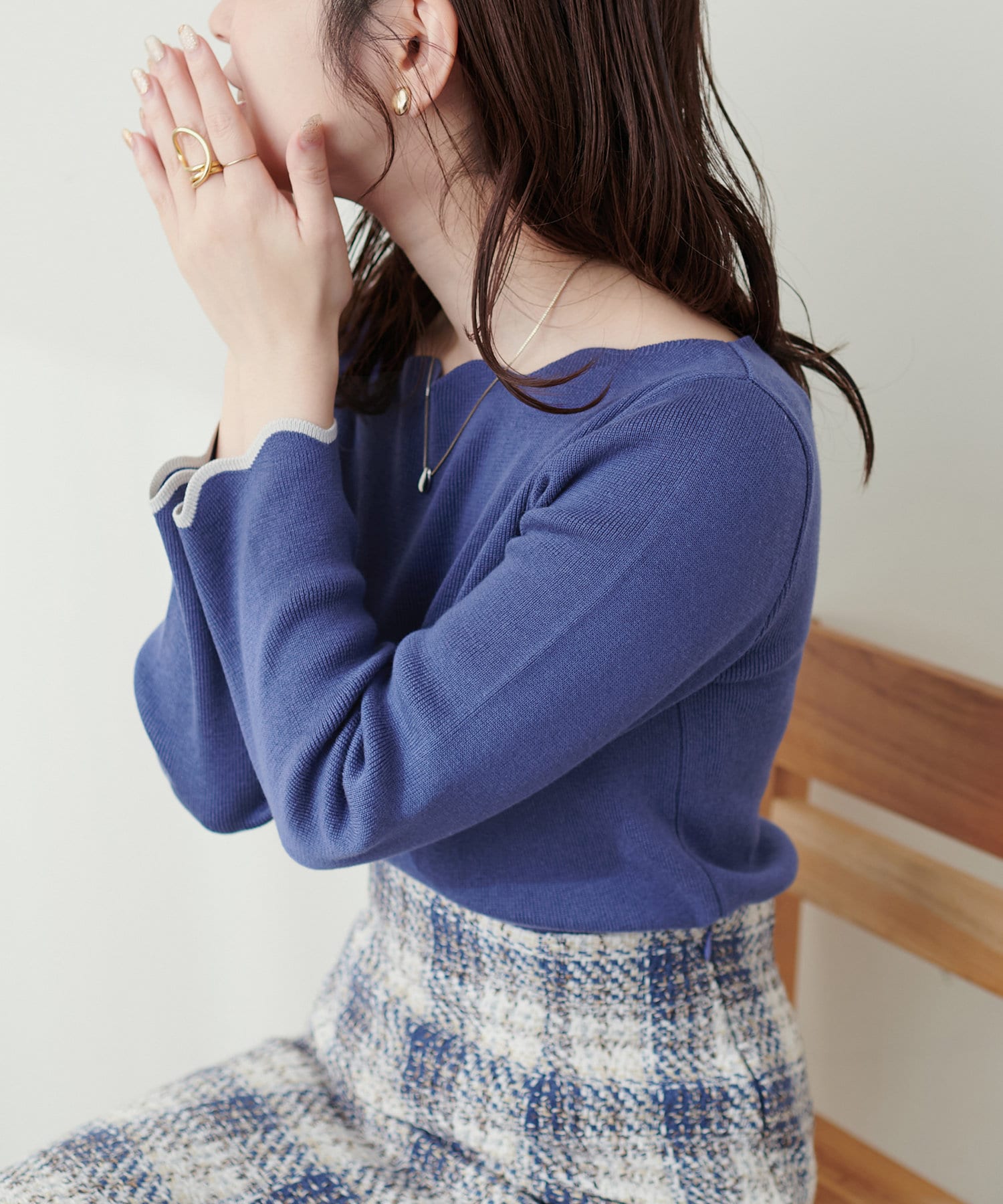 キャミワンピースやサロペットのインナーとしても、配色使いとスカラップデザインが