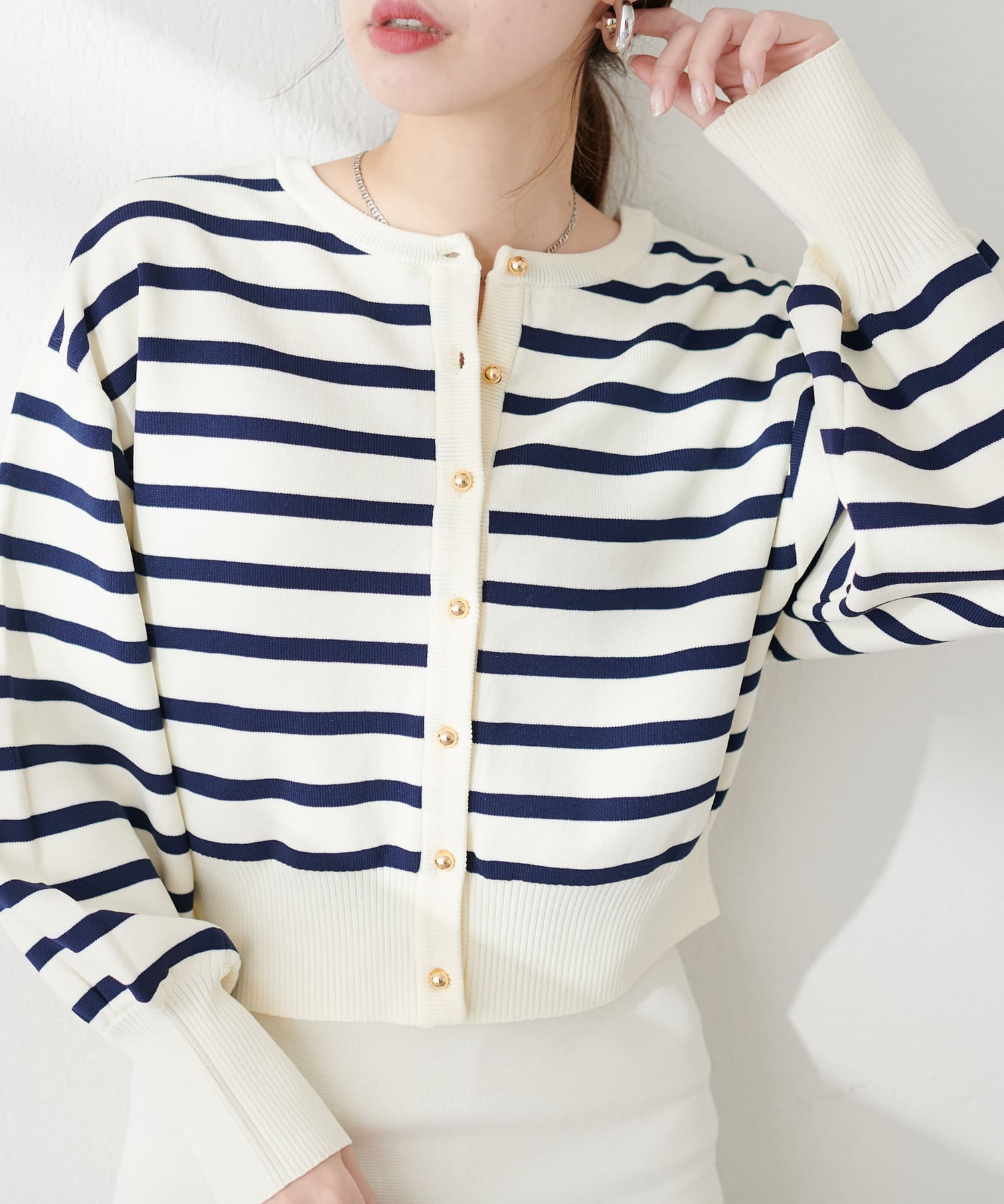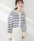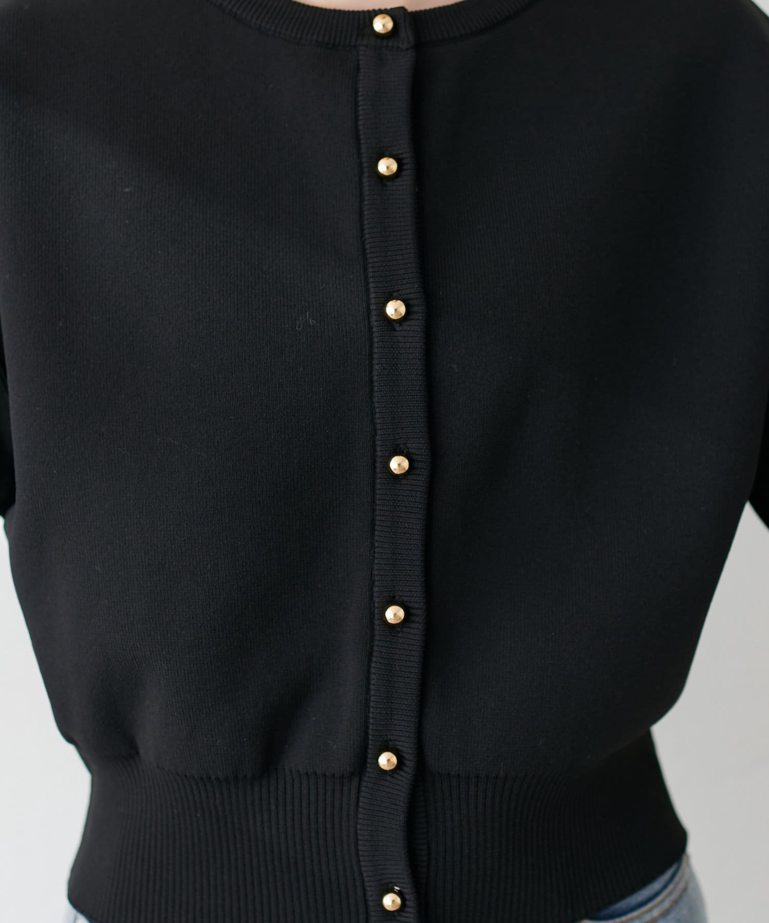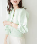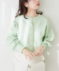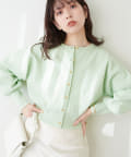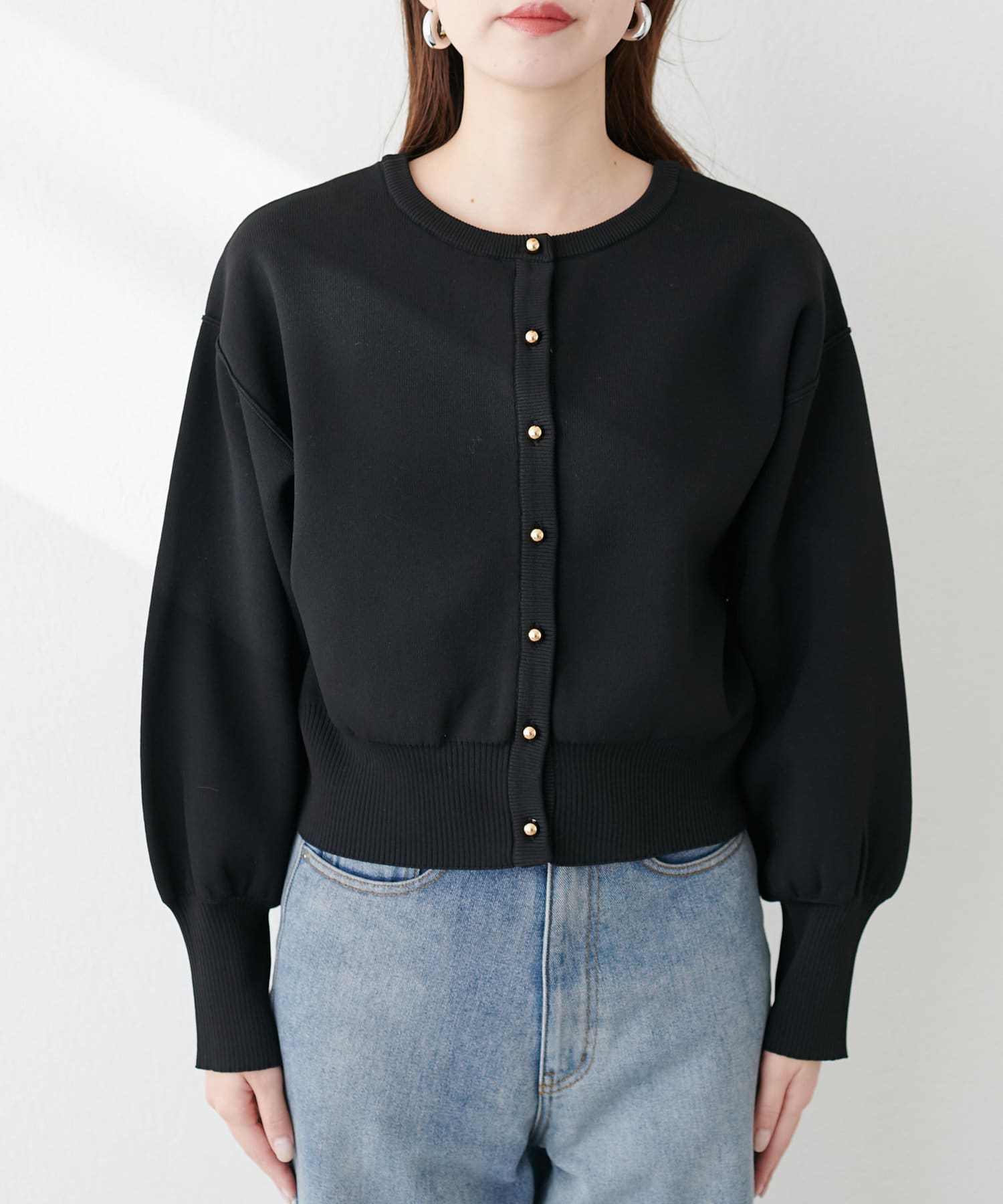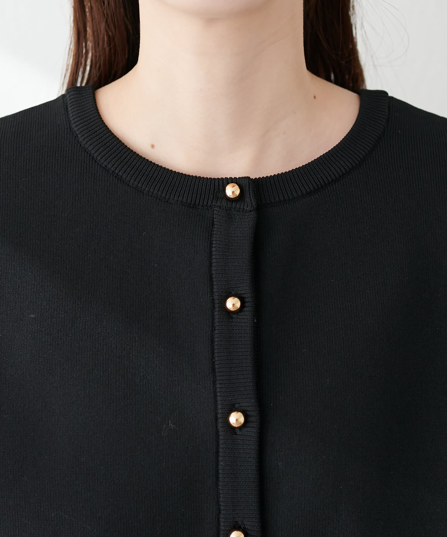 釦を閉じてプルオーバー風に着れば、タイトスカートと合わせてきれいめお仕事コーデに。