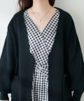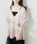 ゆるやかなVネックなので、フリルブラウスなどフロントにポイントのあるトップスと相性抜群。