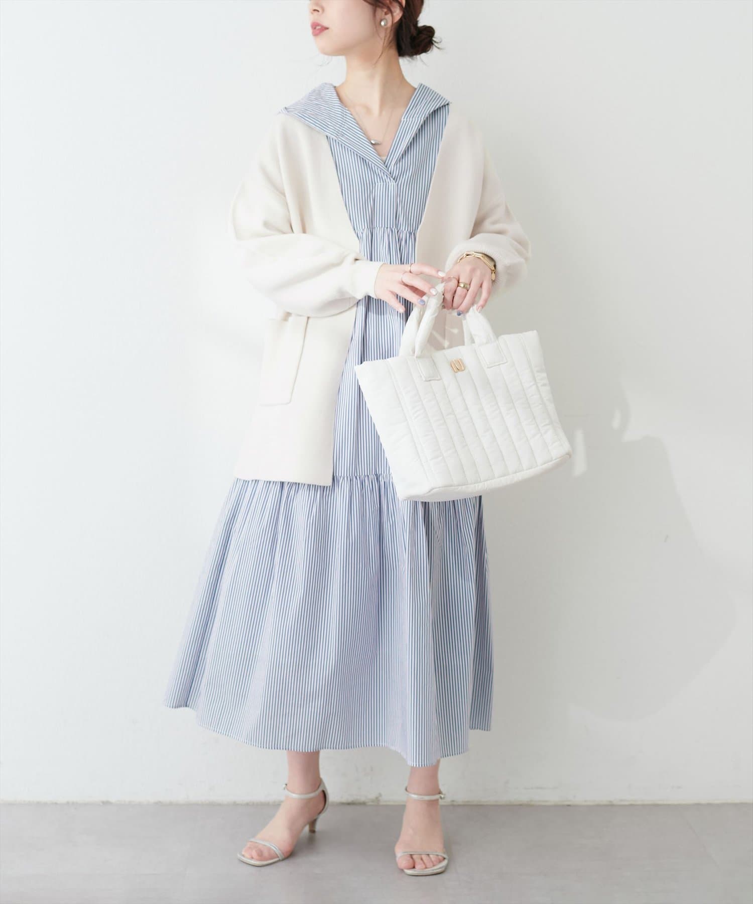 布帛のワンピースやブラウスに合わせると素材のバランスも◎