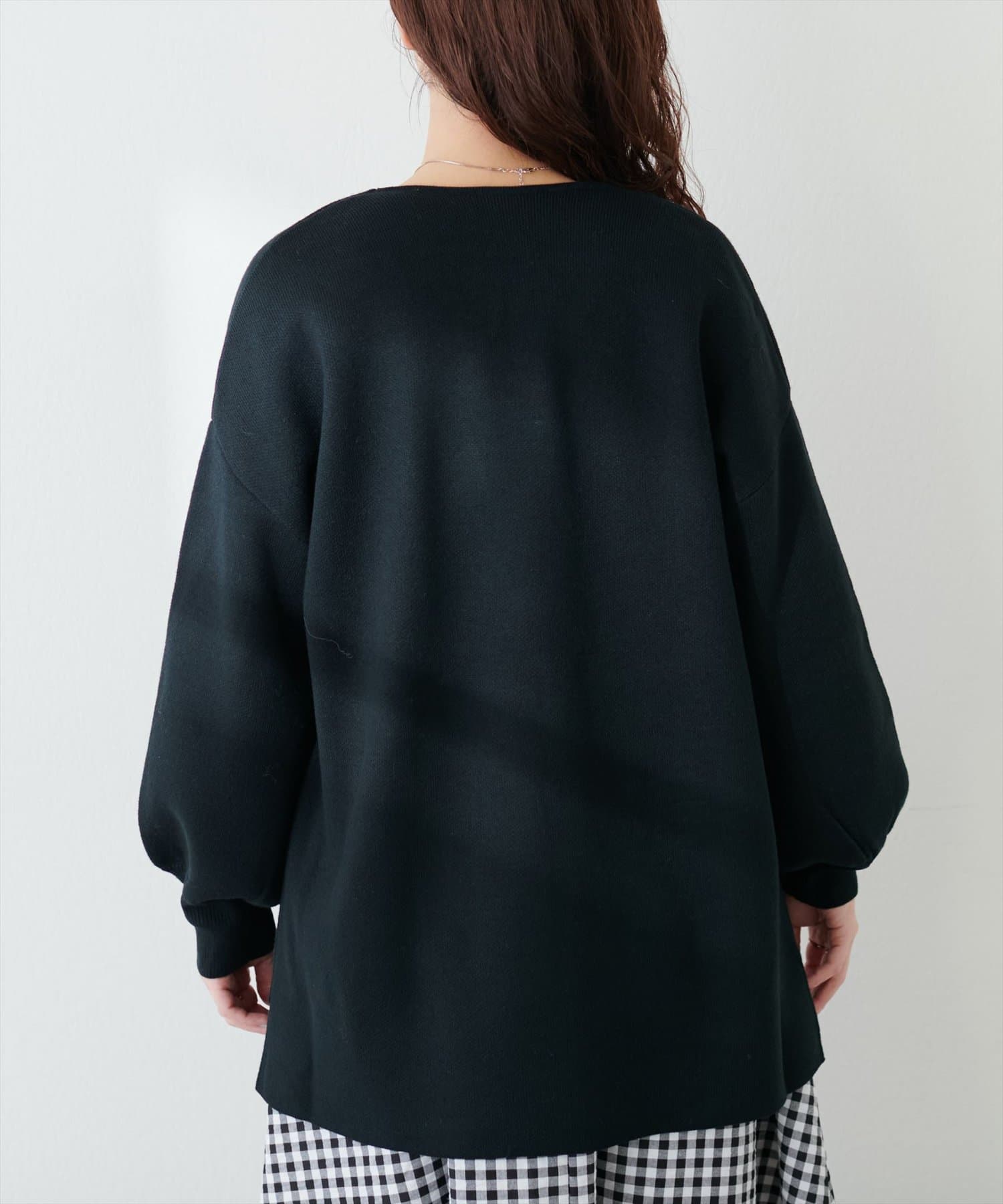 ドロップショルダーでお袖はほんわりとしたボリュームのあるデザインなので、肩周りが華奢な印象になります。