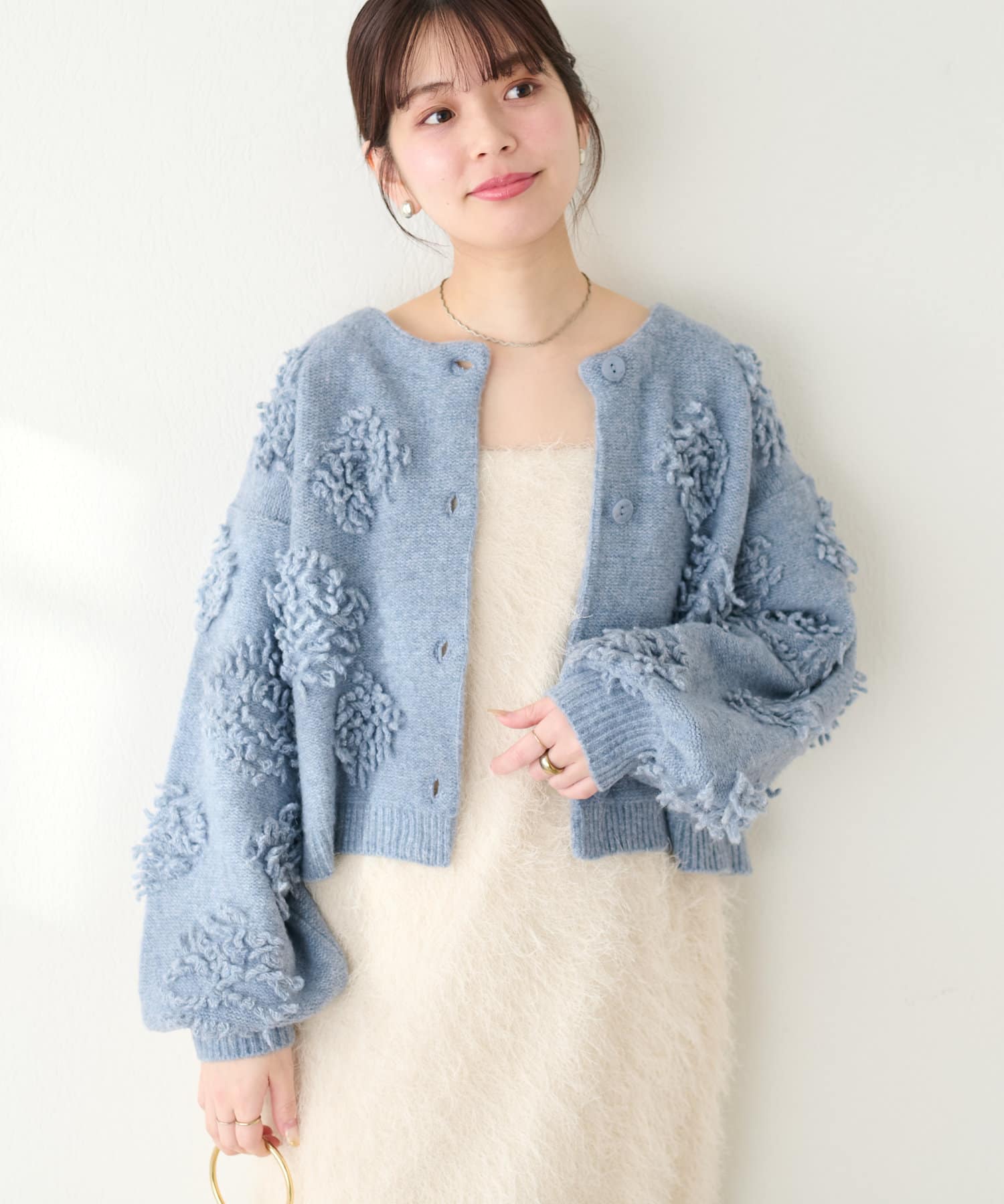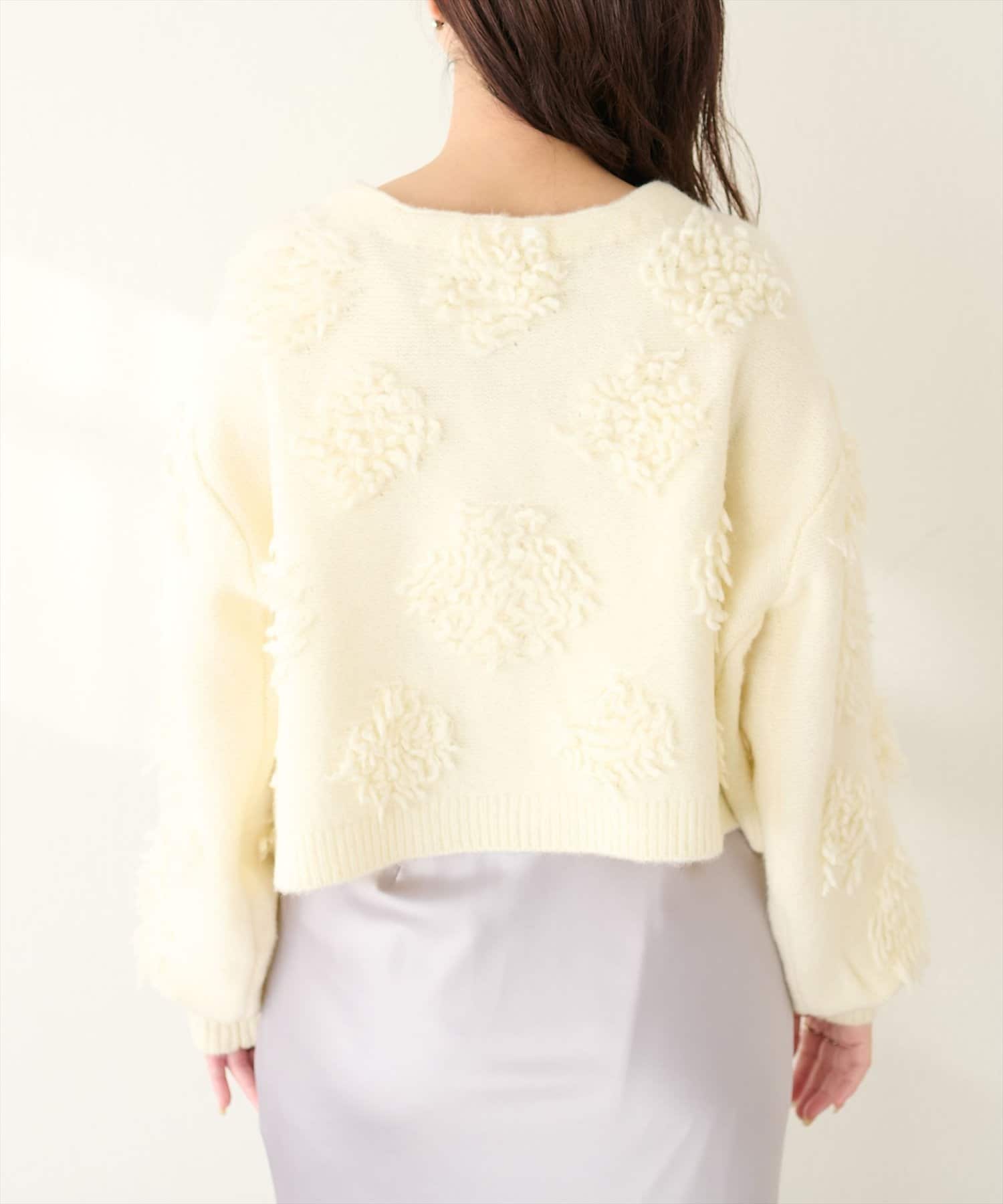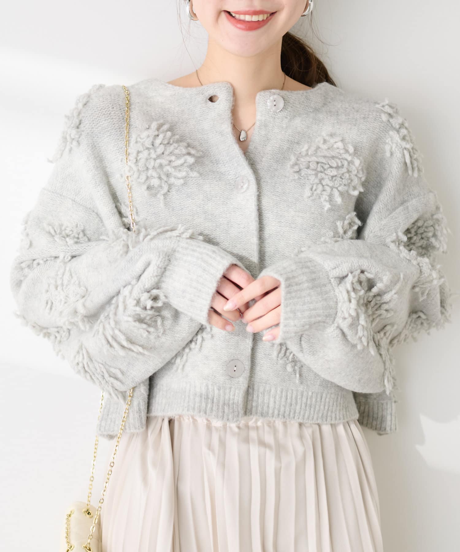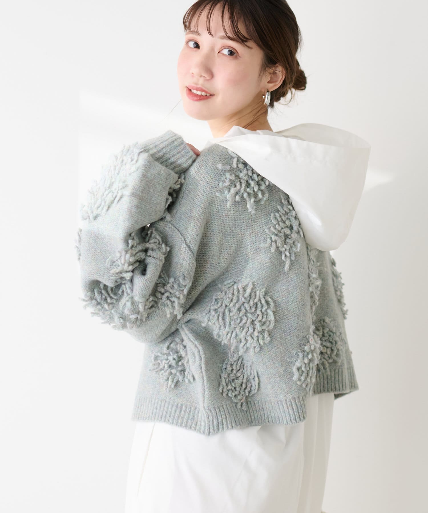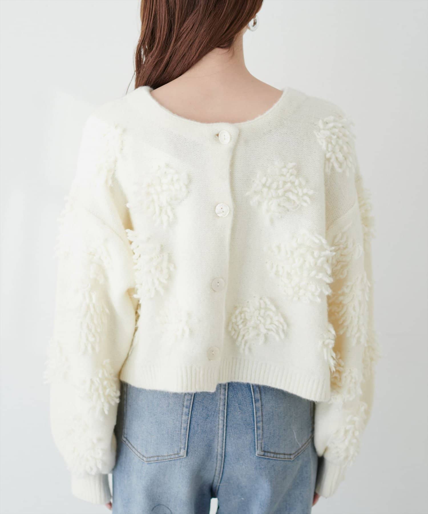 前後2WAYもしゃもしゃフラワーライクニットカーディガン