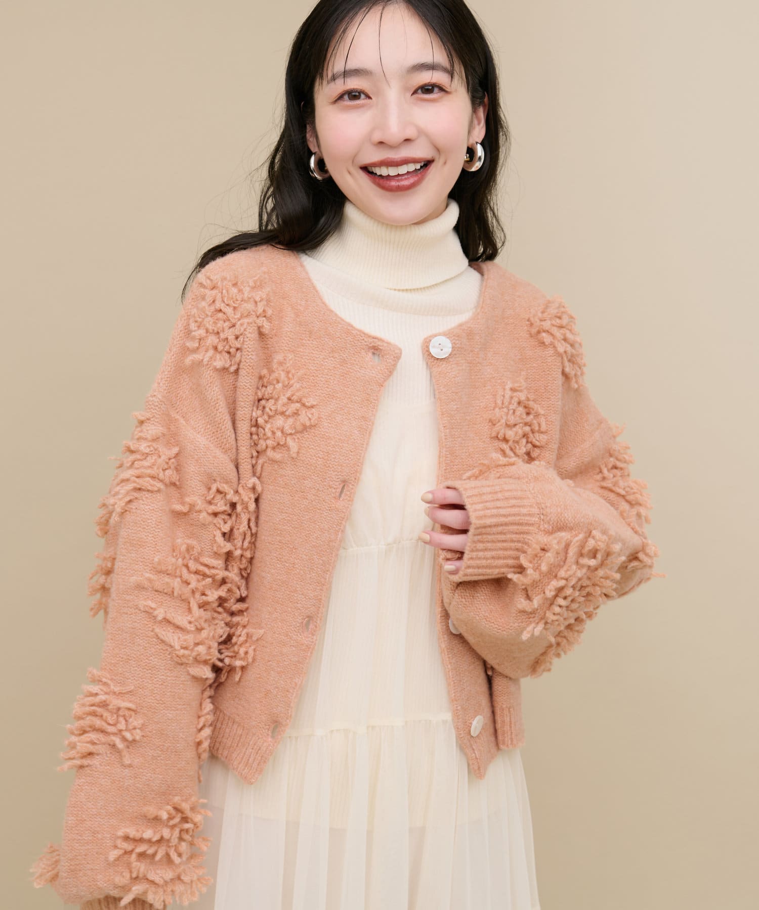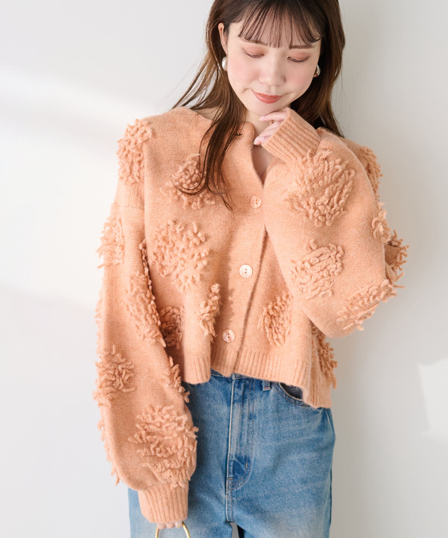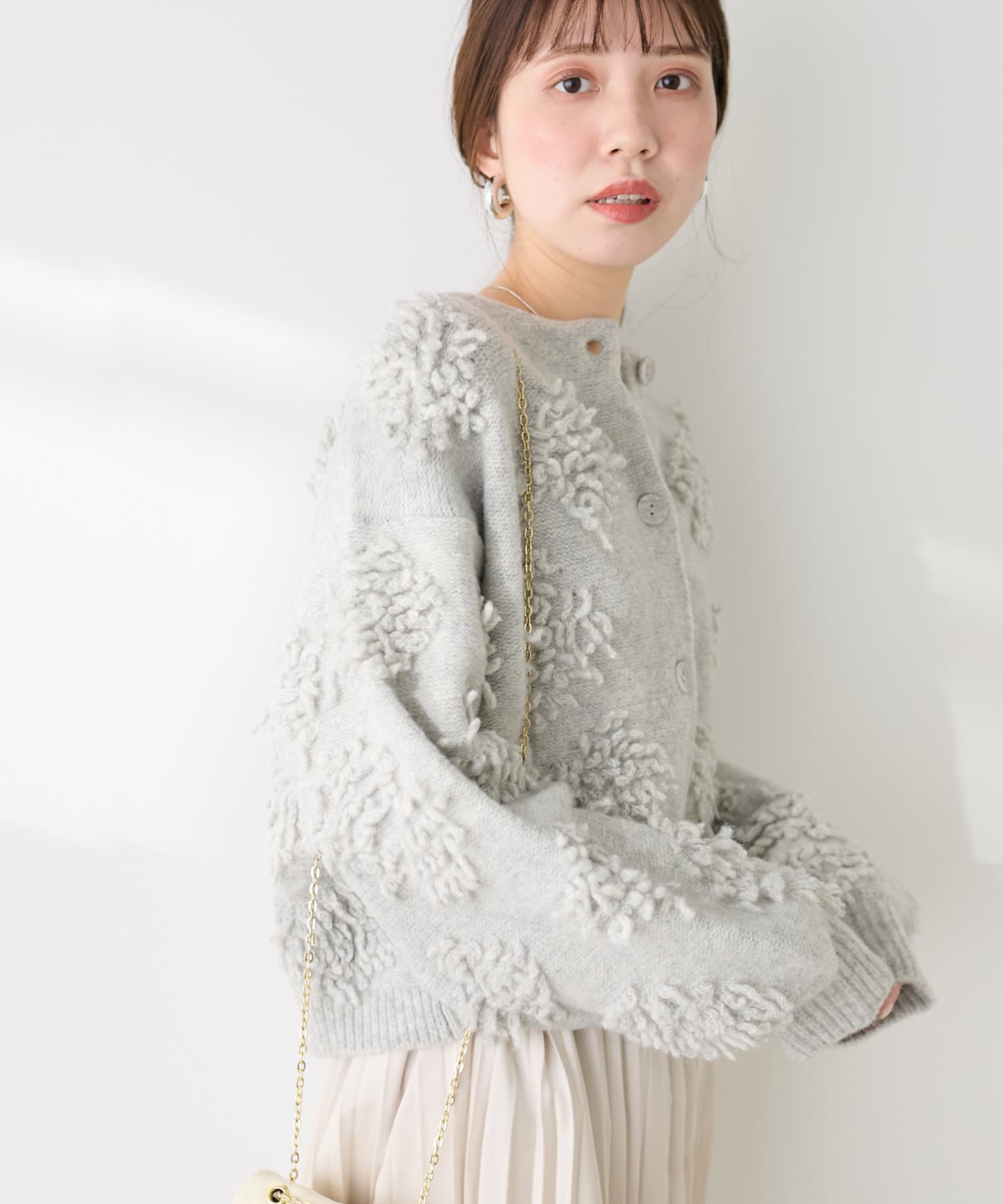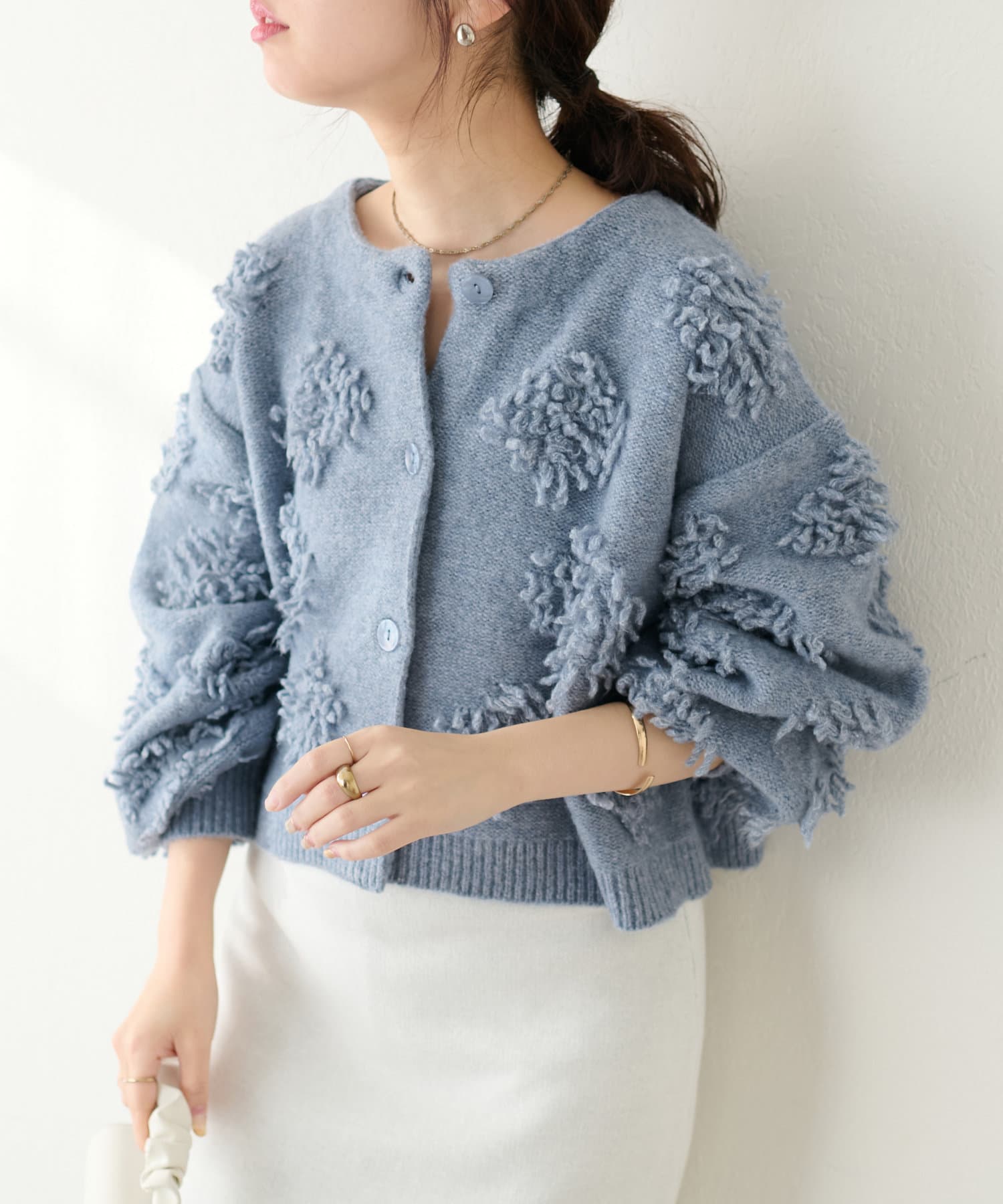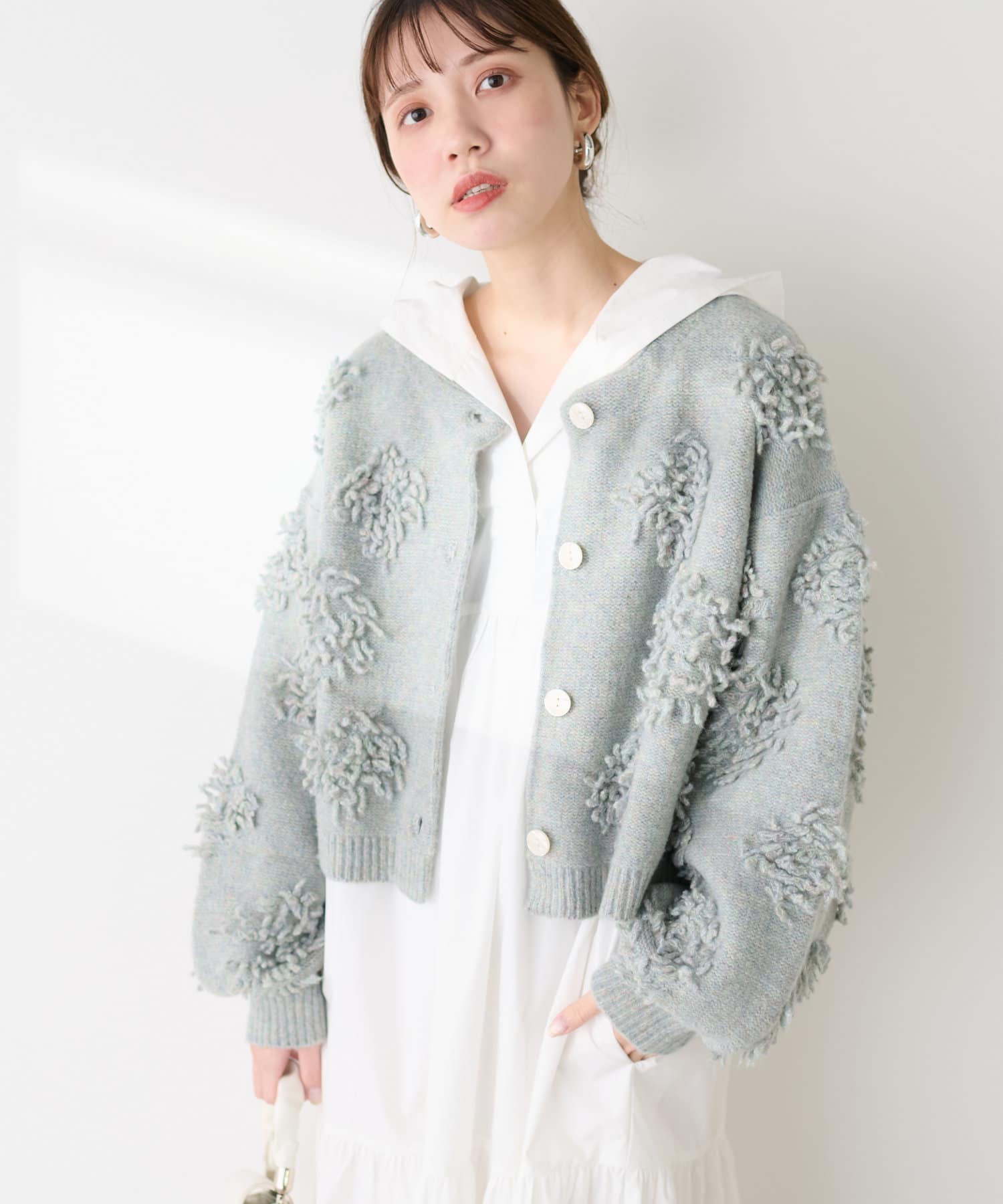 前後2WAYもしゃもしゃフラワーライクニットカーディガン