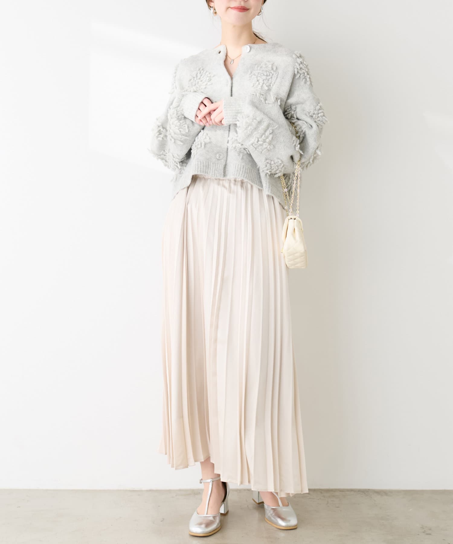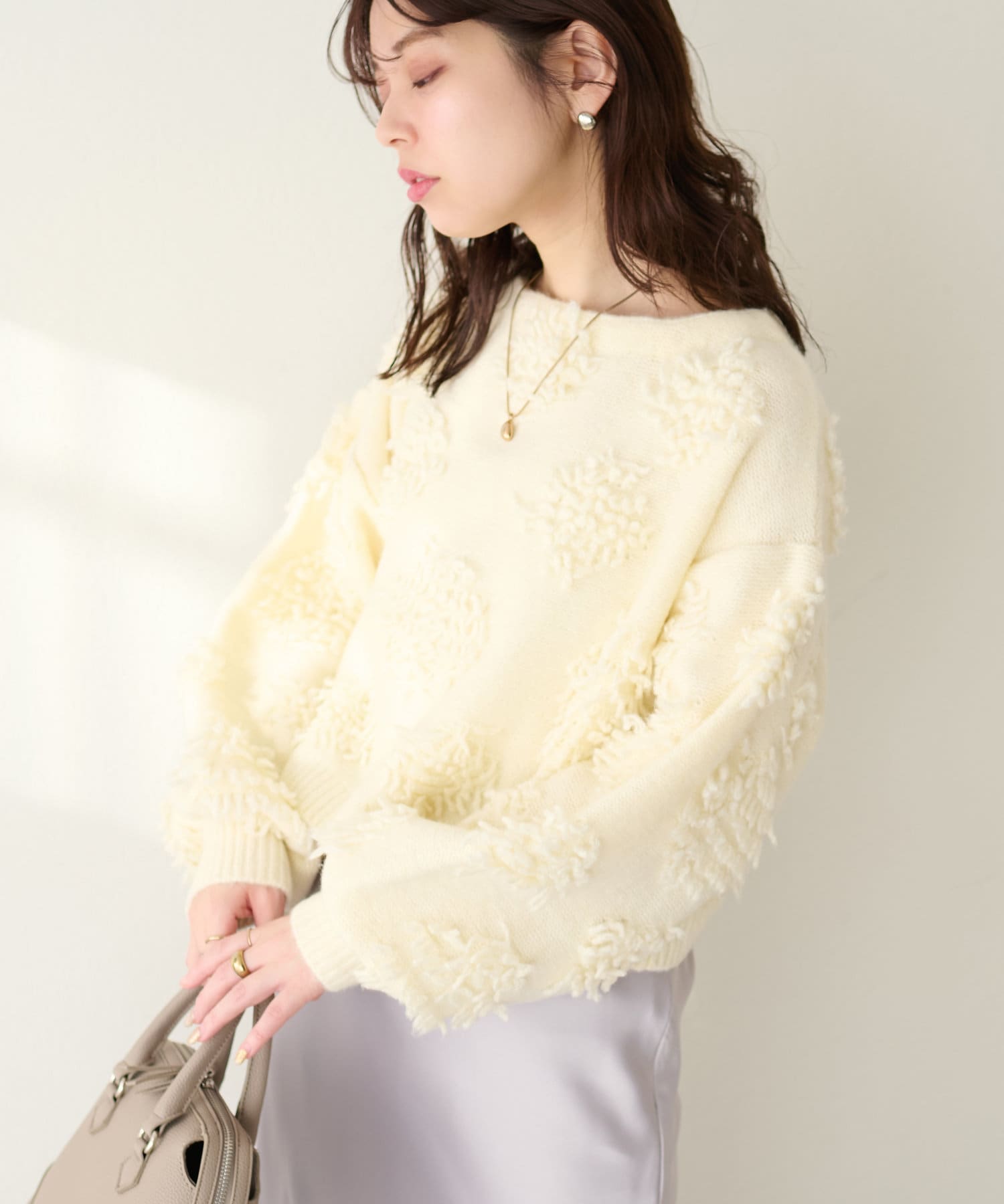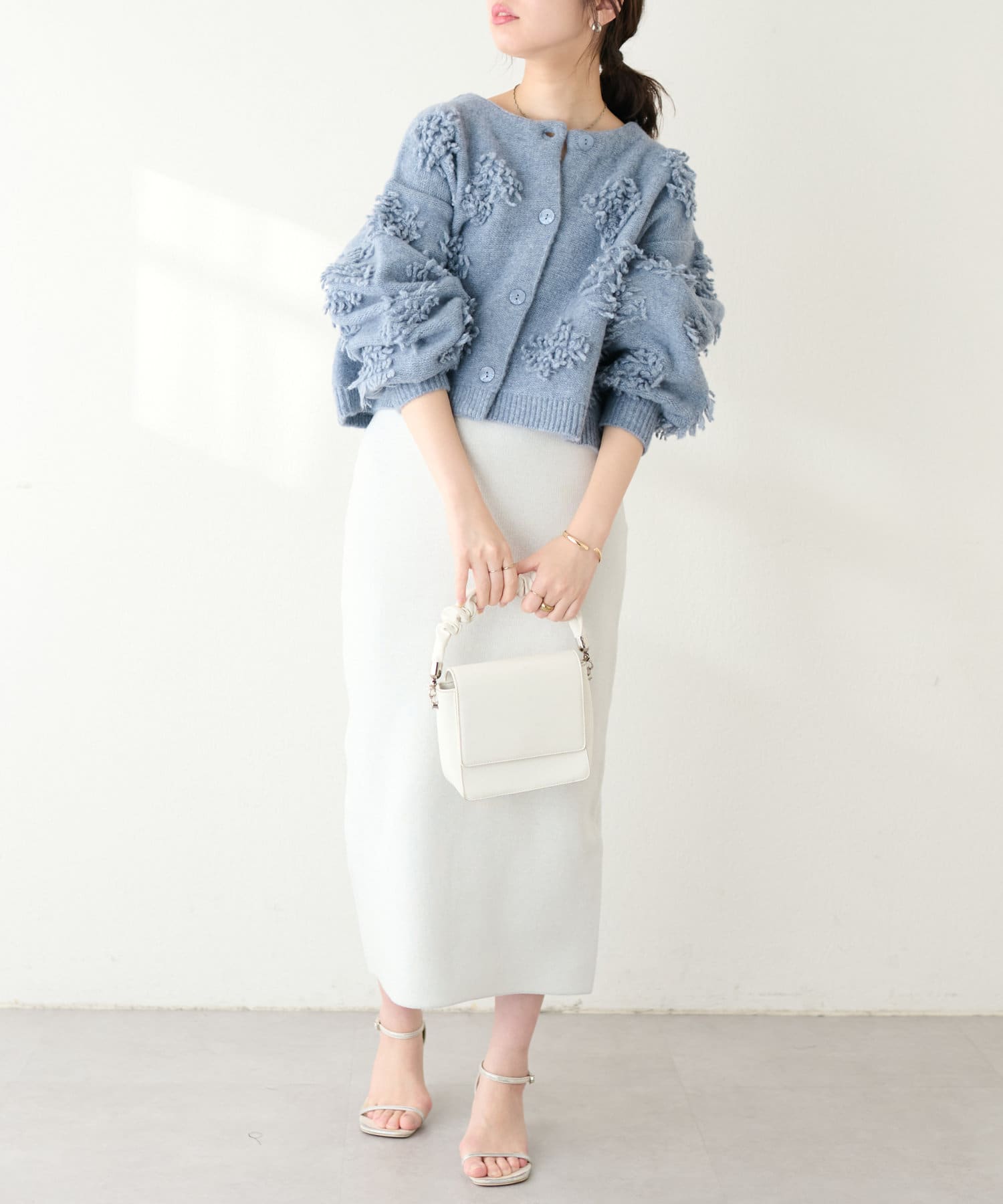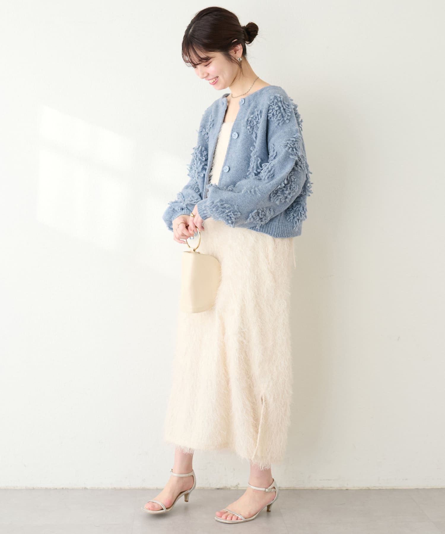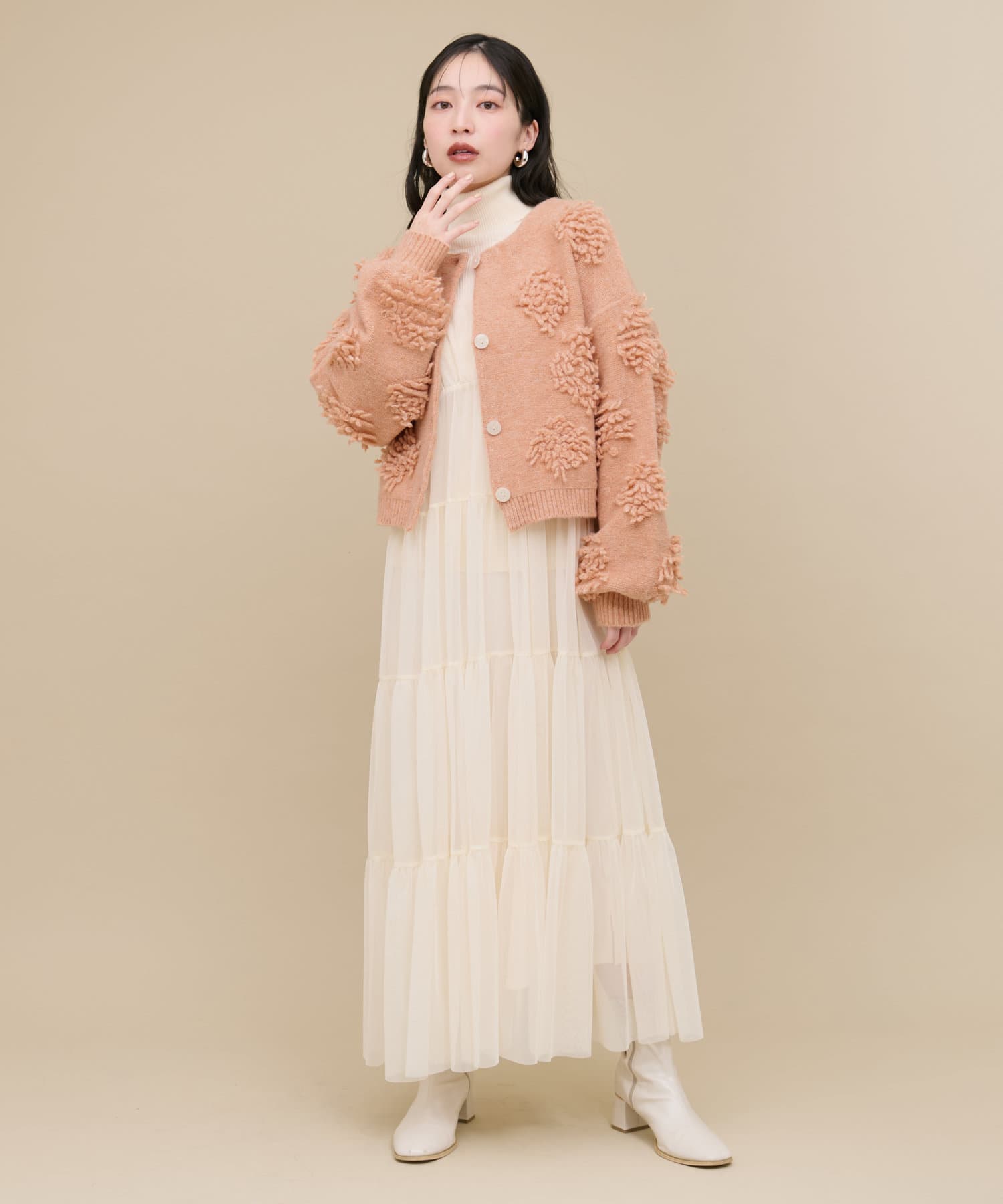 前後2WAYもしゃもしゃフラワーライクニットカーディガン
