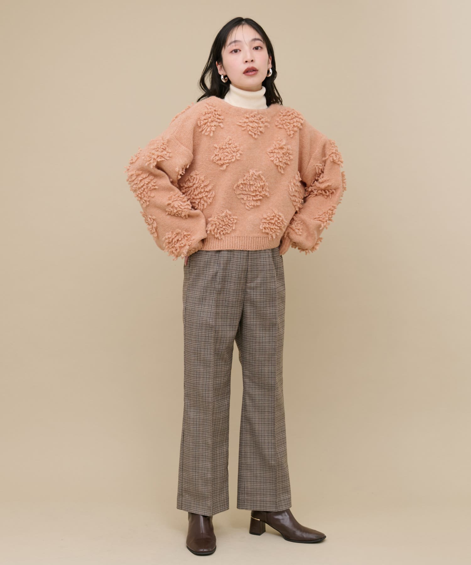 真冬はタートルネックニットを覗かせると暖かく大人可愛いコーデにきまります。