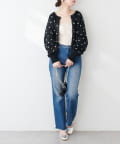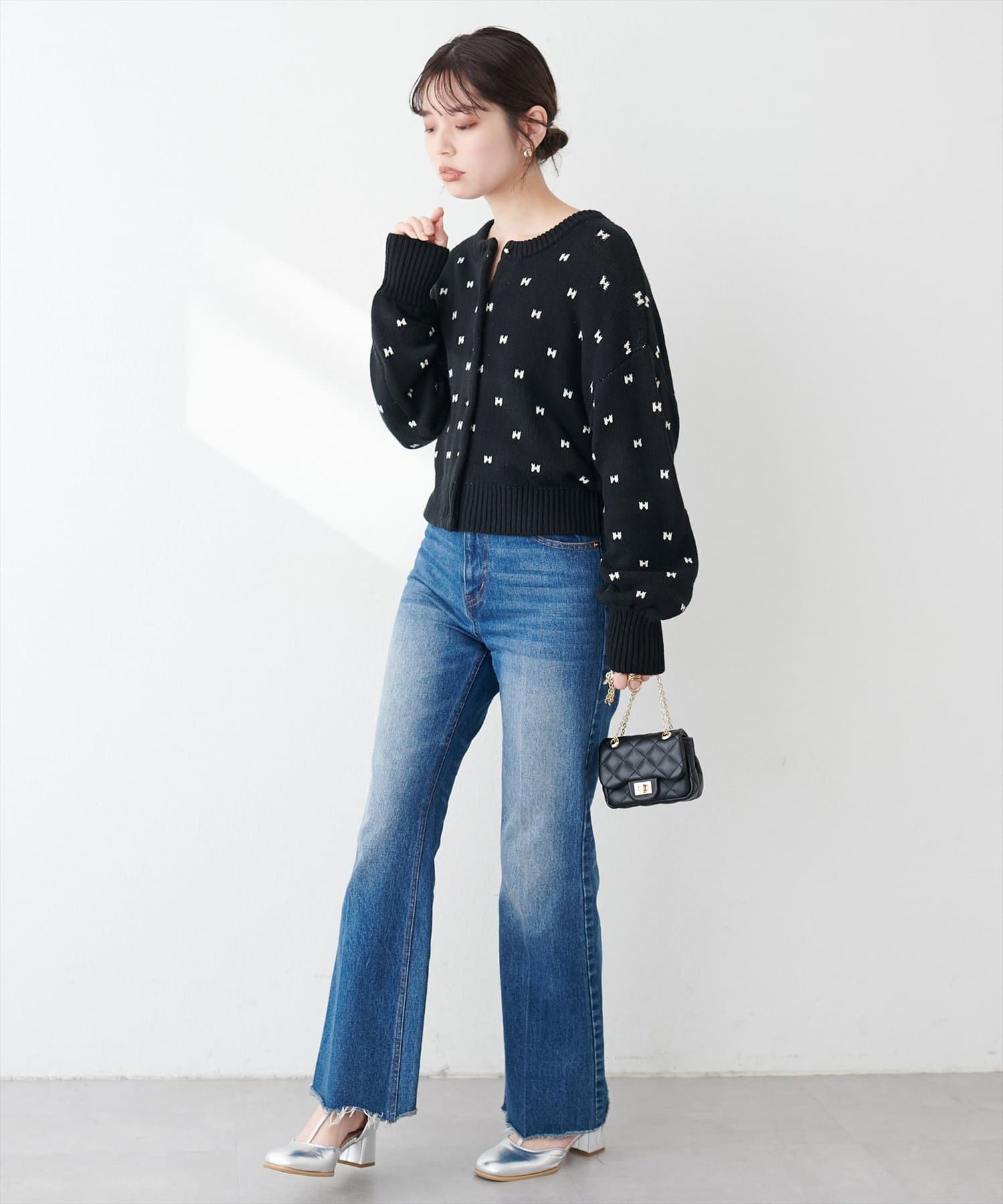 レディなフレアスカートはもちろん、シンプルなデニム合わせも華やかにきまるのでおすすめです。