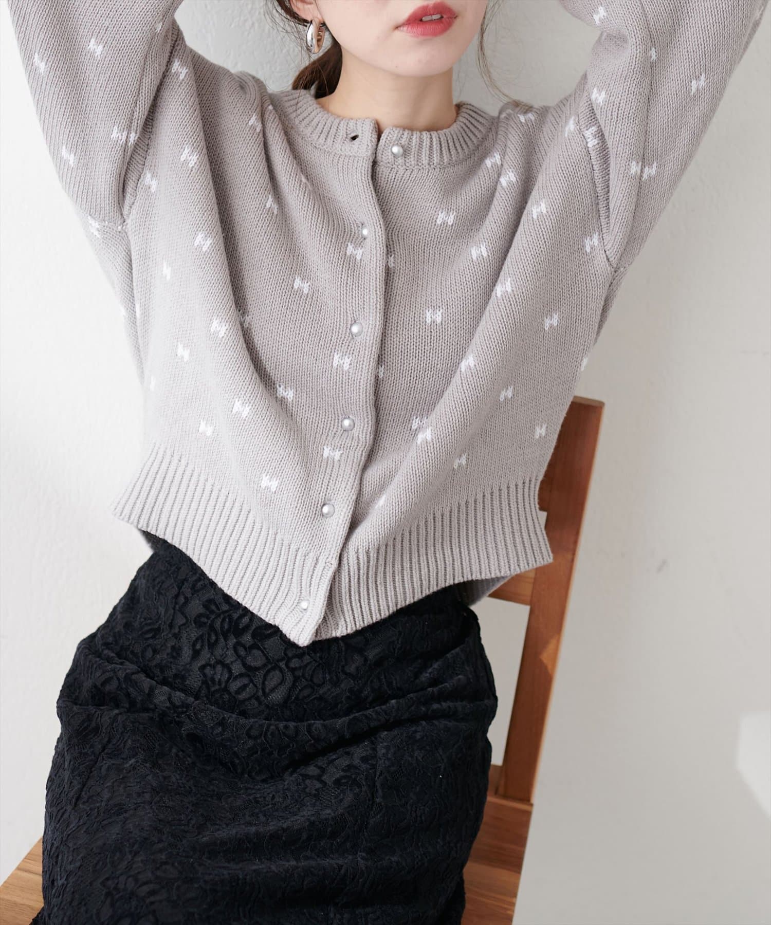 リボンハートジャガードところんとした釦がいつものコーディネートを一気にブラッシュアップしてくれます。