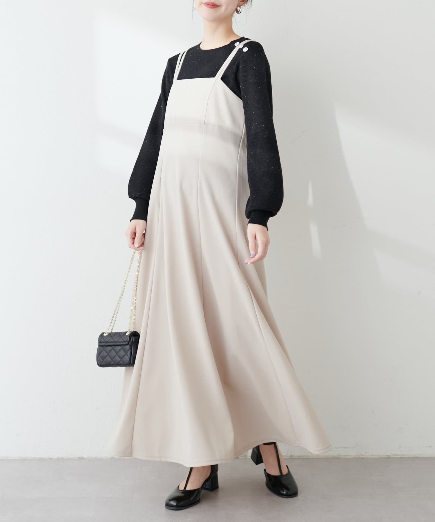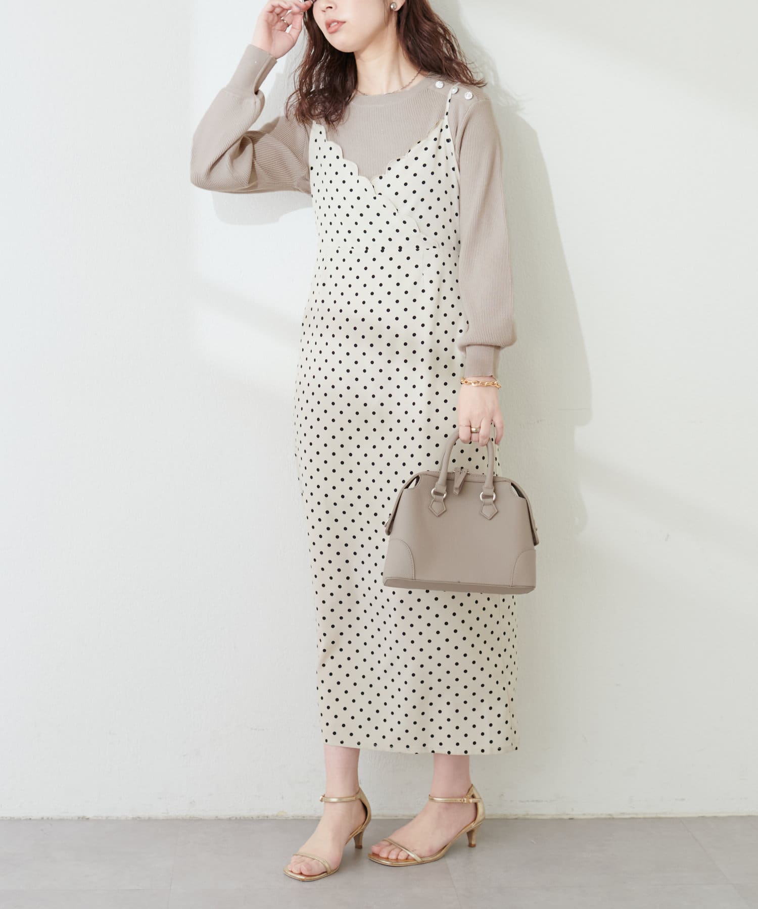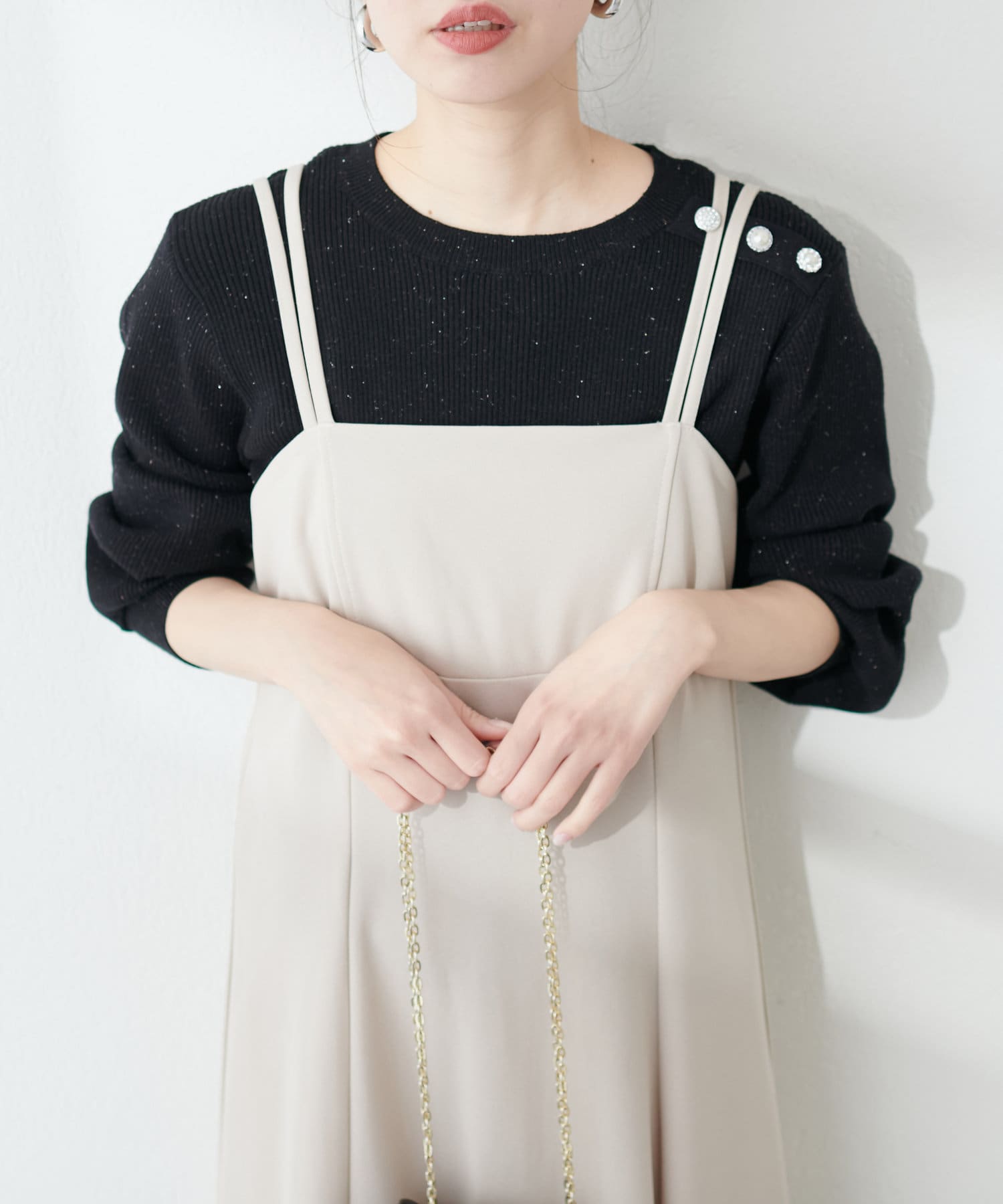1枚でお召し頂くのはもちろん、キャミワンピースやジャンパースカートとのレイヤードスタイルも、繊細な釦が映えるのでおすすめです。