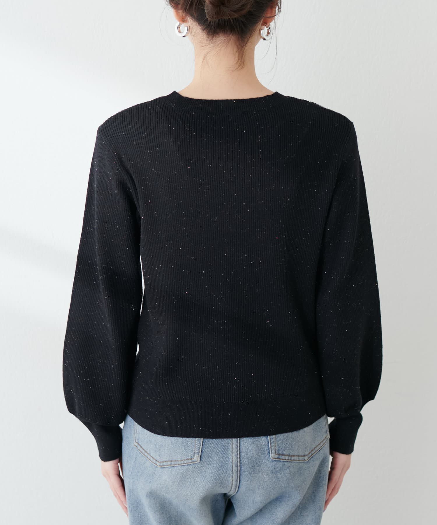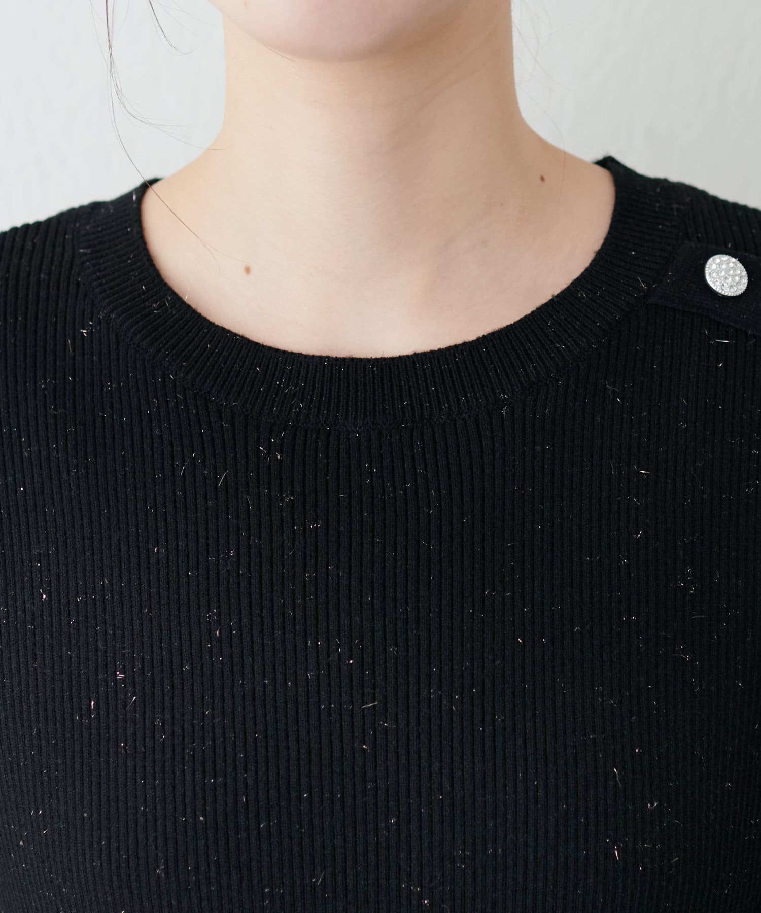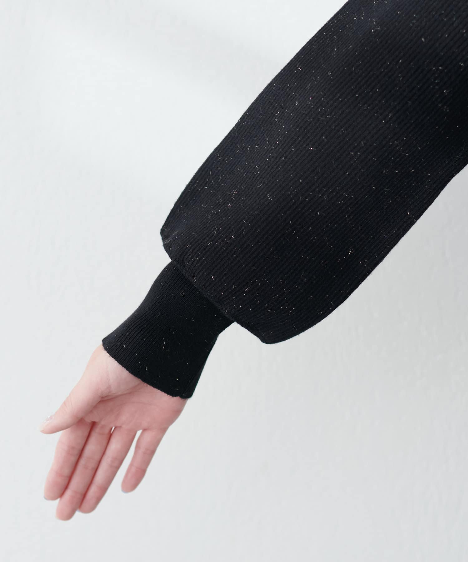 存在感のあるラメフィルムが織り込まれたトレンド感のあるリブニット。