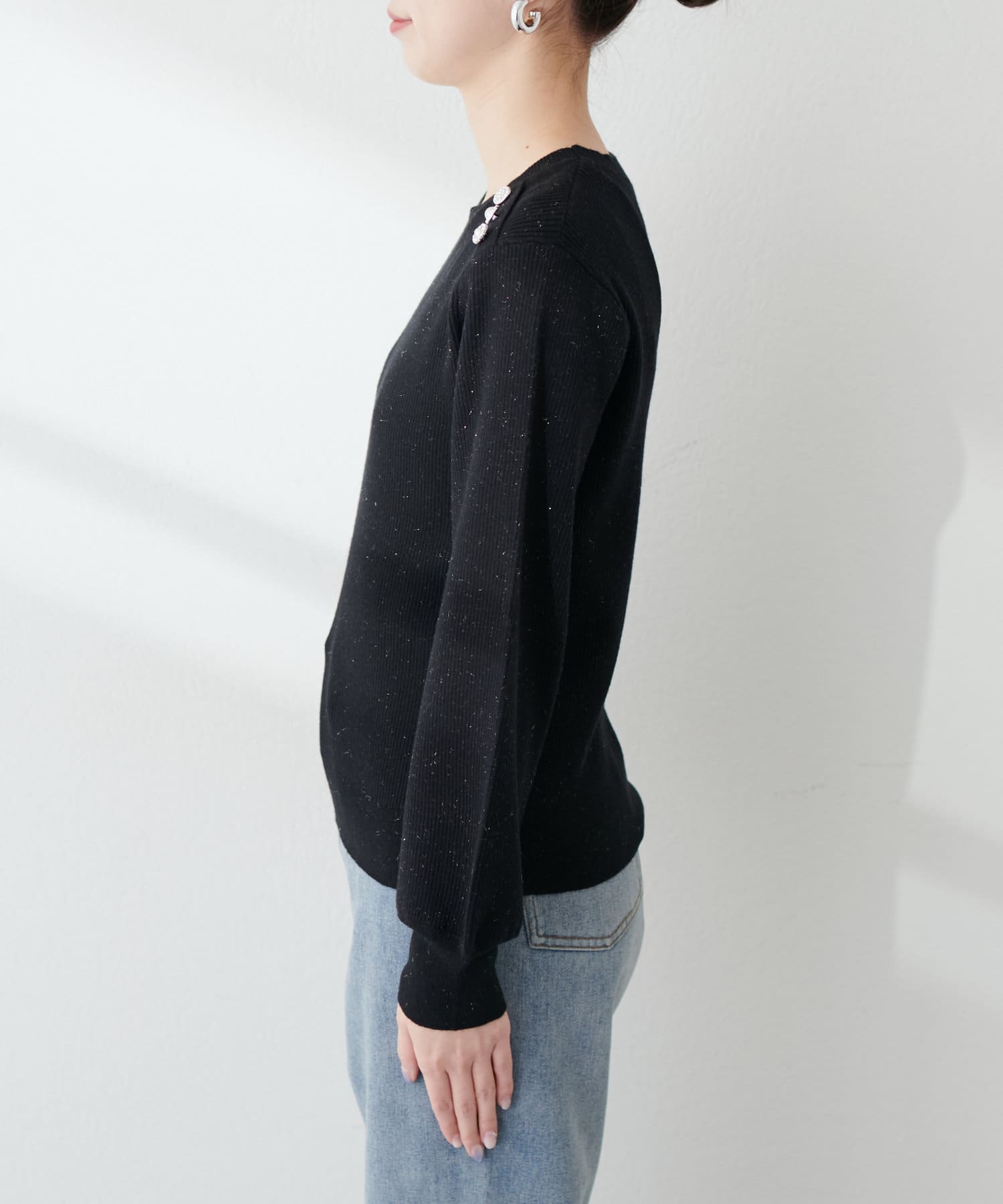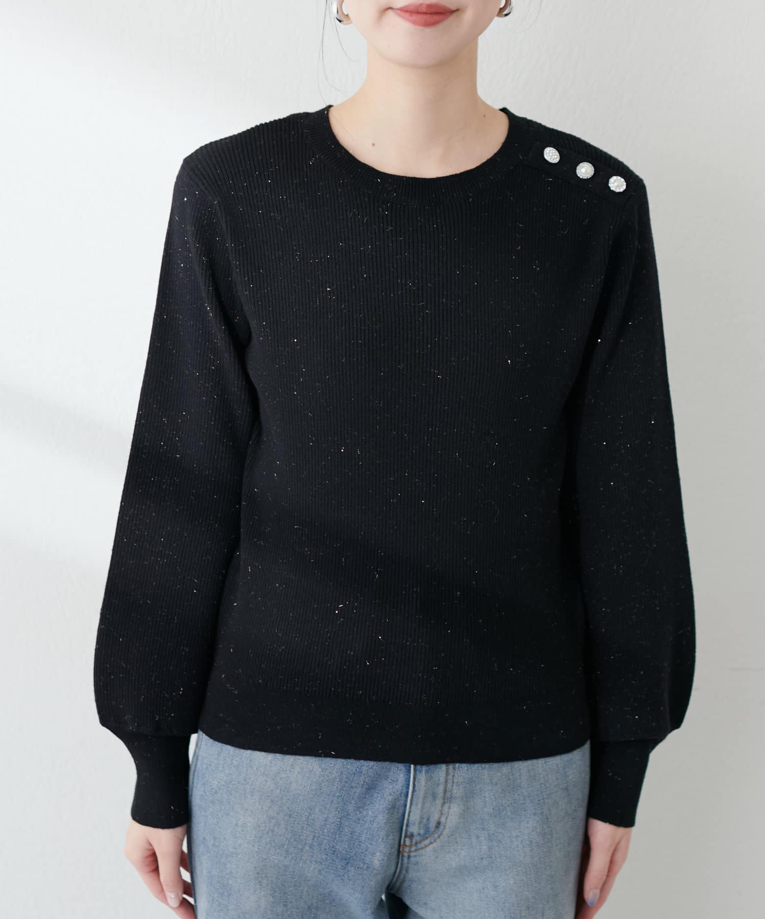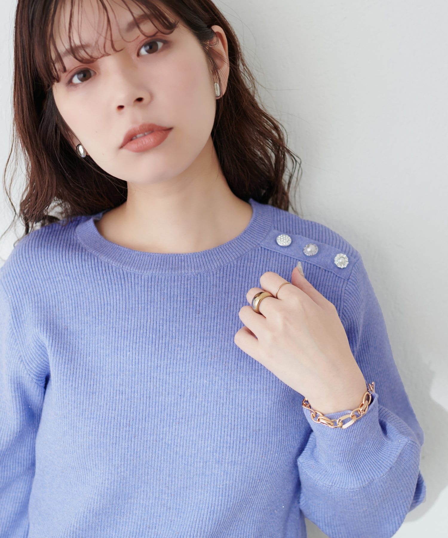 存在感のあるラメフィルムが織り込まれたトレンド感のあるリブニット。