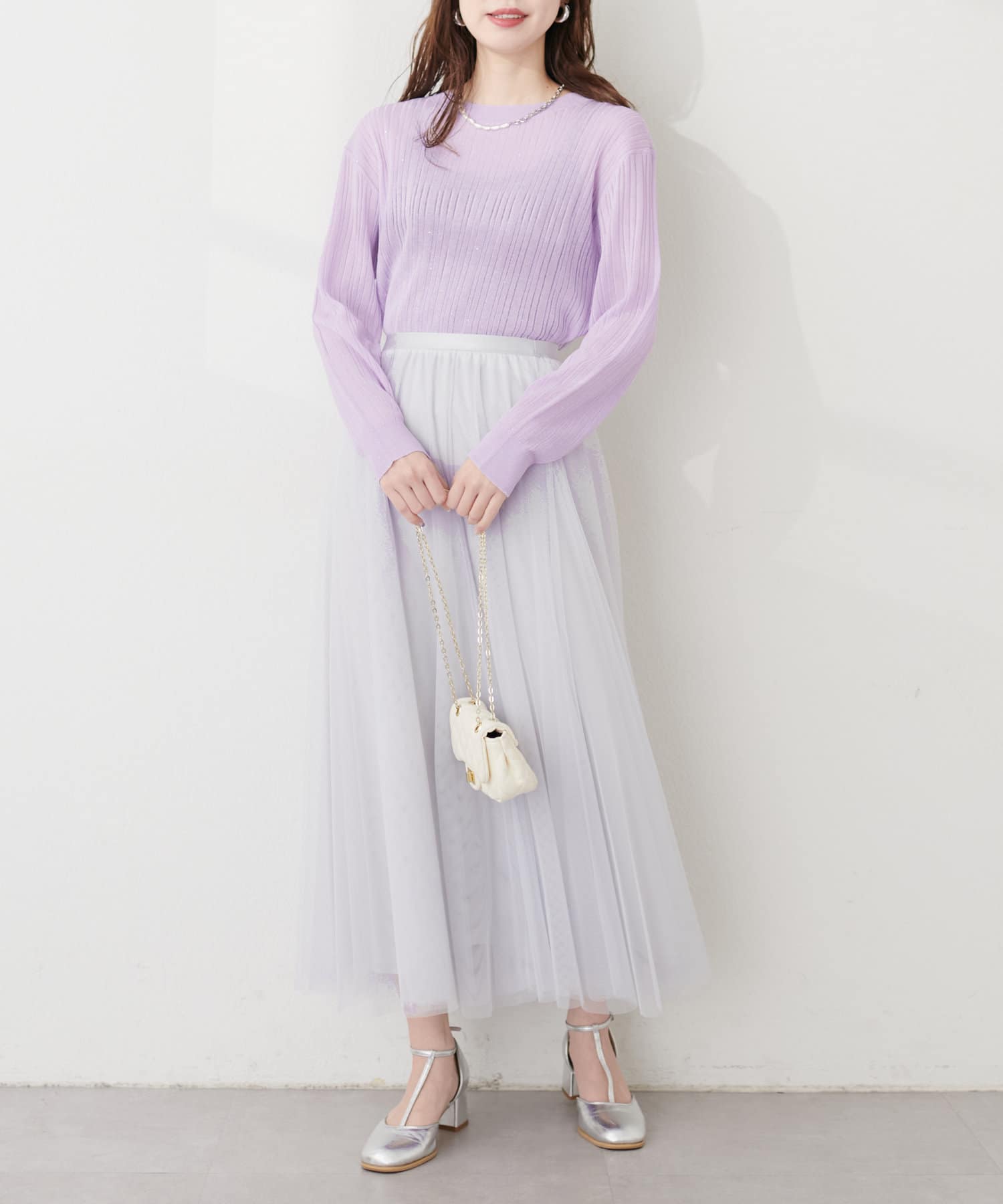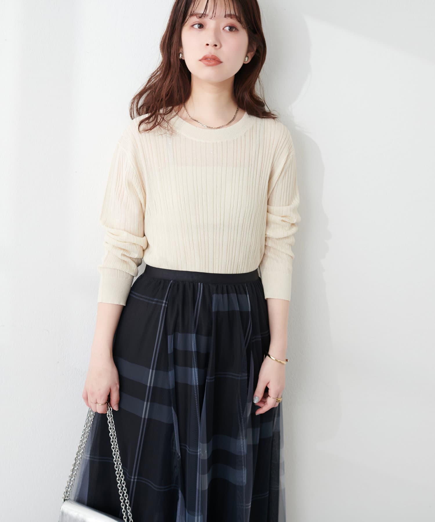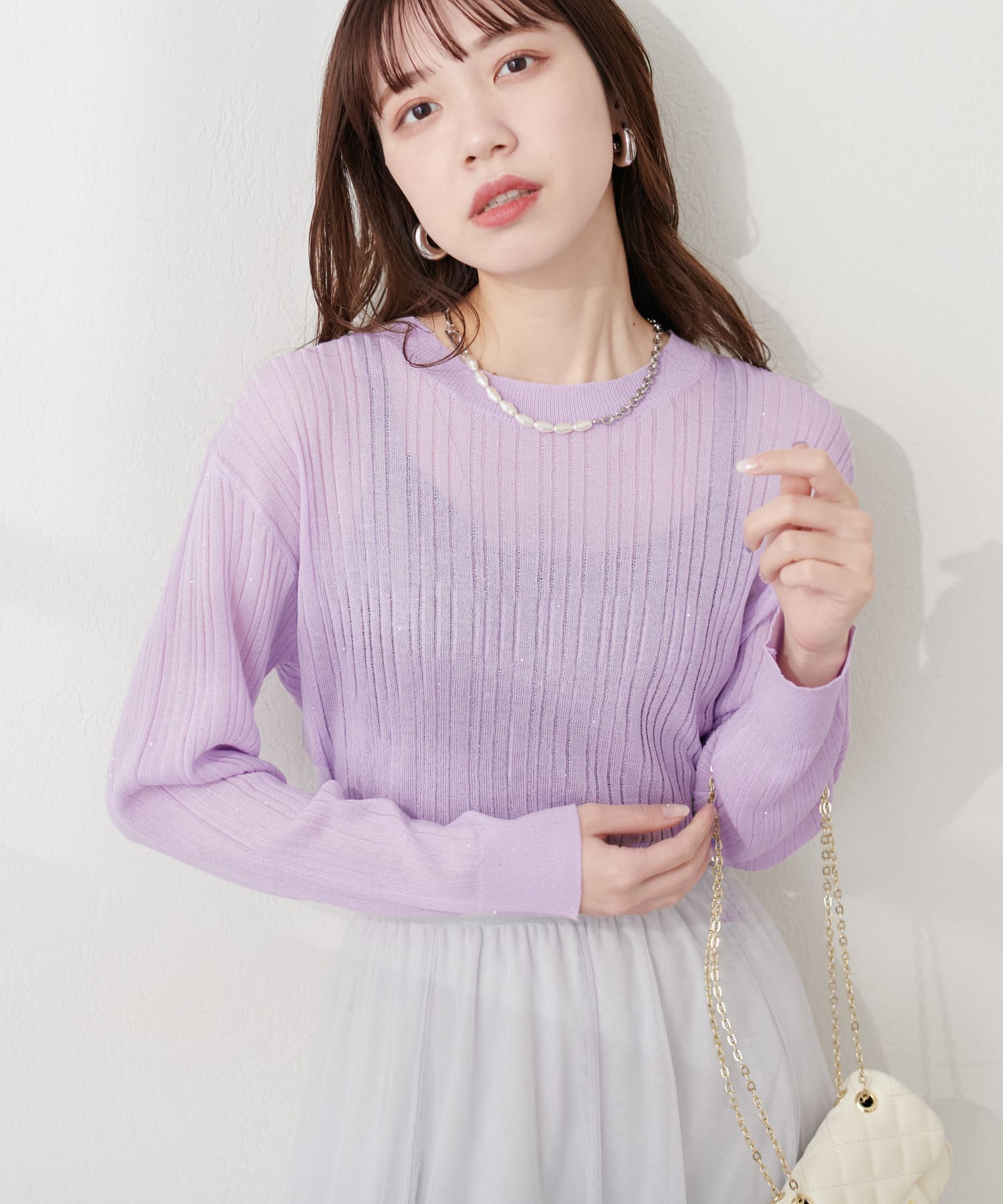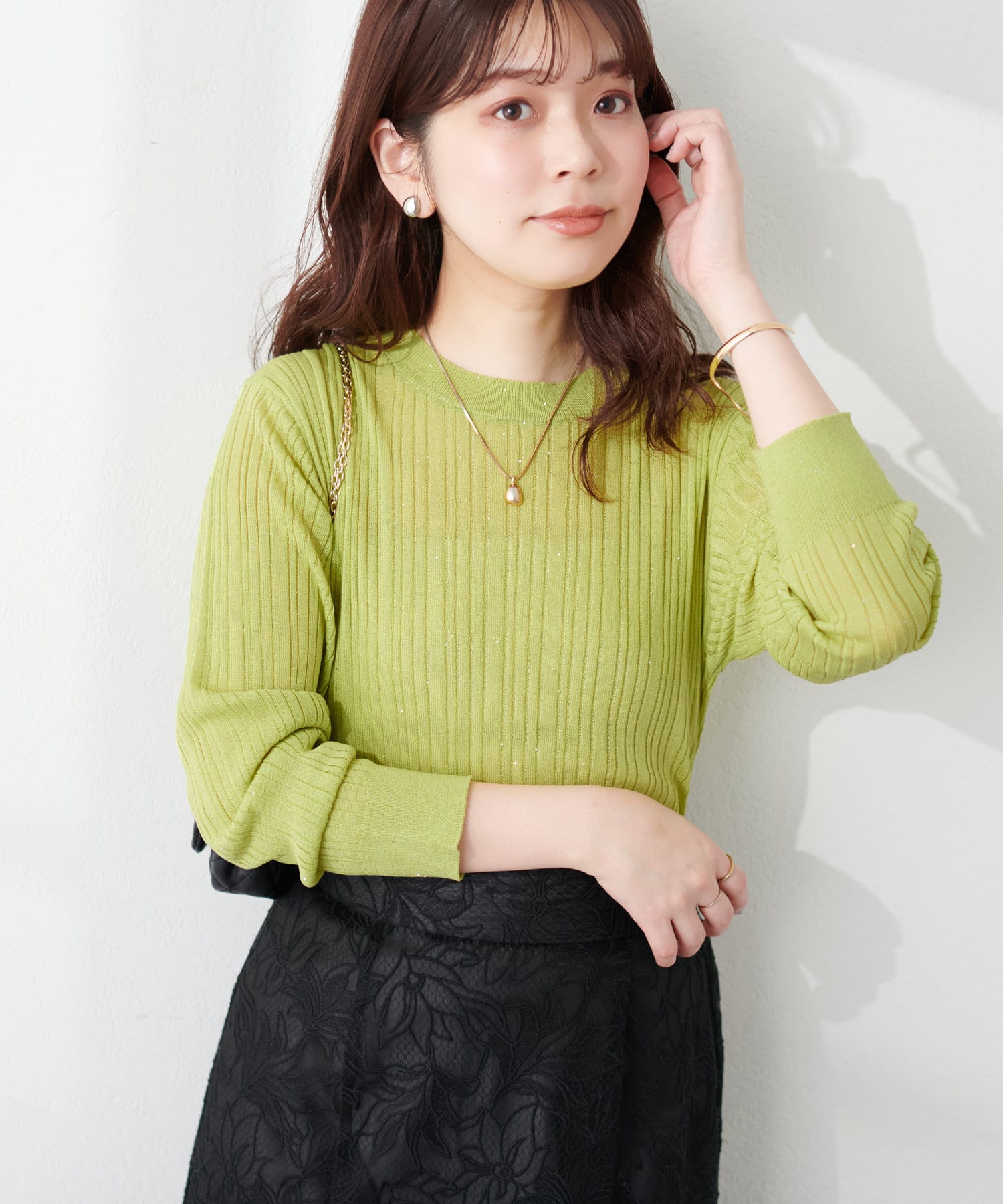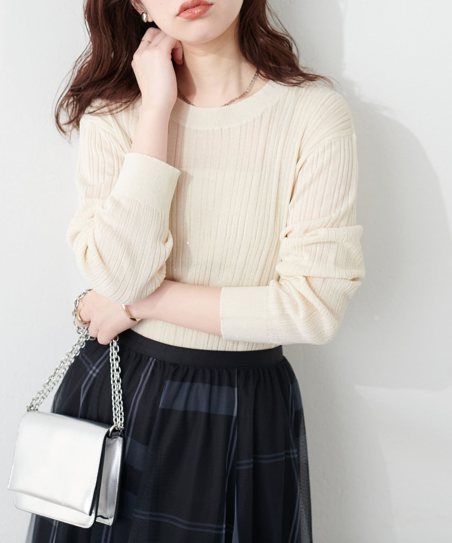 きらきらとしたシャイニー感が目を惹くリブニット