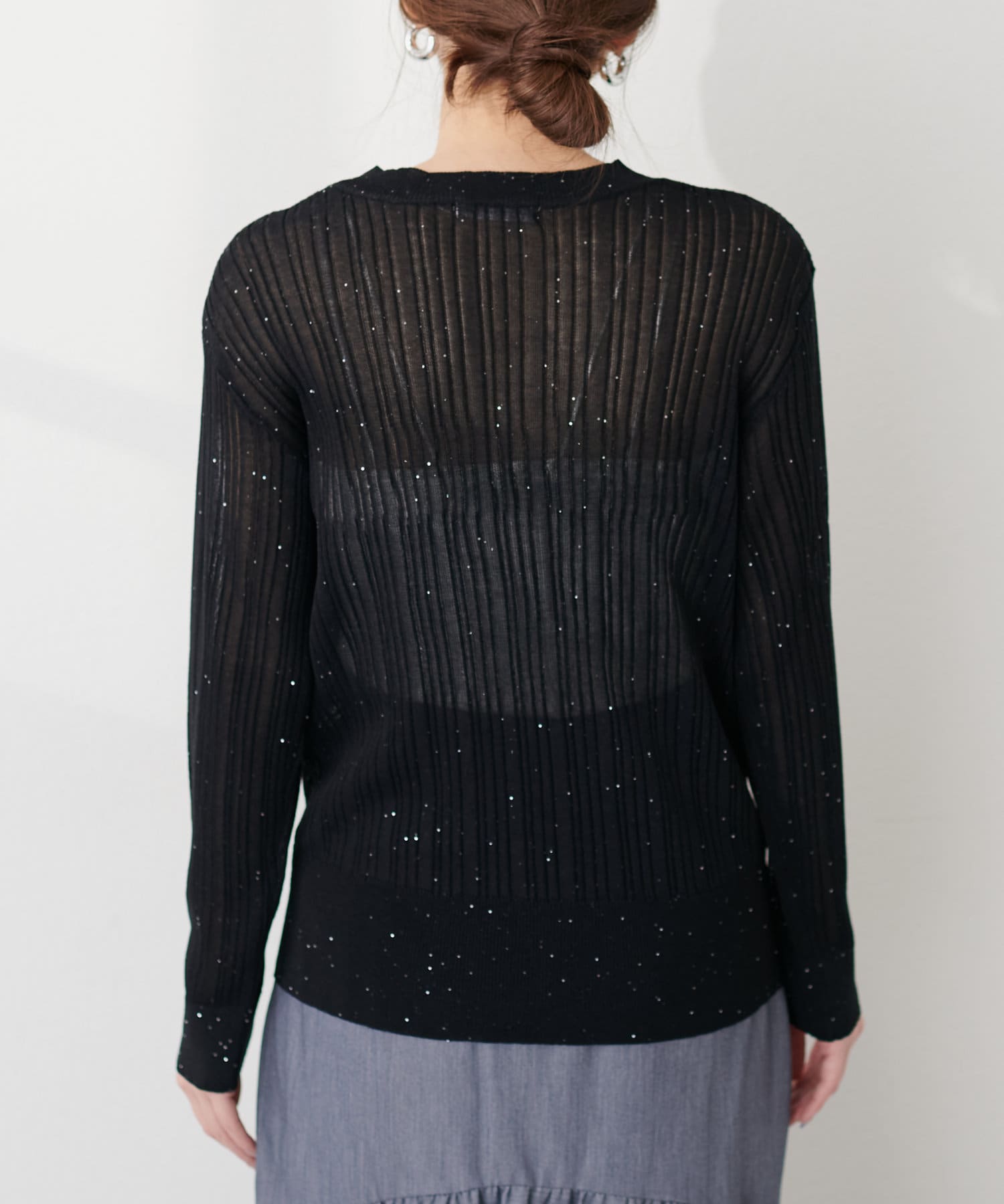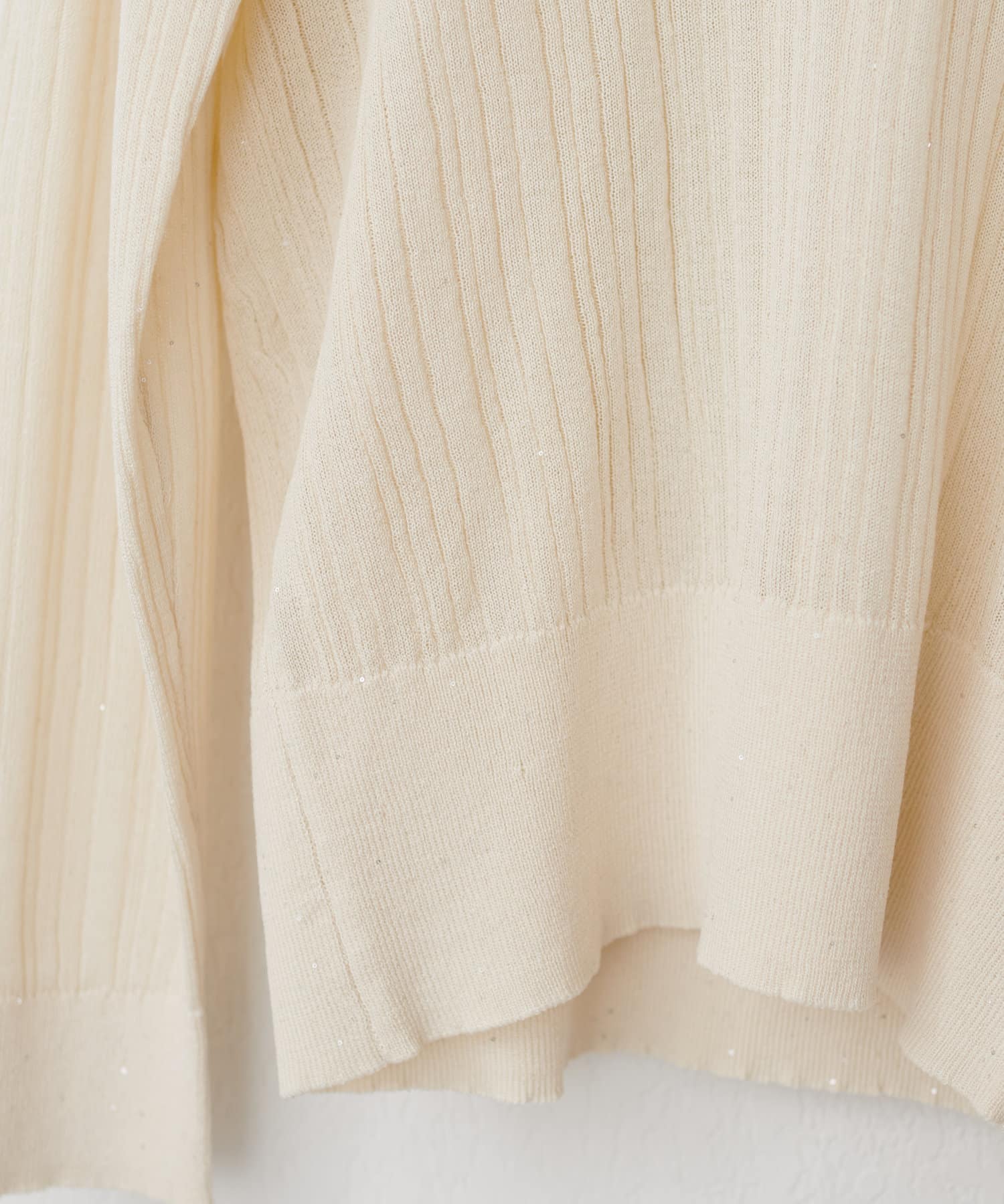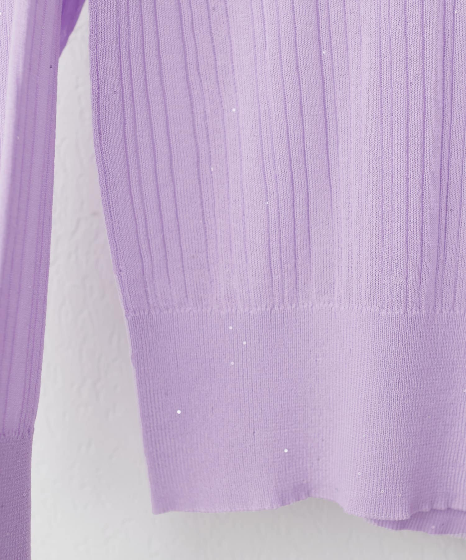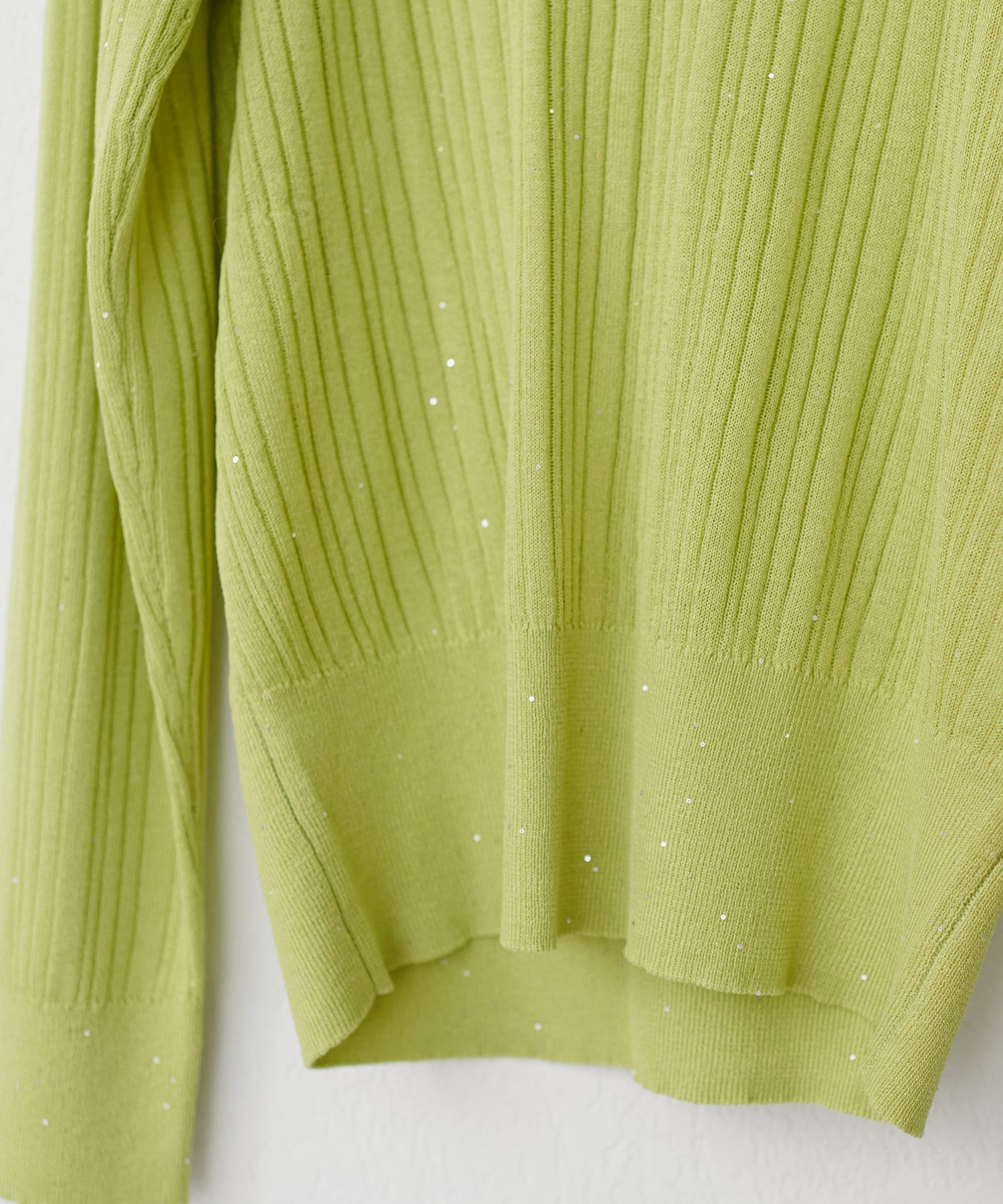 きらきらとした細かなスパンコールが散りばめられたランダムリブニット。