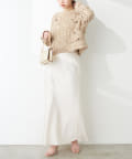 やや肩を落としたドロップショルダーと、ゆとりのあるネックラインが女性らしさを引き立ててくれます。
