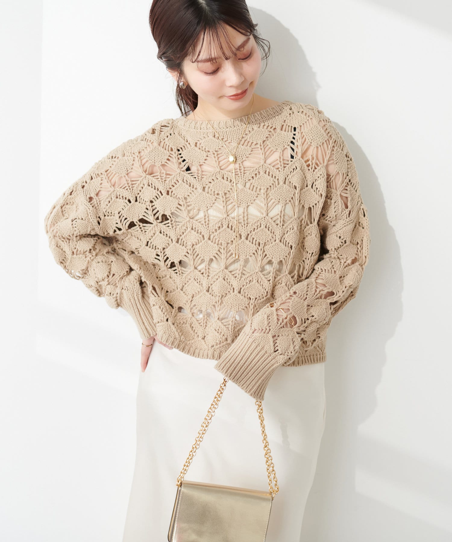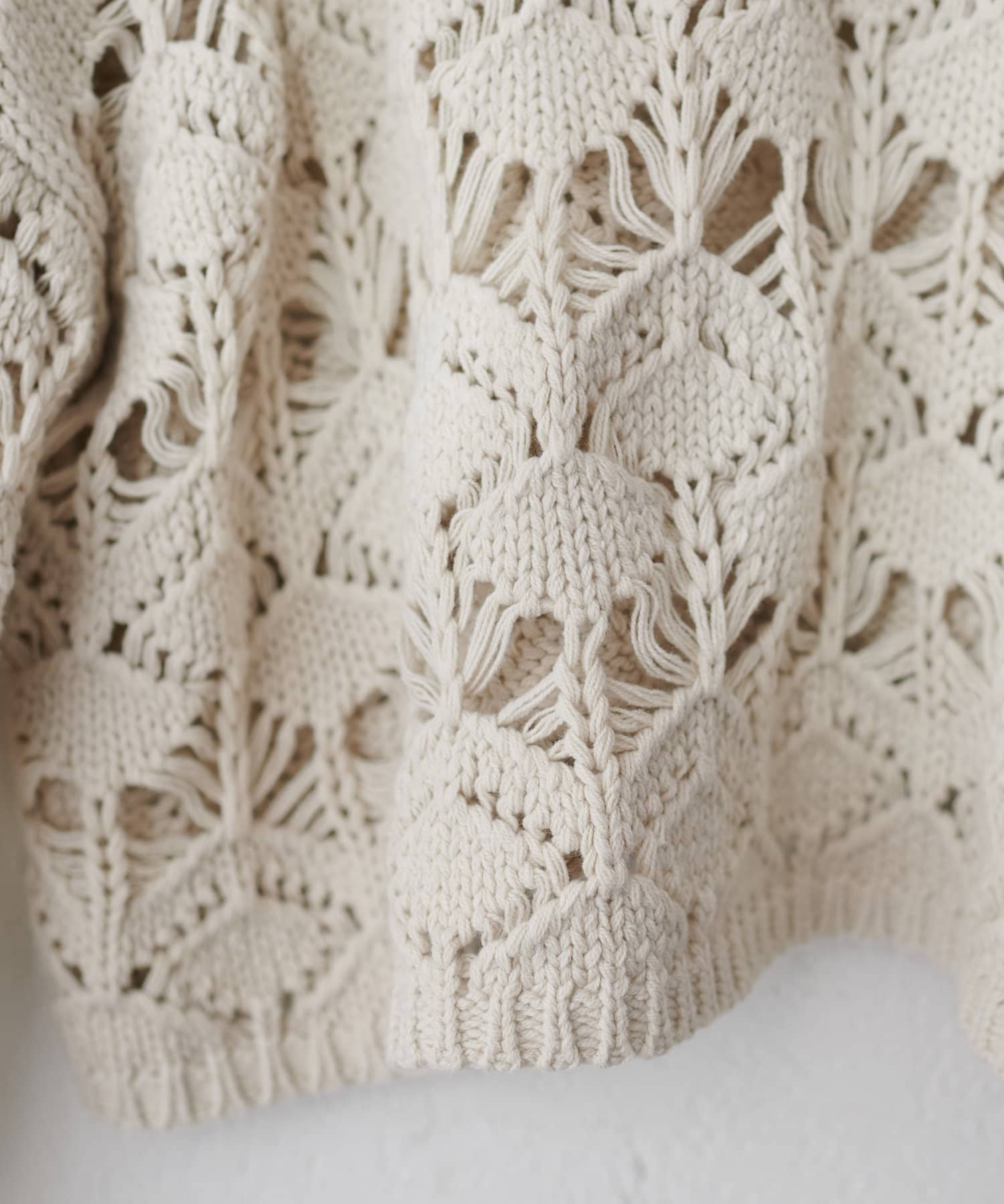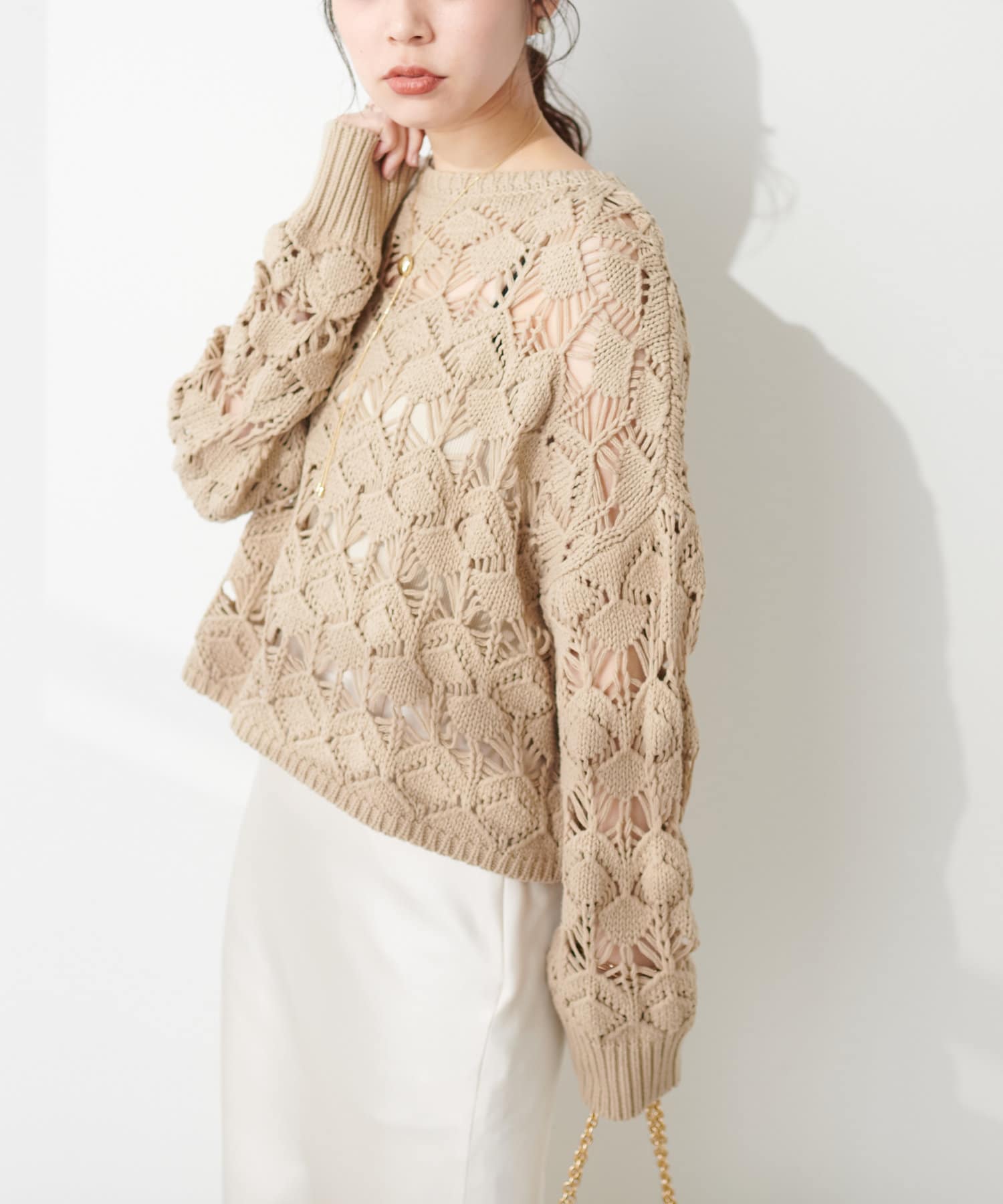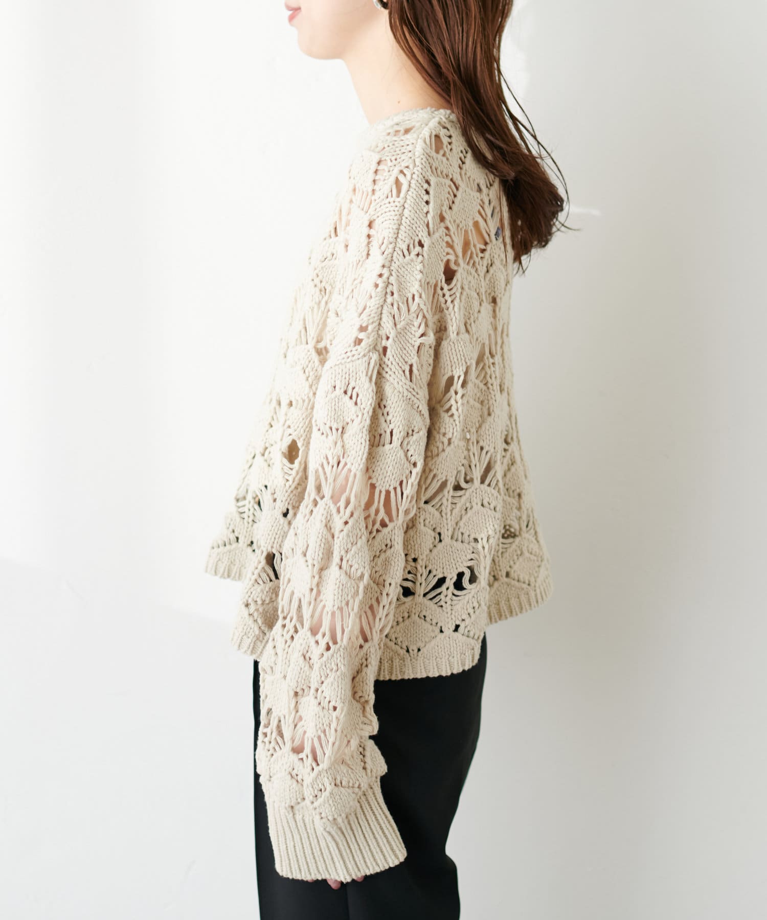 手編みのような表情豊かな透かし編みが春の装いにぴったり