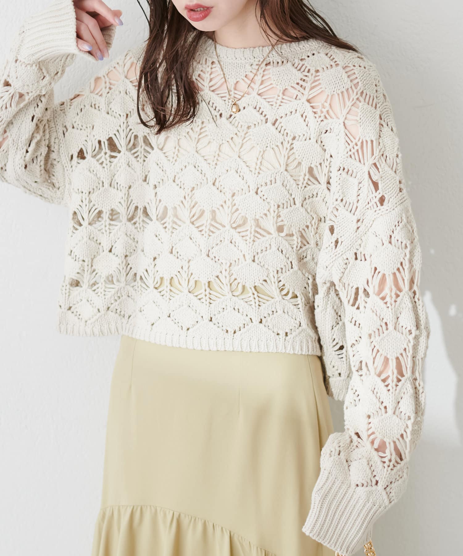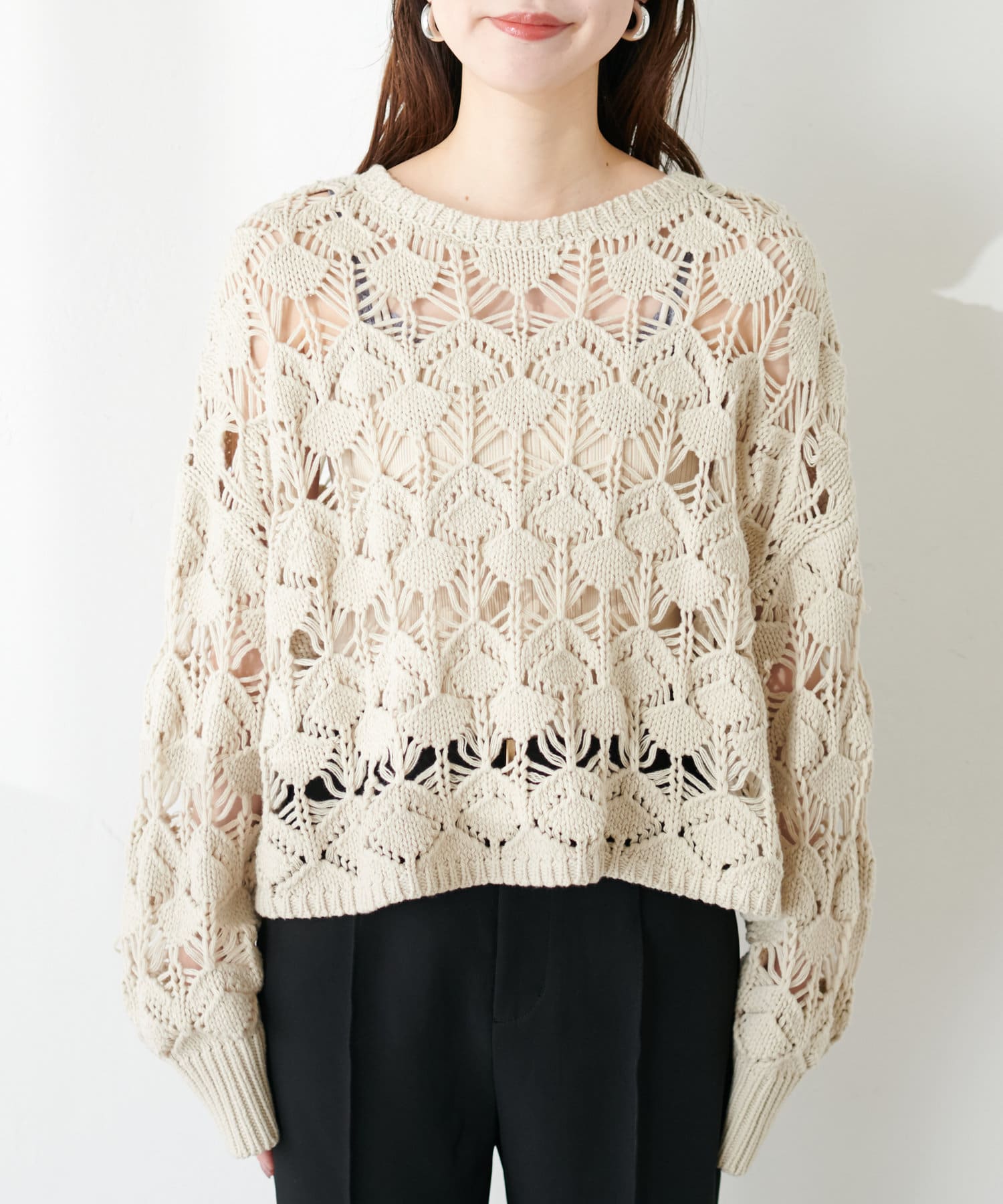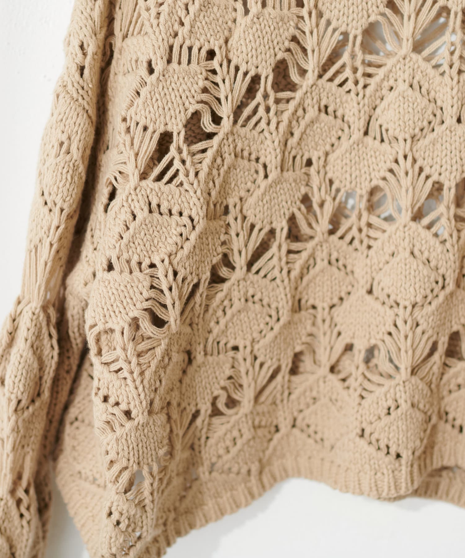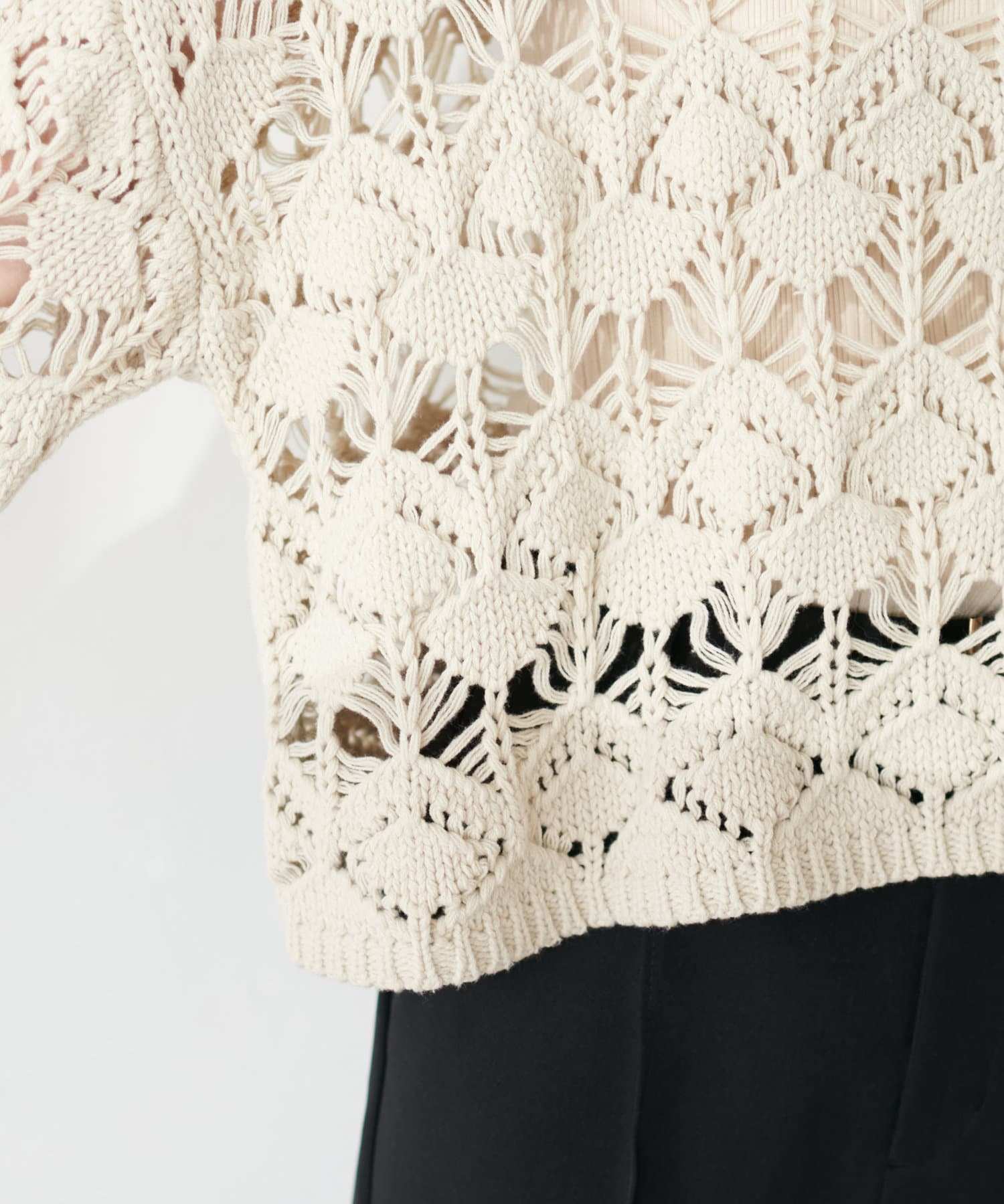 手編みのような表情豊かな透かし編みが春の装いにぴったり