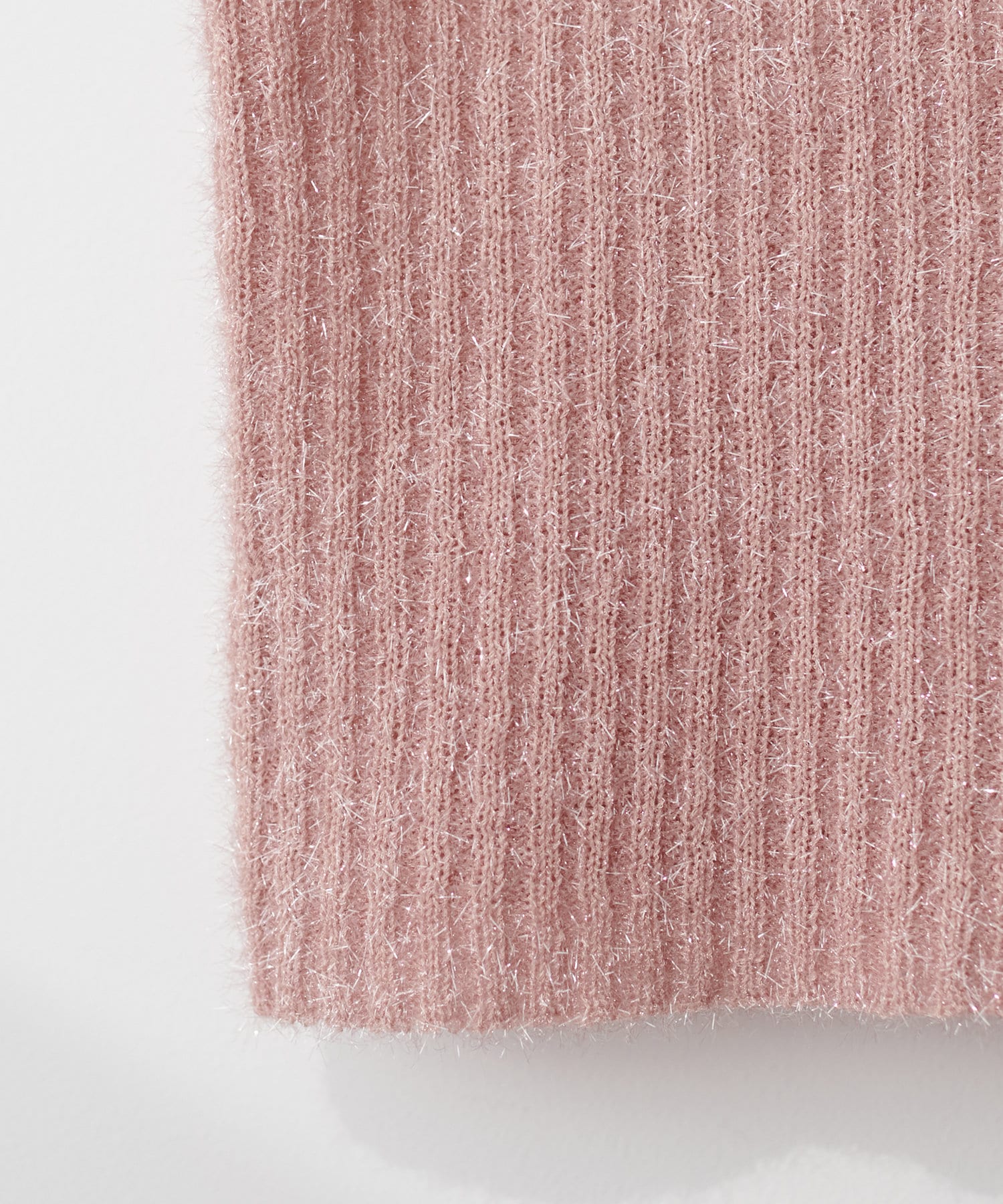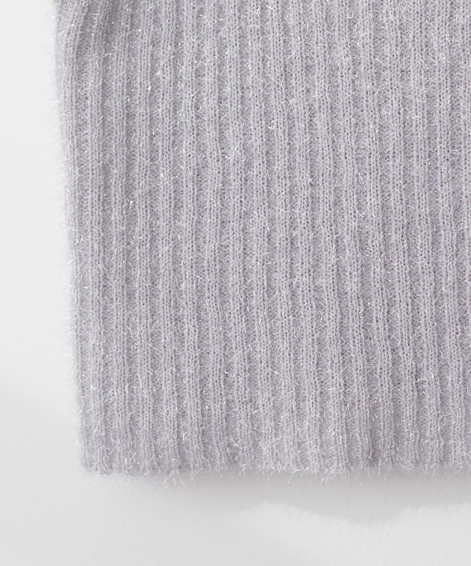 ファンシーヤーンとラメフィルムを組み合わせた、今年らしい毛足のある素材を使用。