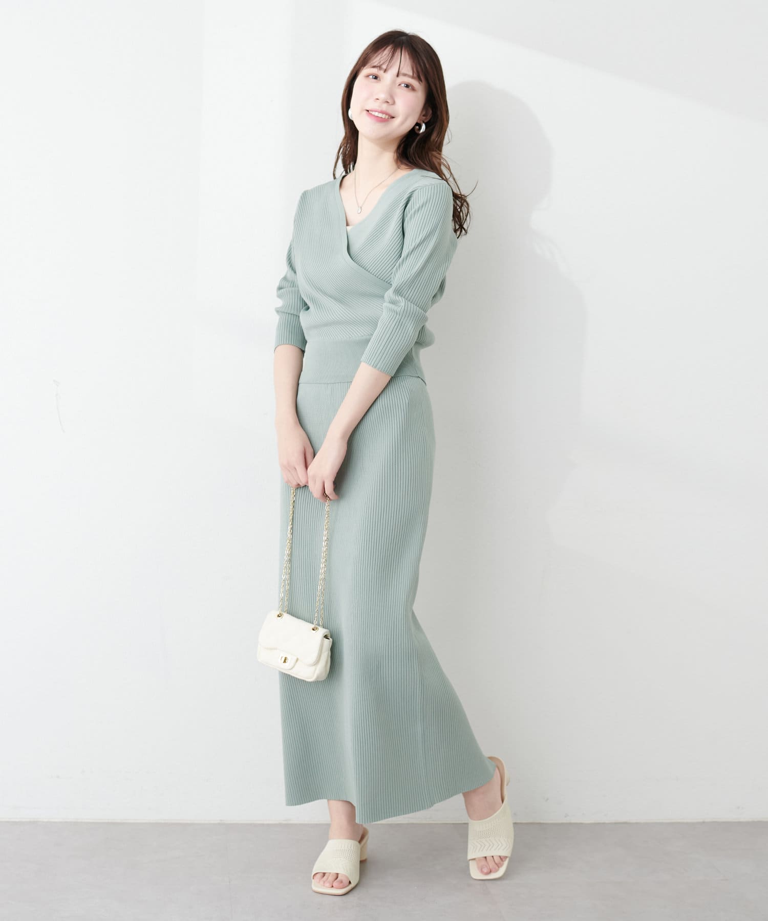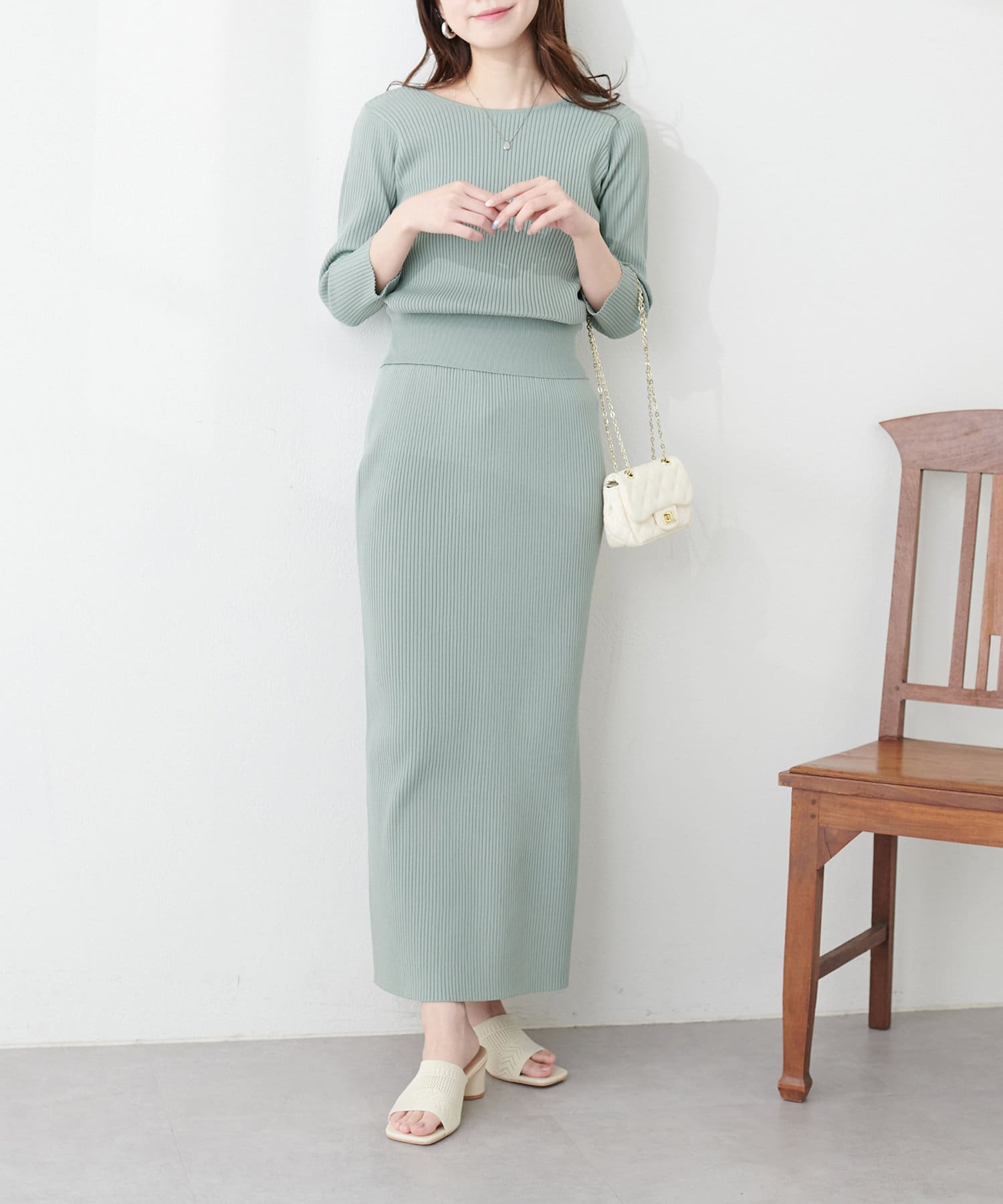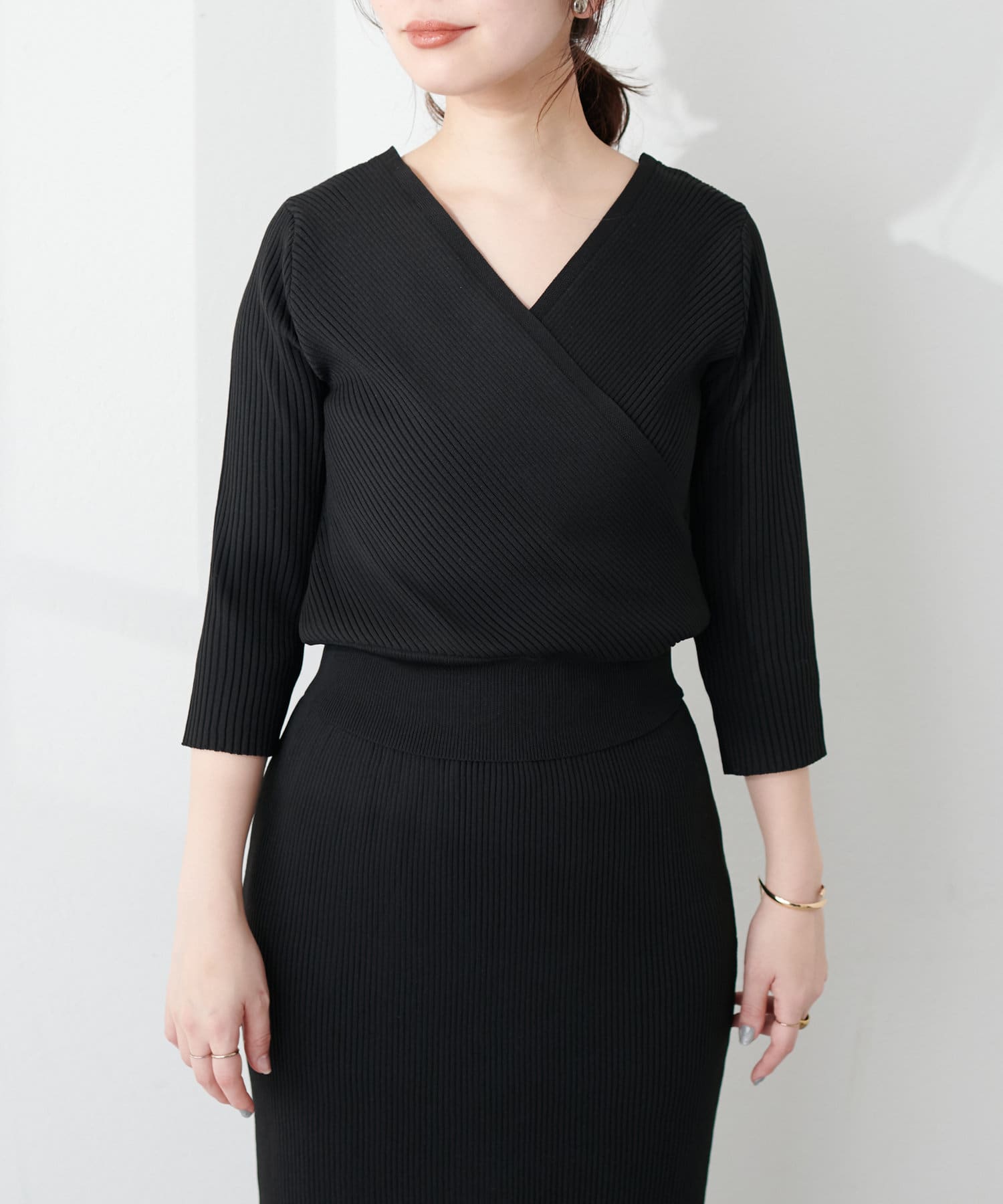 品番:0341010270 プチナチュ細リブニットタイトスカートと合わせてセットアップでの着こなしはもちろん、