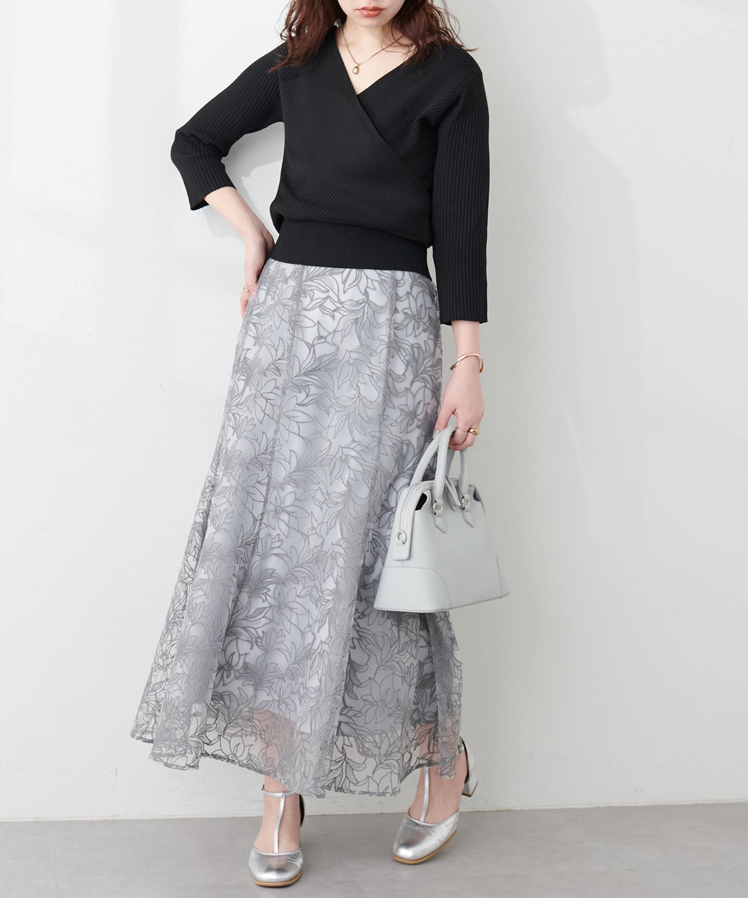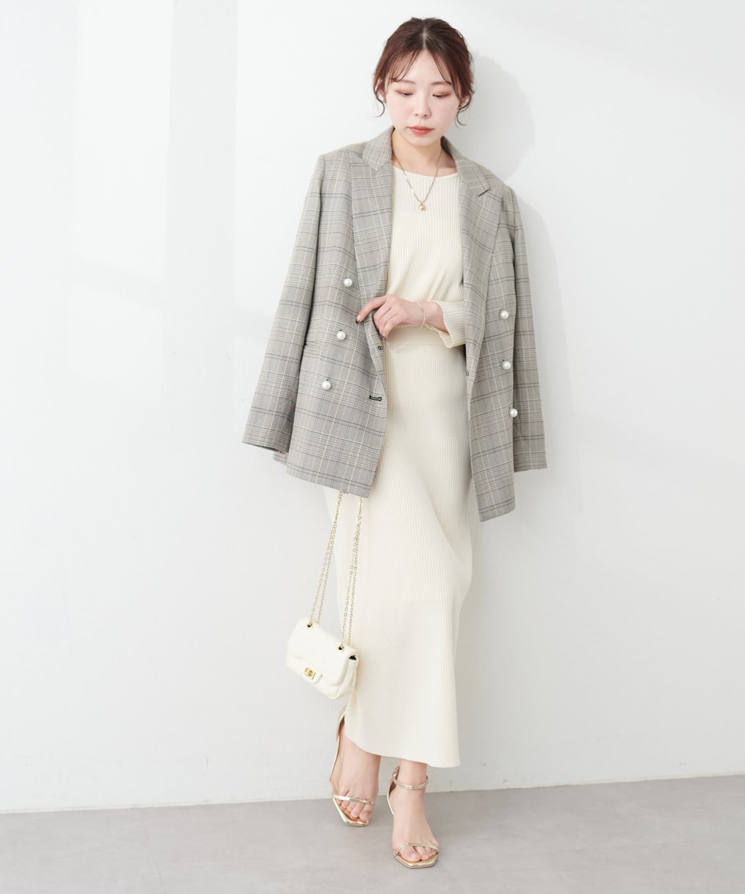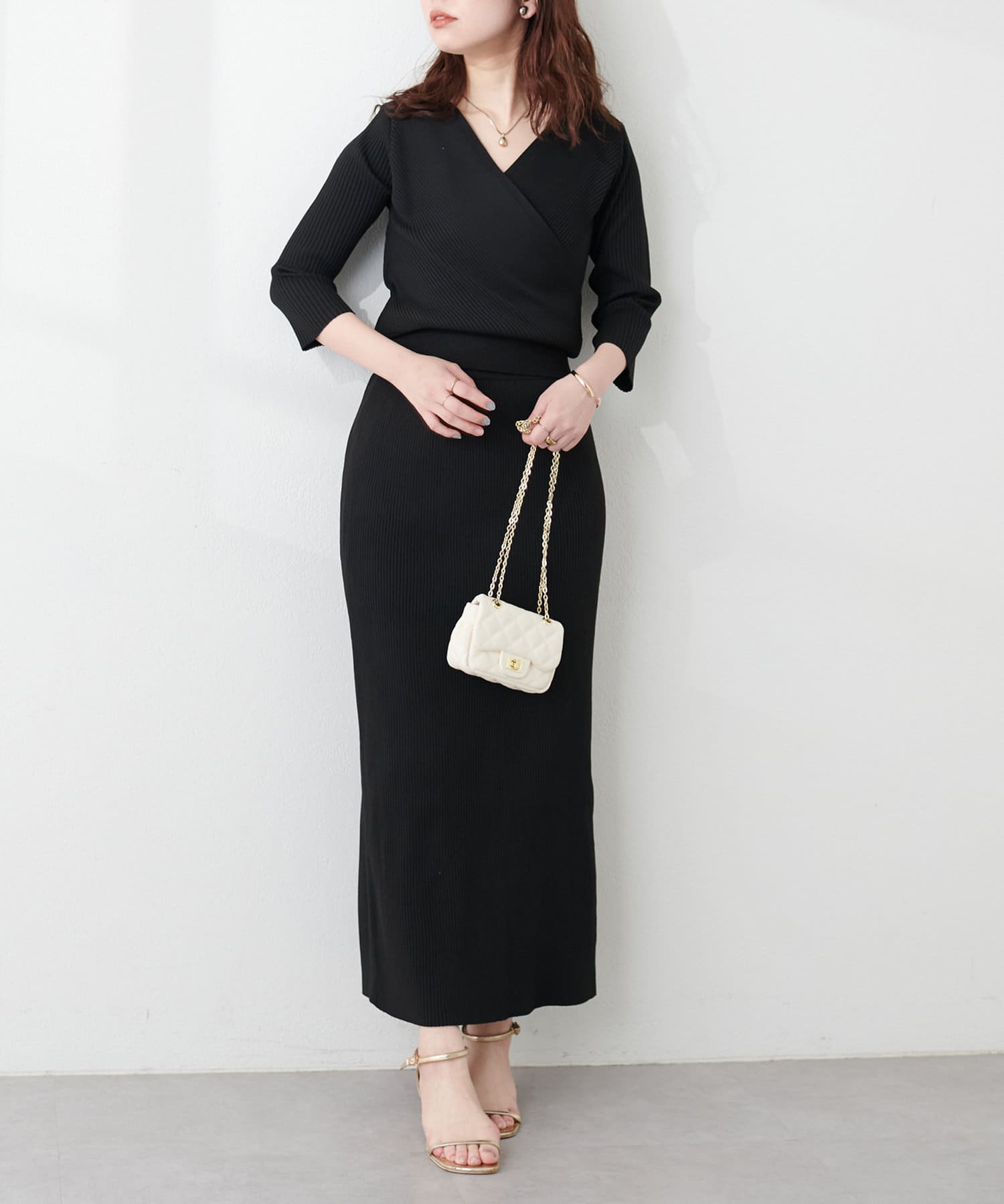 品番:0341010270 プチナチュ細リブニットタイトスカートと合わせてセットアップでの着こなしはもちろん、