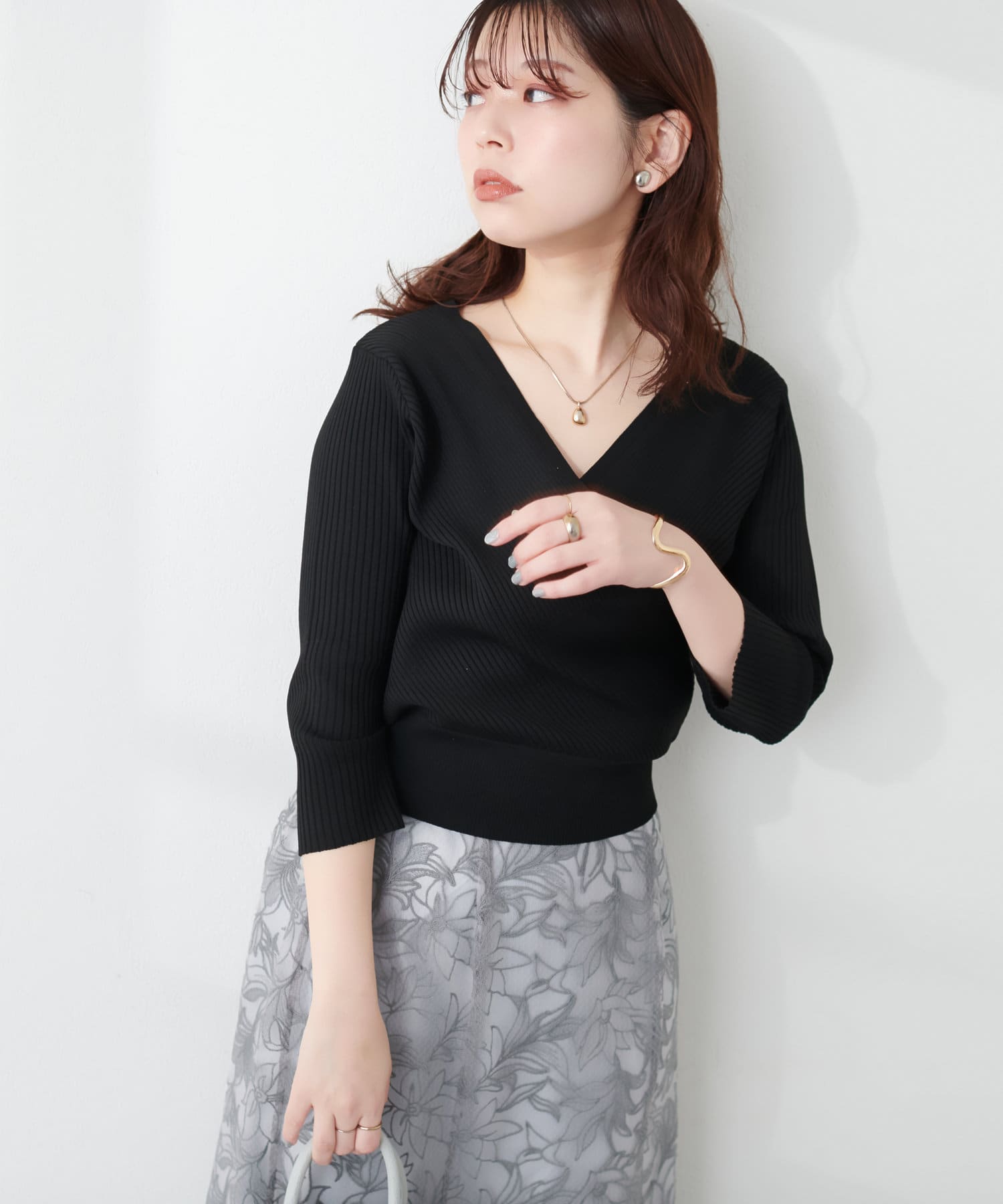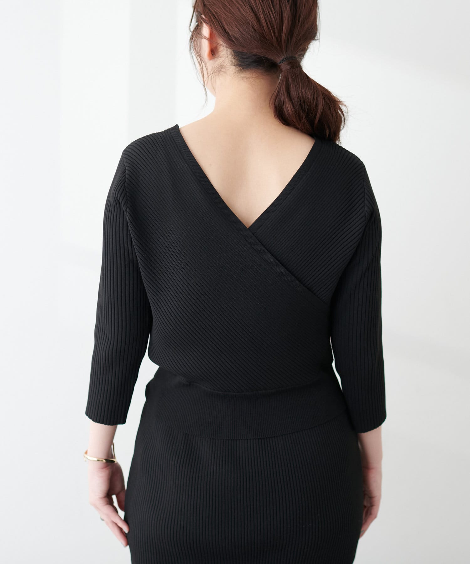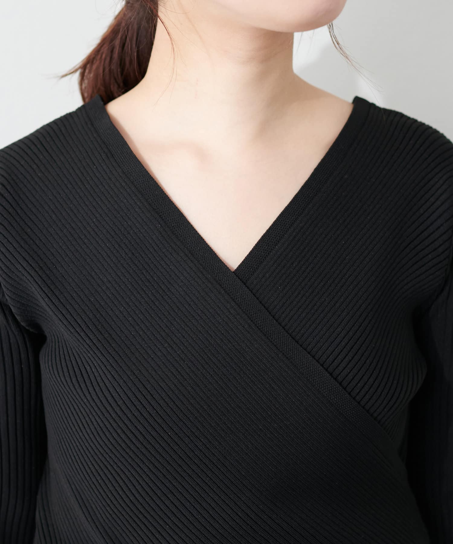 前後2WAYでカシュクール、クルーネックと着回せるニットは、