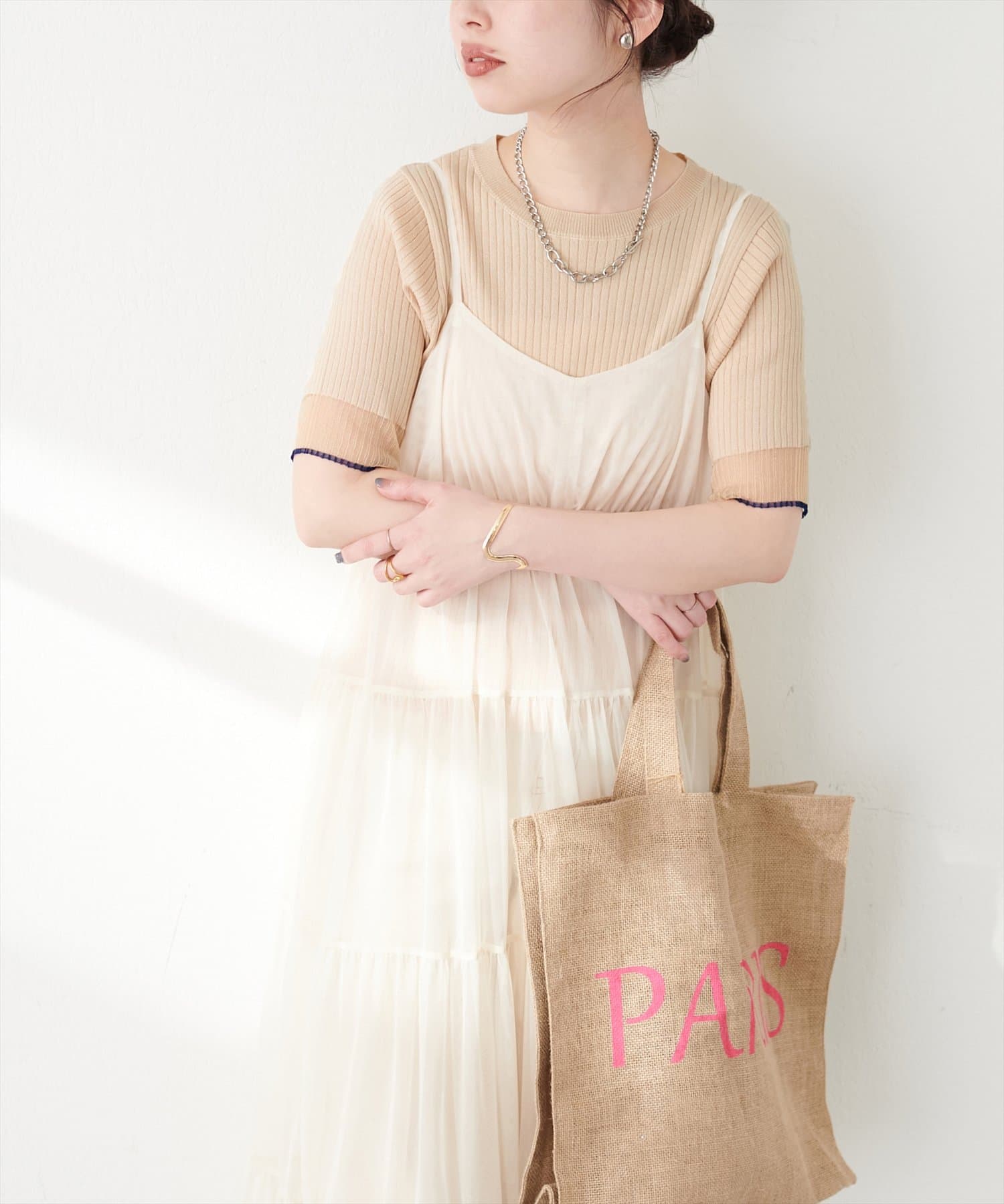 お好みでサロペットやキャミソールのインナーとして合わせても袖口部分がポイント見えして◎