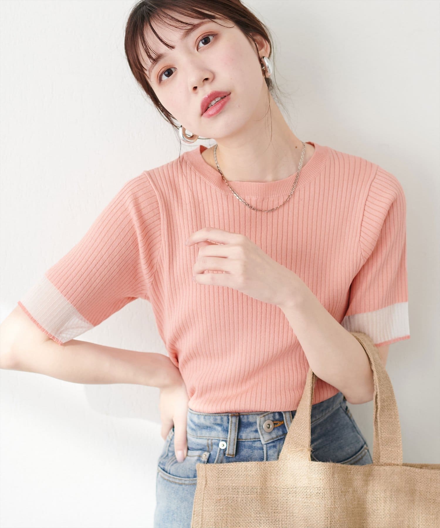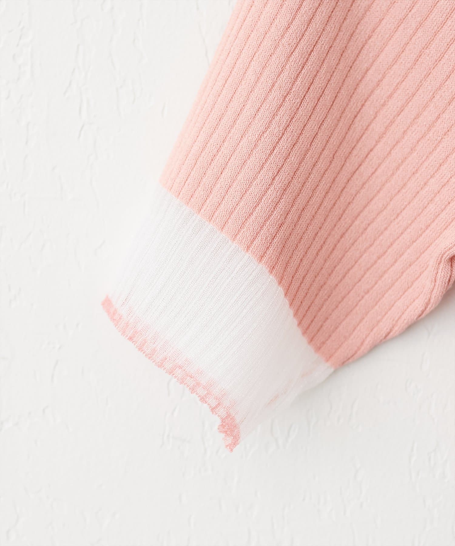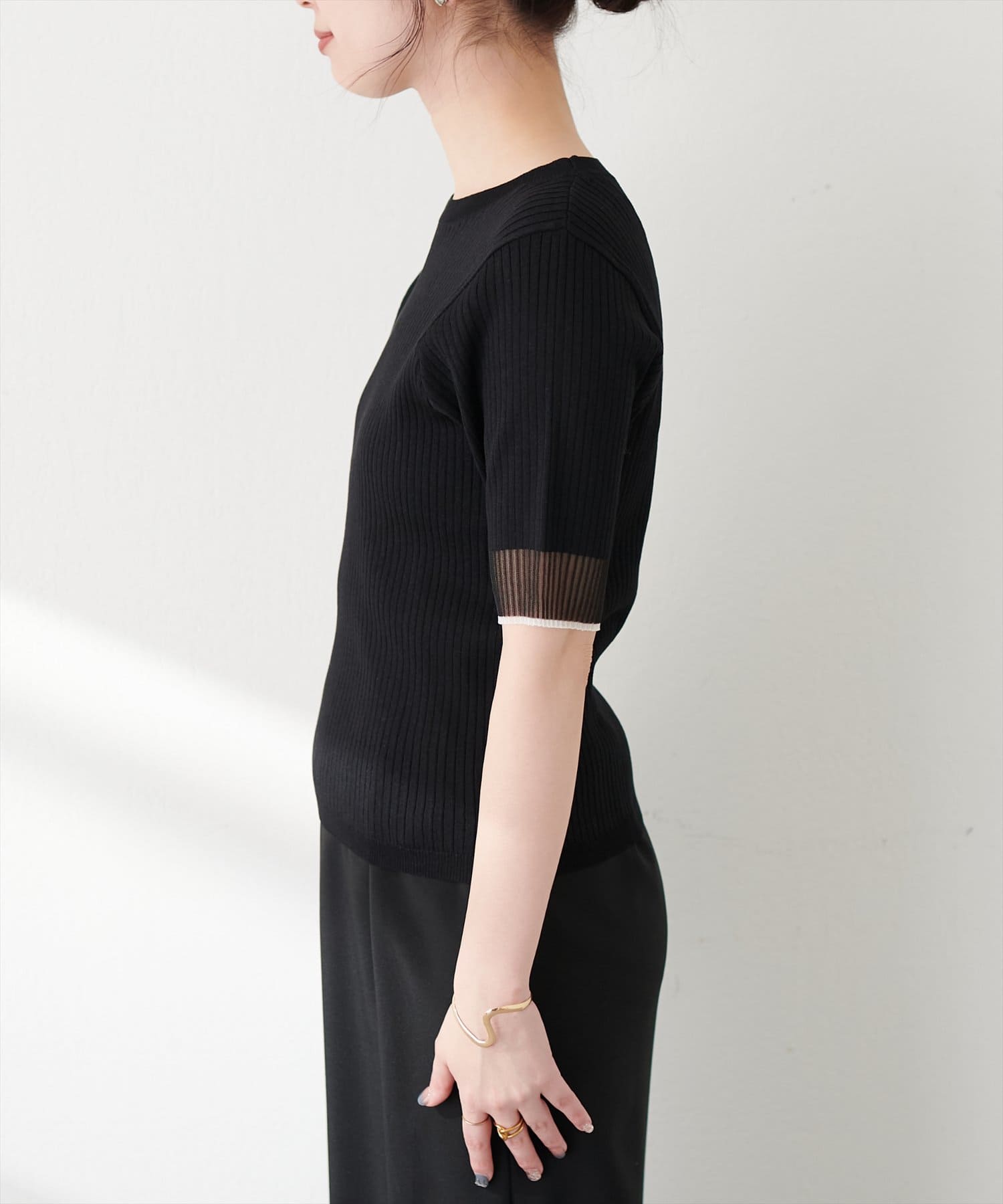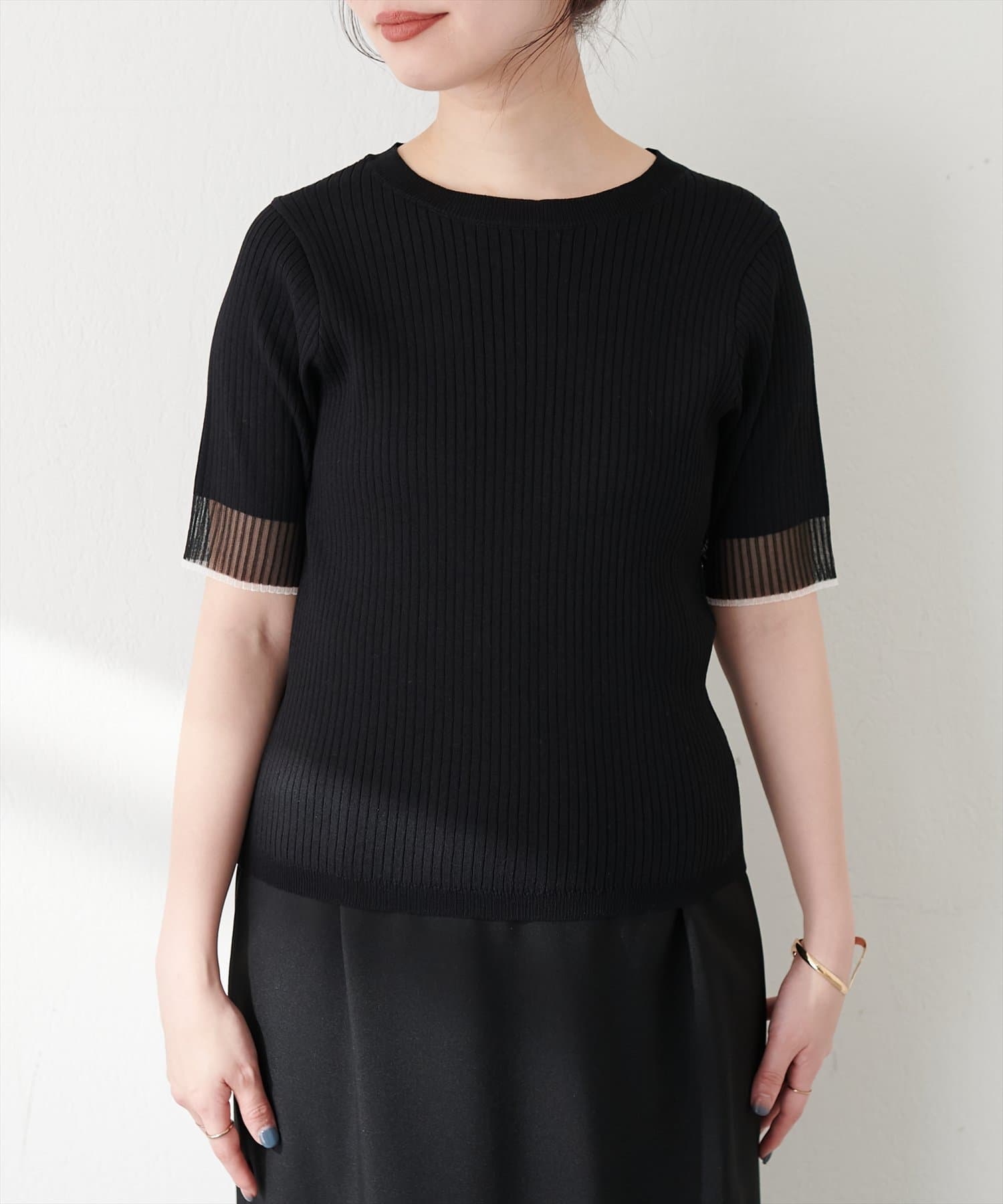 袖口部分をシアー素材にし、さりげなく配色使いにデザインした、ありそうでなかった1着。