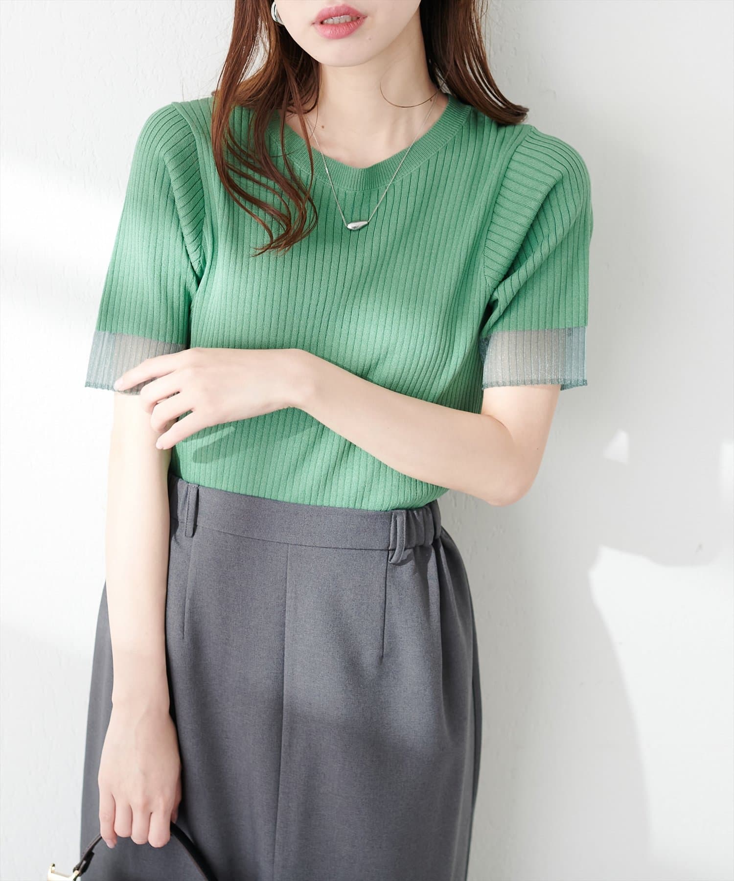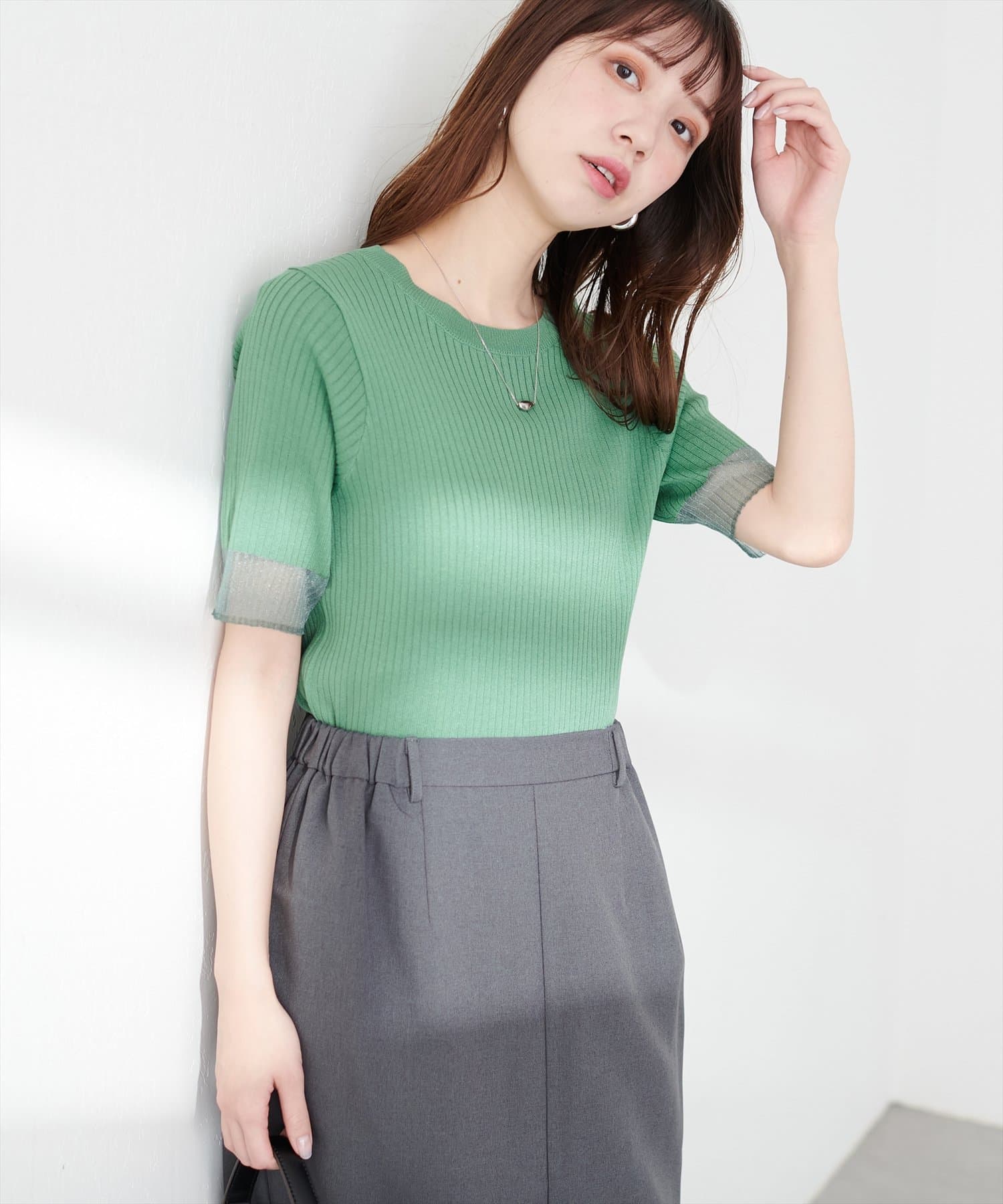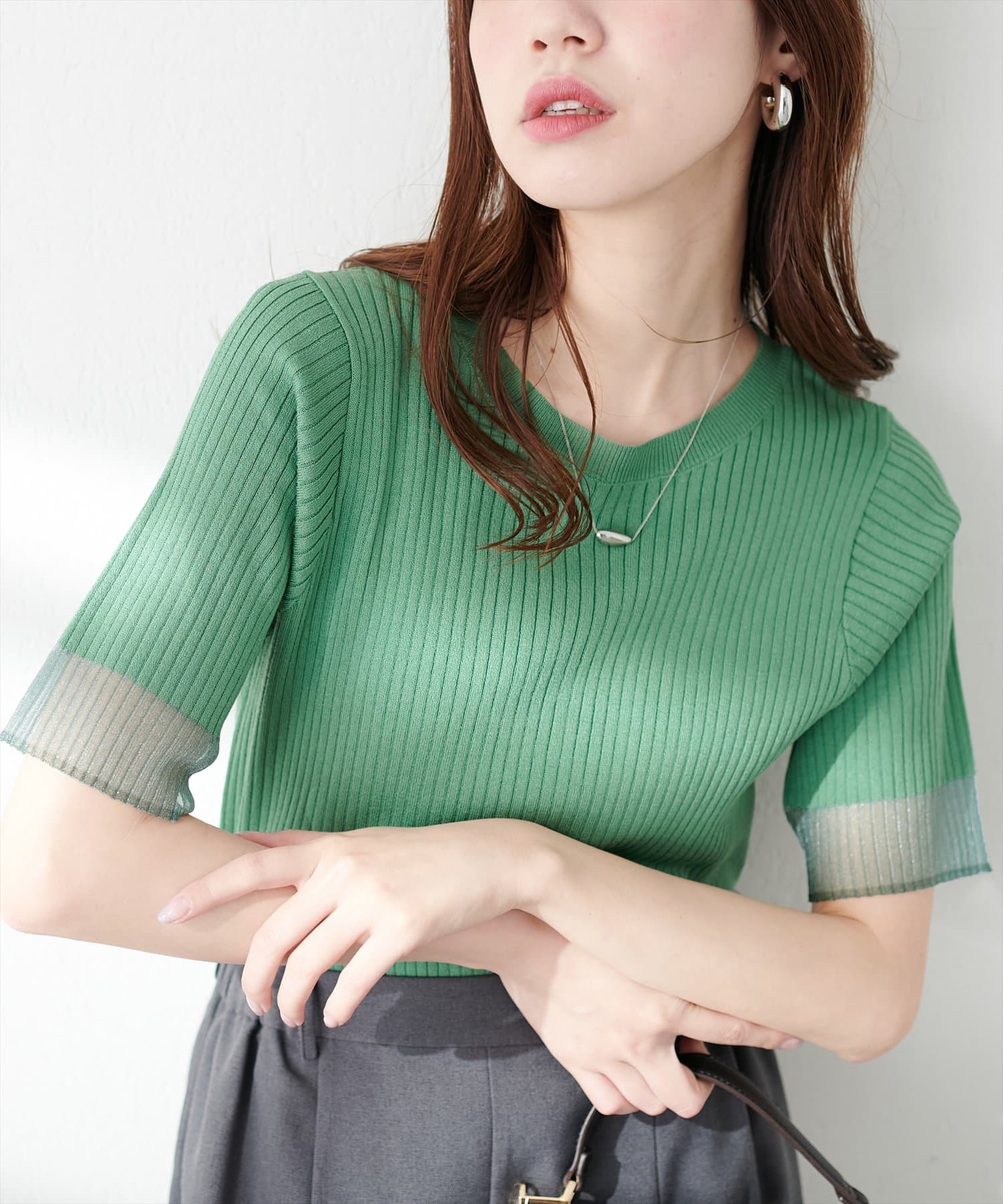 袖口部分をシアー素材にし、さりげなく配色使いにデザインした、ありそうでなかった1着。