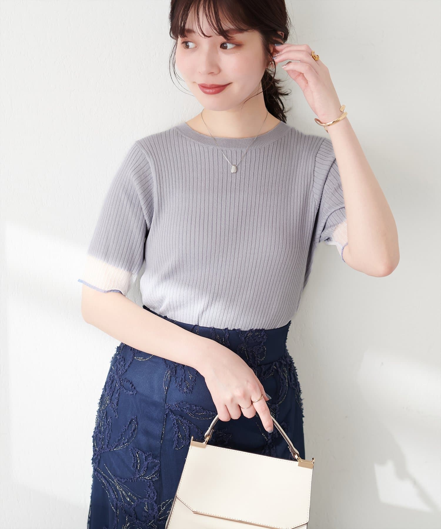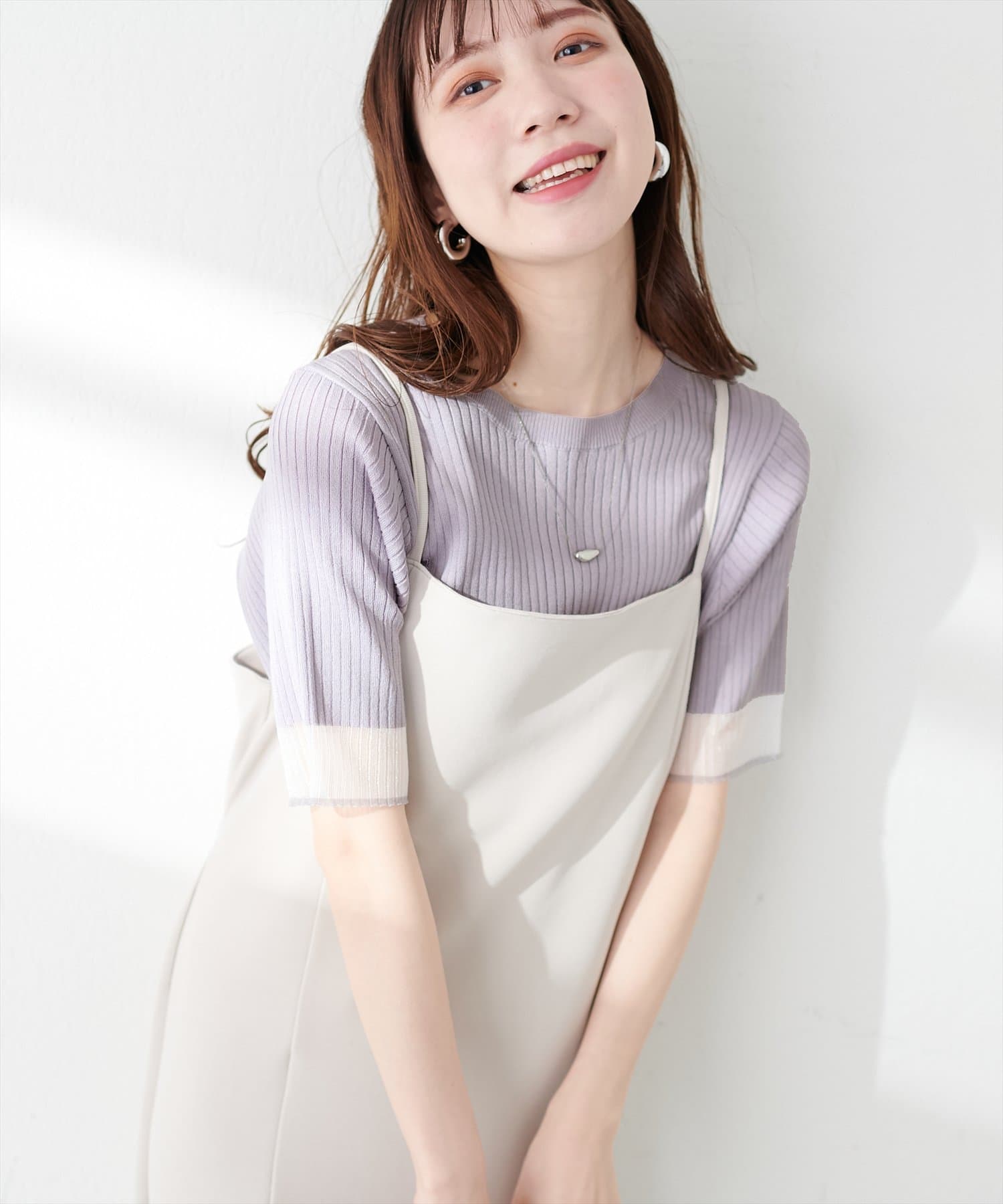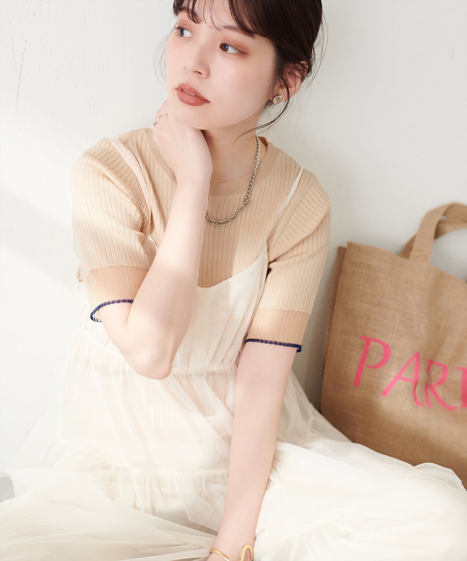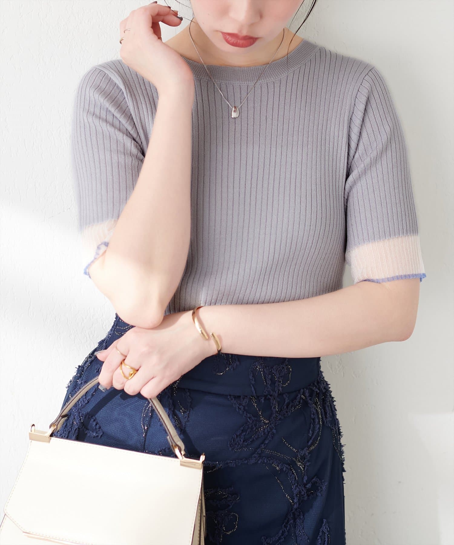 袖口部分をシアー素材にし、さりげなく配色使いにデザインした、ありそうでなかった1着。